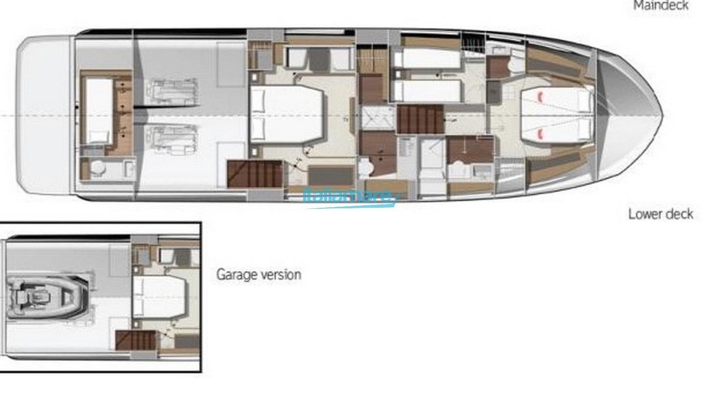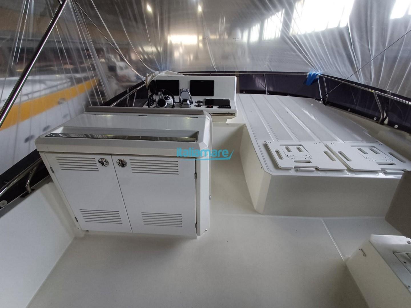 Accessori principali: Aria condizionata, Bussola, Generatore, GPS, Joystick, Pilota automatico, Passerella idraulica, Piattaforma idraulica, Teak in pozzetto