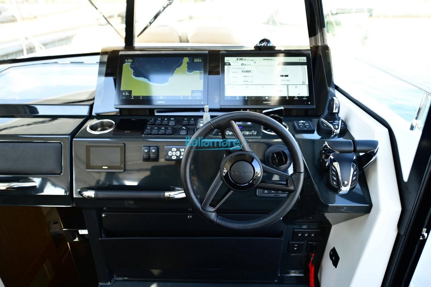 Angolo barra, Comando motori elettronico, Computer di bordo, Contametri catena, Display (YAMAHA), DSC vhf, 2 GPS, Joystick, 2 Plotter con antenna GPS (GARMIN 8412).