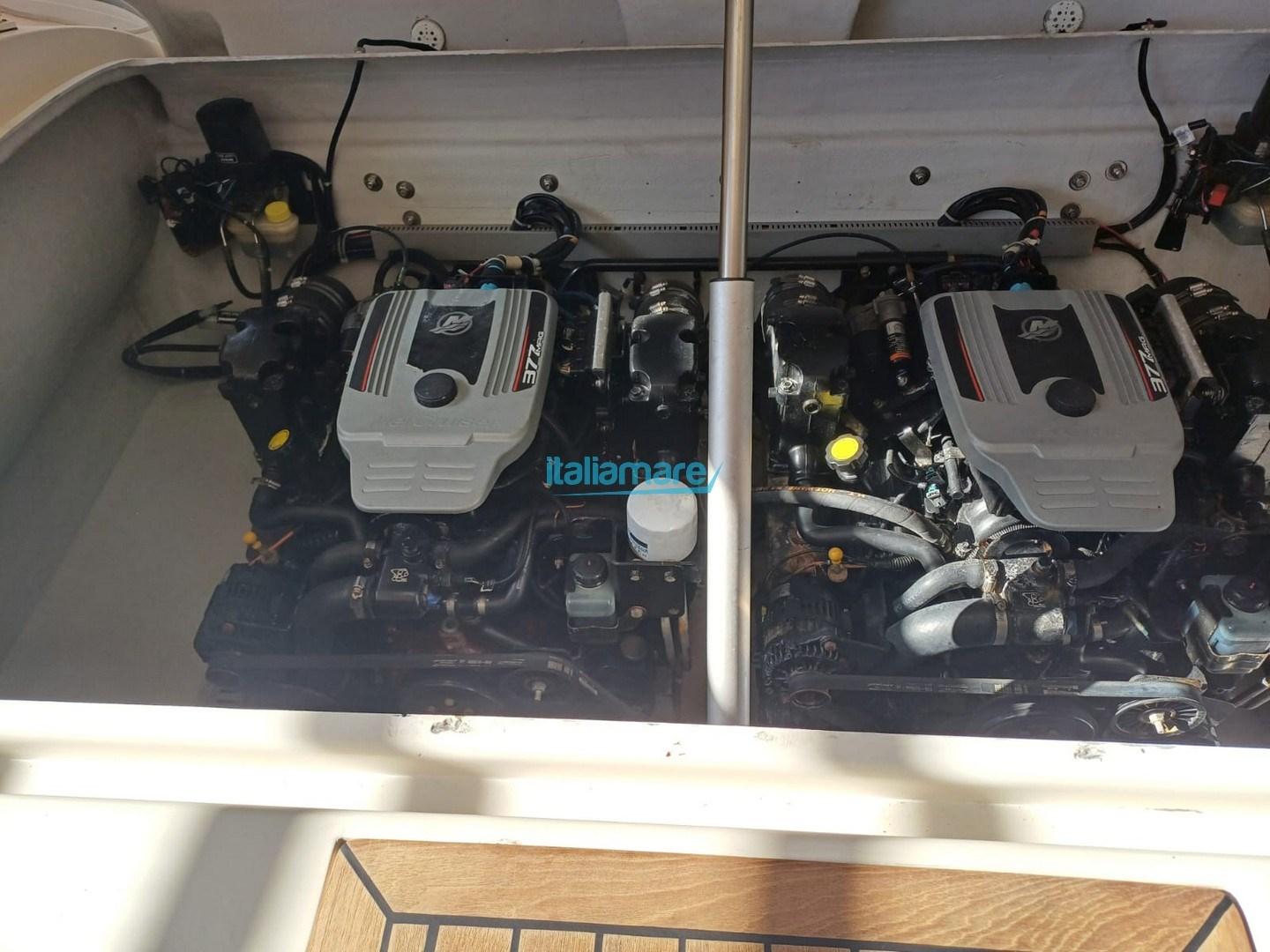 Motorizzato con 2 Mercruiser da 370hp la velocità massima supera i 40 nodi, mentre la crociera tipica si attesta tra 25 e 30 nodi.