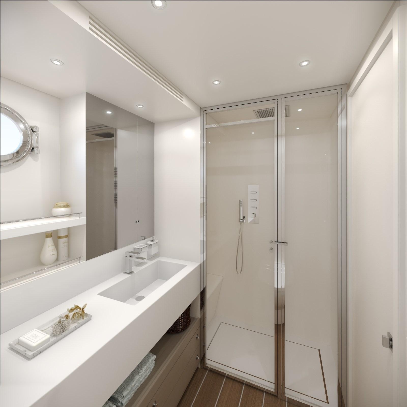 Allarme fumo/gas, Allarme motore, Allarme sentina, Alternatore, Autoclave, 2 Autogonfiabile, Camminamenti laterali in teak, 2 Caricabatterie, Cavo corrente di banchina, Doccia esterna, Doppia timoneria, Fari fissi a poppa, Faro orientabile, Impianto antincendio, Lavaggio catena, Luci di cortesia, Parabordi, Passerella (automatica telescopica Opacmare), Pompa di sentina automatica, Pompa di sentina manuale, 2 Pompa Lavaggio Ponte, Pompa per Acqua di Mare, Ponte in teak, Porta ingresso, Pozzetto Teak, Presa 220V banchina, Presa acqua banchina, Raddrizzatore, Rollbar, Salpa Ancore Idraulico, Scaletta da bagno, Stabilizzatori (cmc ( stab 30)), Tromba, Winch tonneggio di poppa.
