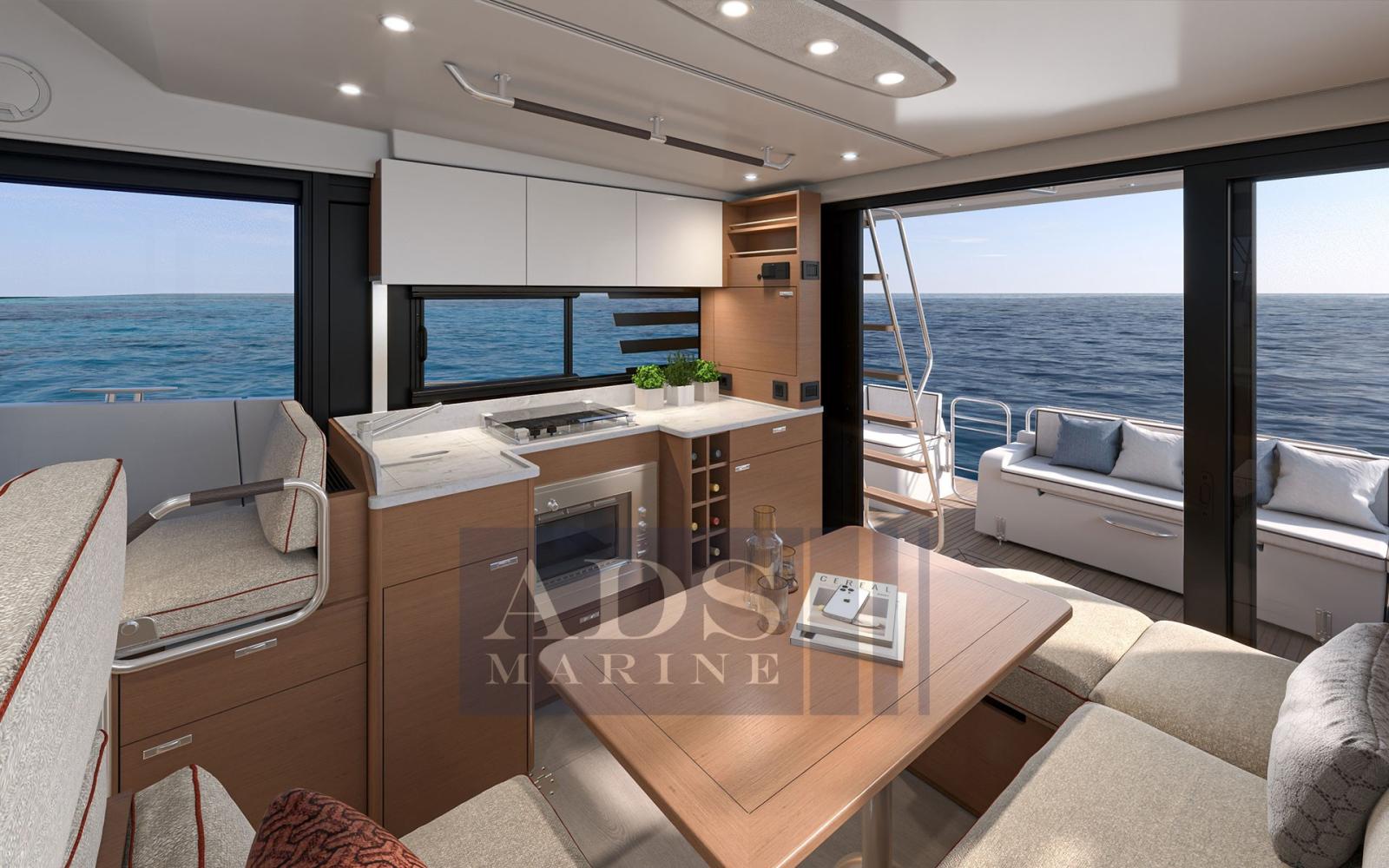 Progettato con una sheerline ascendente fino a una prua potente, svasata e alta, il moderno Swift Trawler 37 abbraccia forza e determinazione. Il nuovo parabrezza inverso non solo garantisce una migliore visibilità, ma crea un profilo da trawler più professionale, esaltato dalle finestrature dello scafo con rapporto più lungo. Il nuovo Swift Trawler 37 vanta una cucina a forma di U più grande rispetto al precedente modello da 35 piedi, con un'opzione di frigorifero e congelatore di grandi dimensioni e uno spazio di archiviazione significativamente maggiore grazie all'ergonomia superiore del triangolo di lavoro. Il grande divano a forma di U che lo accompagna può ospitare comodamente sei persone e si trasforma rapidamente in una cuccetta doppia con tenda per la privacy. Un sedile rialzato per il passaggio a prua a babordo ha un tavolo sollevabile intelligente che crea una comoda postazione di lavoro adiacente al timone. Al piano inferiore, la cabina armatoriale ha la priorità e ora beneficia di un bagno con box doccia separato e porta jack & jill (per l'accesso privato insieme a una porta di accesso diurna).