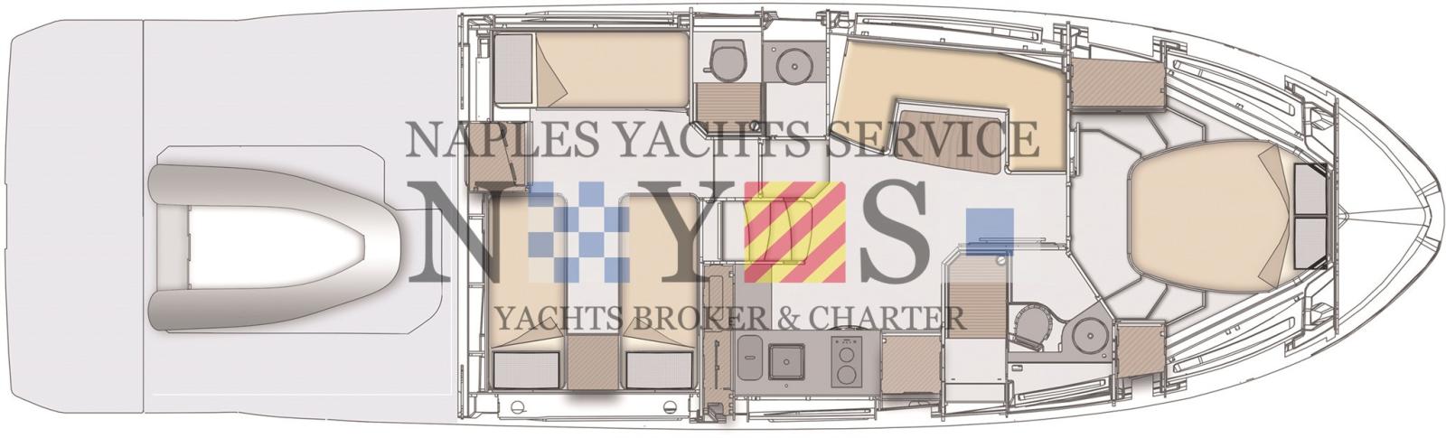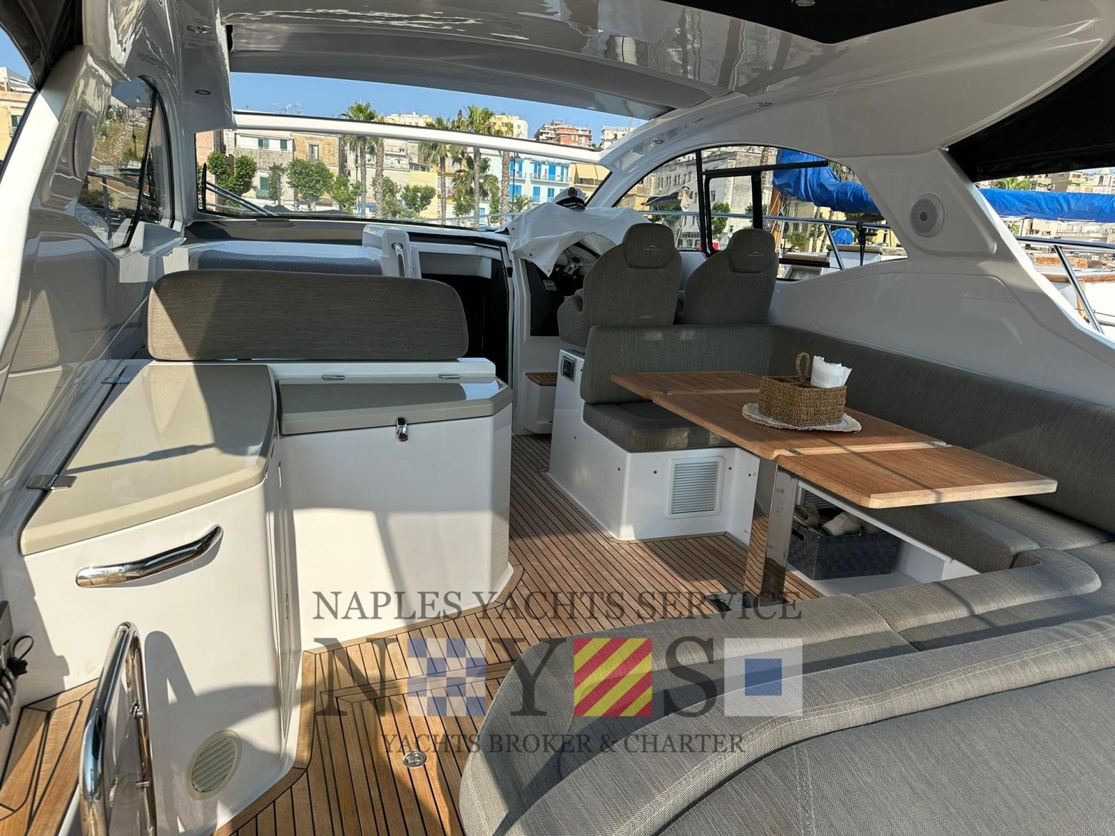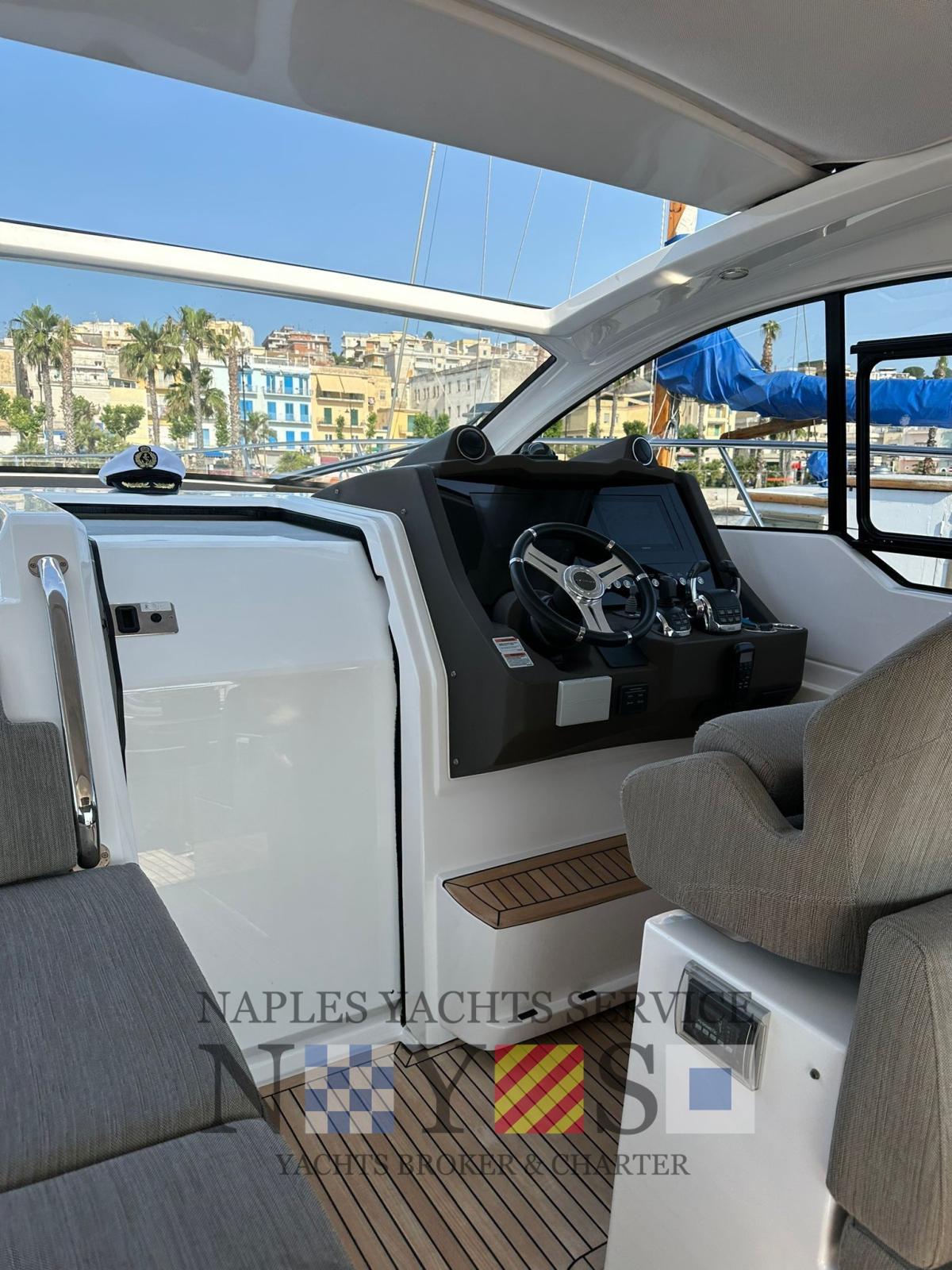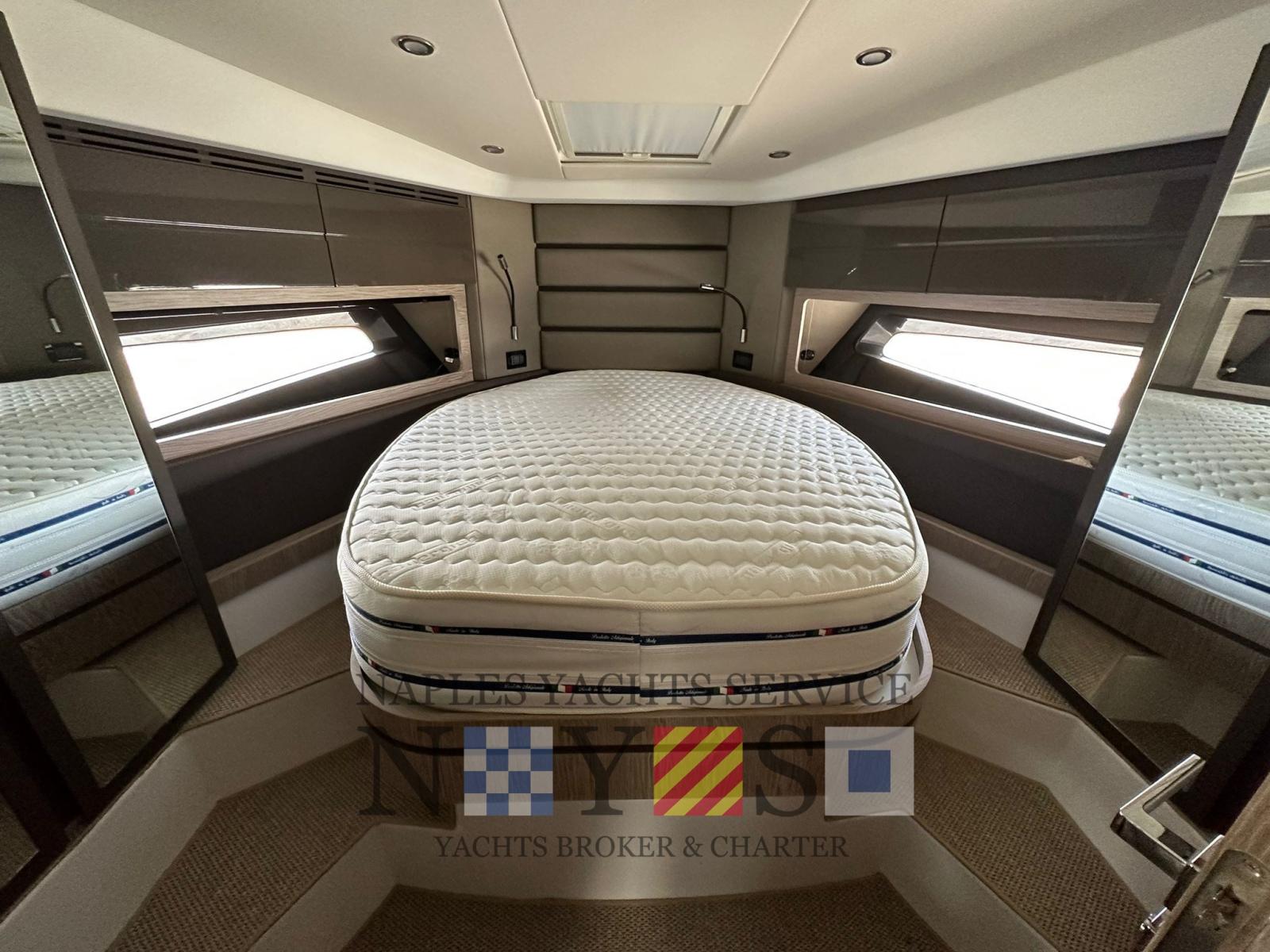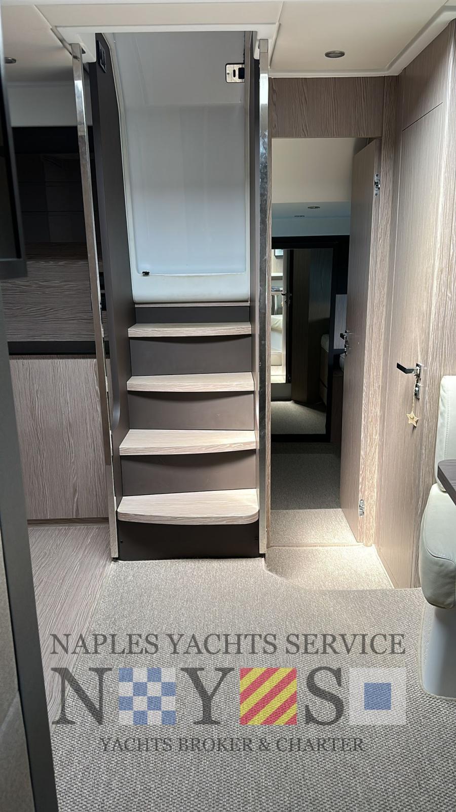 Allarme fumo/gas, Allarme motore, Allarme sentina, Auto Dynamic Trim Interceptor (VOLVO PENTA), Autoclave, Auto-Trim, Doccia esterna, Luci di cortesia, Raddrizzatore, Salpa Ancore Elettrico, Stabilizzatori (Seakeeper 4 con batteria litio dedicata), Tavolo pozzetto, T-Top.