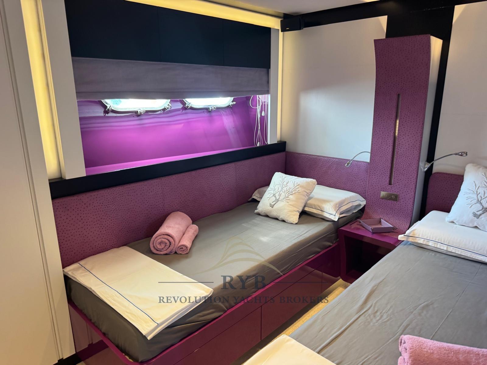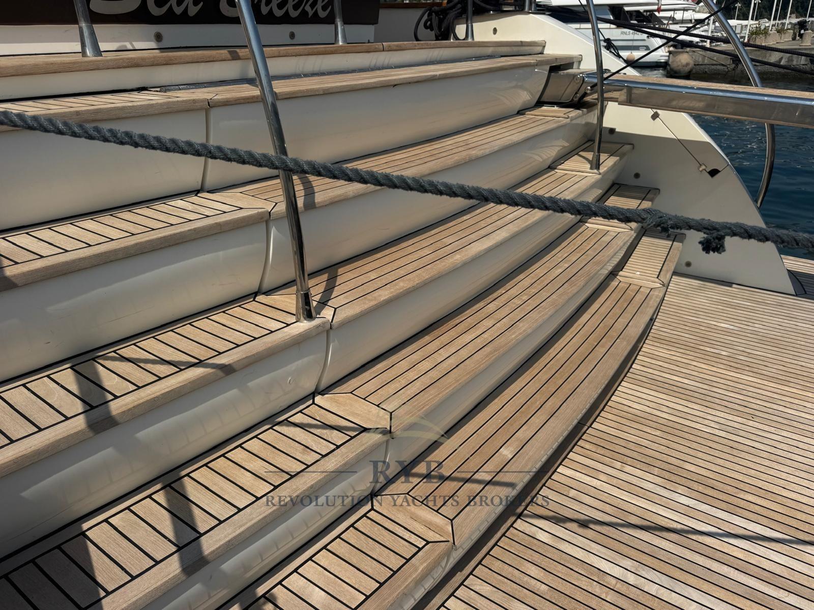 Camminamenti laterali in teak, Garage per tender, Impianto antincendio, Luci di cortesia, Passerella (IDRAULICA A SCOMPARSA), Piattaforma (TEAK), Porta ingresso, Pozzetto Teak, Presa 220V banchina, Salpa Ancore Elettrico, Scaletta da bagno.