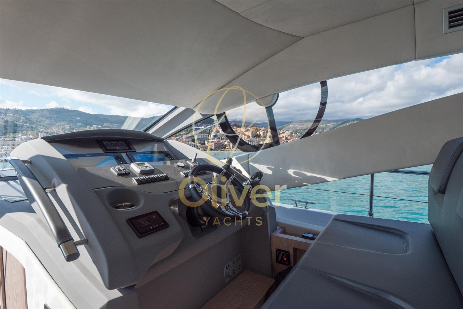 AIS, Angolo barra, Antenna radar, Comando motori elettronico (VOLVO PENTA), Computer di bordo, Contametri catena, Cronometro, Display (Raymarine / Garmin), DSC vhf (Raymarine / Garmin), GPS (Raymarine / Garmin), Joystick (VOLVO PENTA), Log (Raymarine / Garmin), Monitor dei consumi, Pilota automatico (Raymarine / Garmin), Plotter (Raymarine / Garmin), Plotter con antenna GPS (Raymarine / Garmin), Sedile Copilota, Sistema di posizionamento dinamico (Volvo Penta), Strumenti di misura per motori (Volvo Penta).