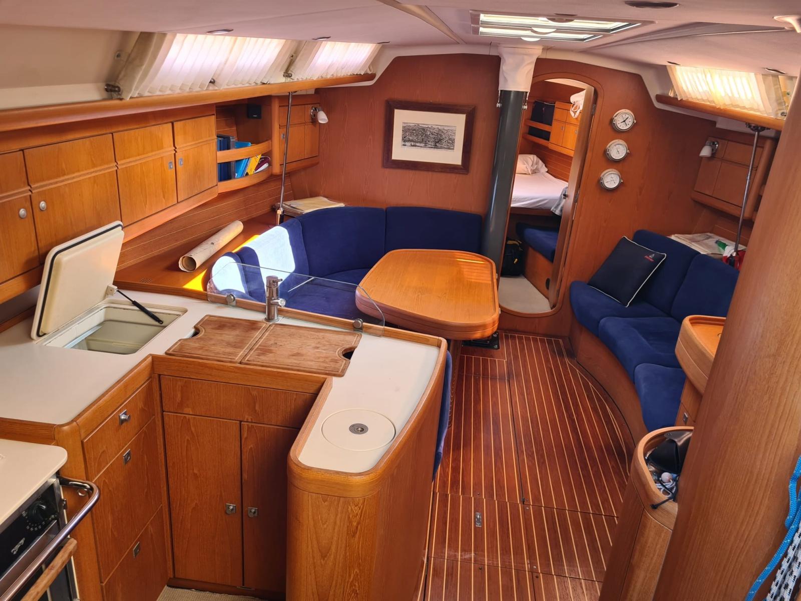 Attrezzatura Gennaker (con calza), Avvolgi Fiocco (Furlex 300TD sottocoperta), Lazy Bag, Lazy Jack, Tenditore strallo di poppa, Trasto randa, Vang rigido.