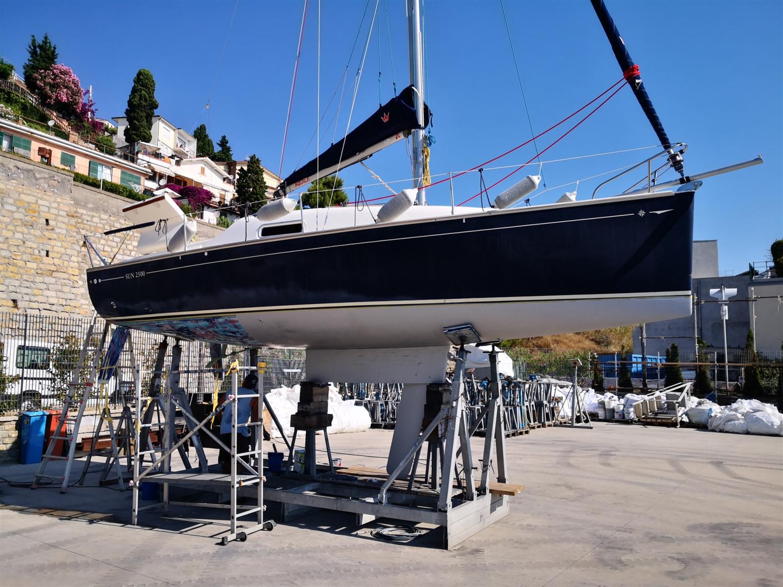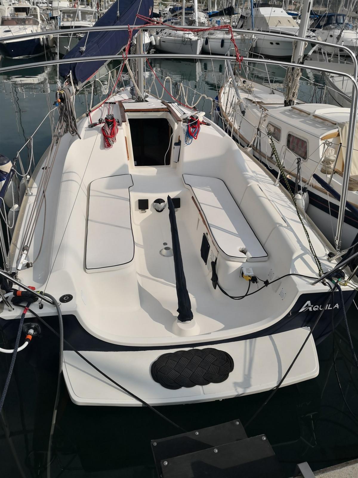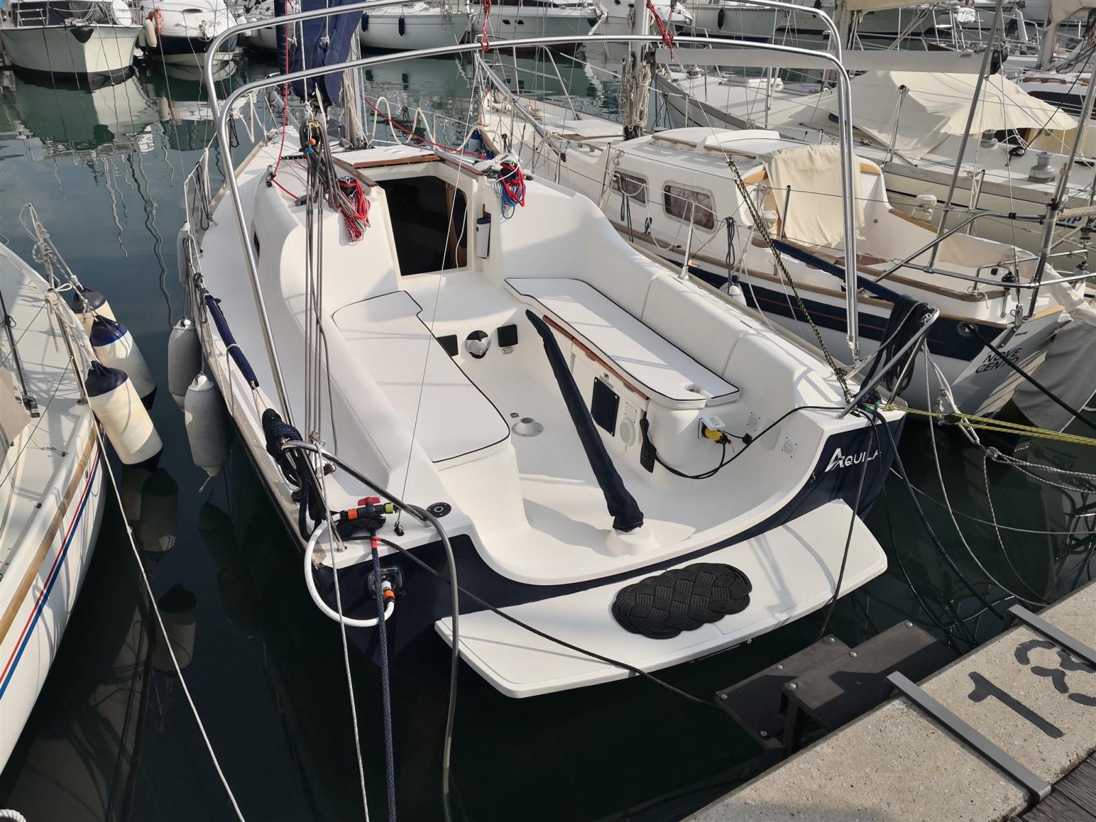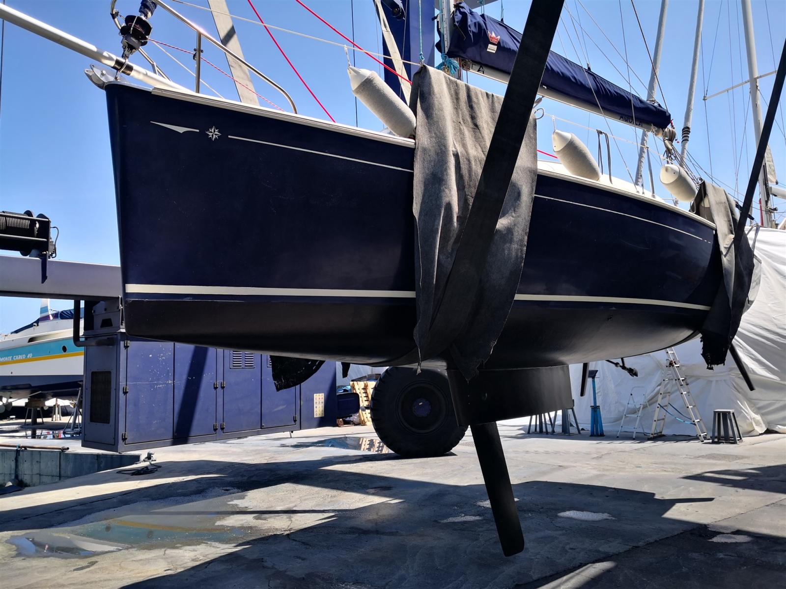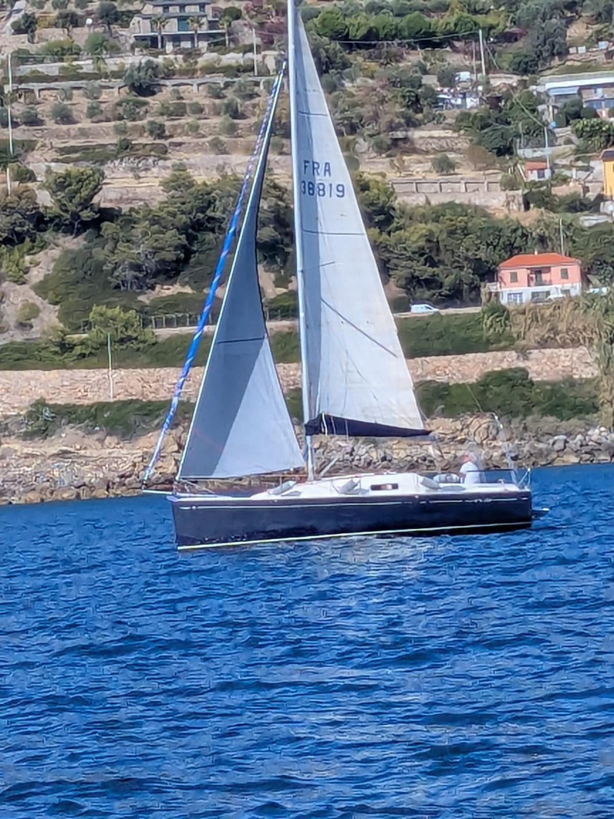 Natante. Open Sapce con 2 cuccette doppie. 1 bagno con wc manuale. Strumentazione elettronica Raymarine nuova 2025. Scafo blu. Sartie nuove 2025. Drizze e scotte nuove 2025. Prese a mare e passascafi nuovi 2025. Luci Led 2025. Cuscineria nuova 2025.