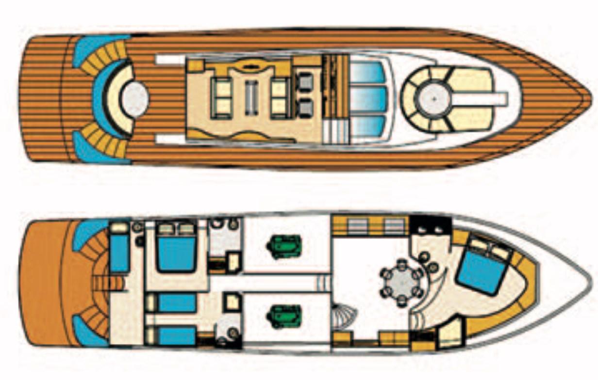 verniciatura completa scafo e sovrastruttura - rifacimento teak su camminamenti laterali - istallazione vasca idromassaggio Jacuzzi a prua - nuovi cielini con illuminazione LED.