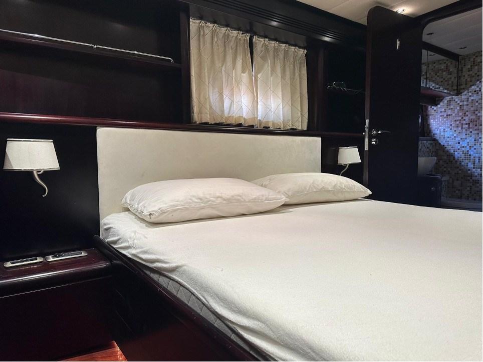 Cabina armatoriale con letto matrimoniale e bagno - cabina Vip con letto matrimoniale e bagno - cabina ospiti con due letti in piano e bagno.