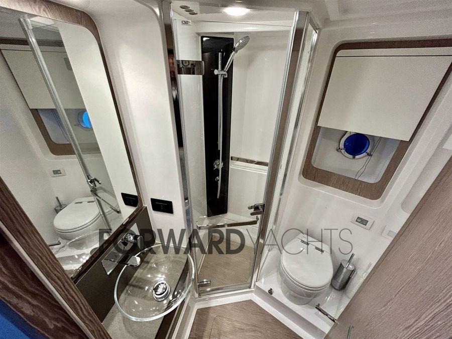 Equipaggiata con 3 motori Volvo Penta da 550Hp e dotata di molti accessori: stabilizzatori Seakeeper, dissalatore, elica di prua, hard-top, passerella a scomparsa, garage per tender, pozzetto e camminamenti laterali in teak, luci subacquee, flap elettrici, Tender Pirelli 330 jet (2021), winch tonneggio di poppa, sistema di aria condizionata e molto altro.
