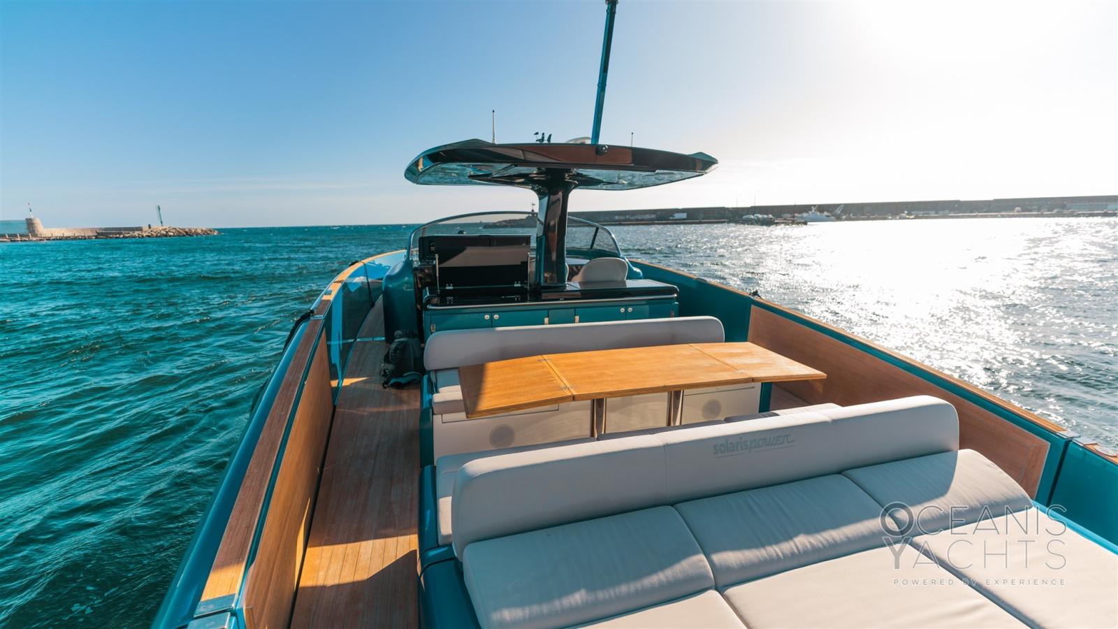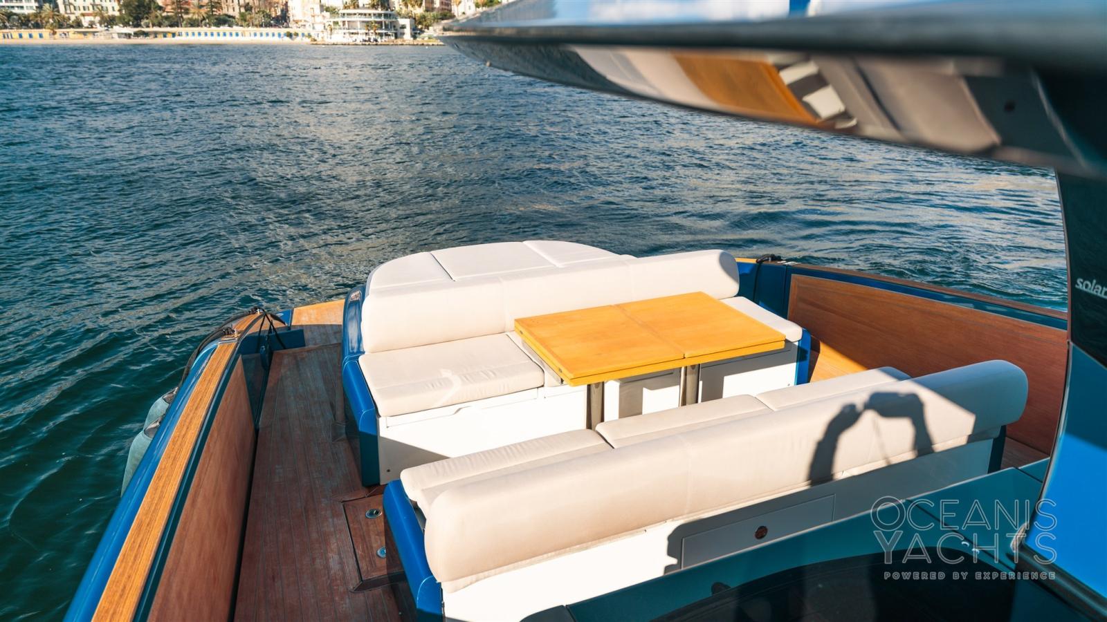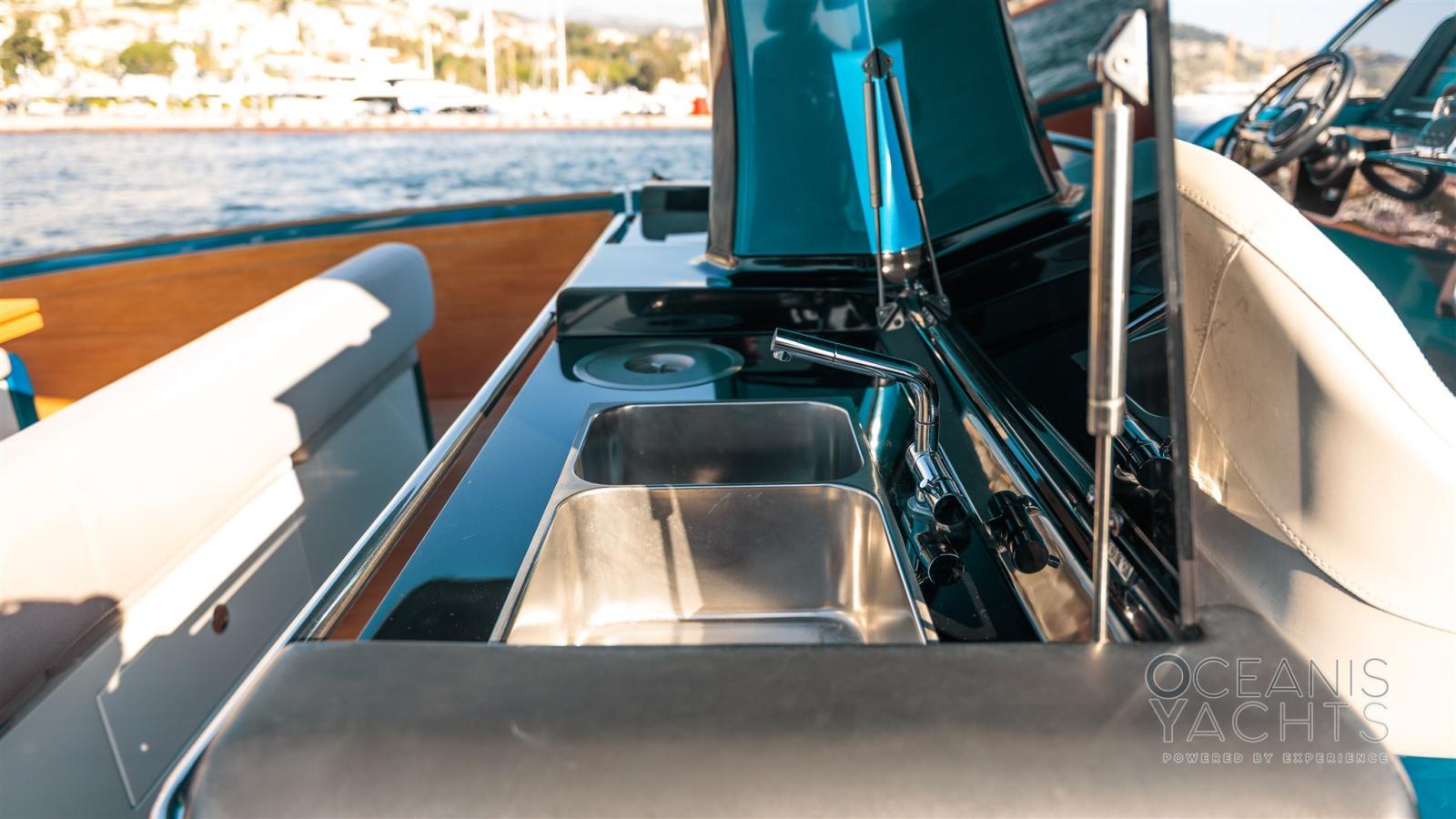 Bitte Abbattibili, Cavo corrente di banchina, Colorazione speciale, Doccia esterna, Garage per tender, Luci di cortesia, Luci subacquee, Parabordi, Passerella, Ponte in teak, Pozzetto Teak, Tavolo pozzetto, Tender, T-Top.