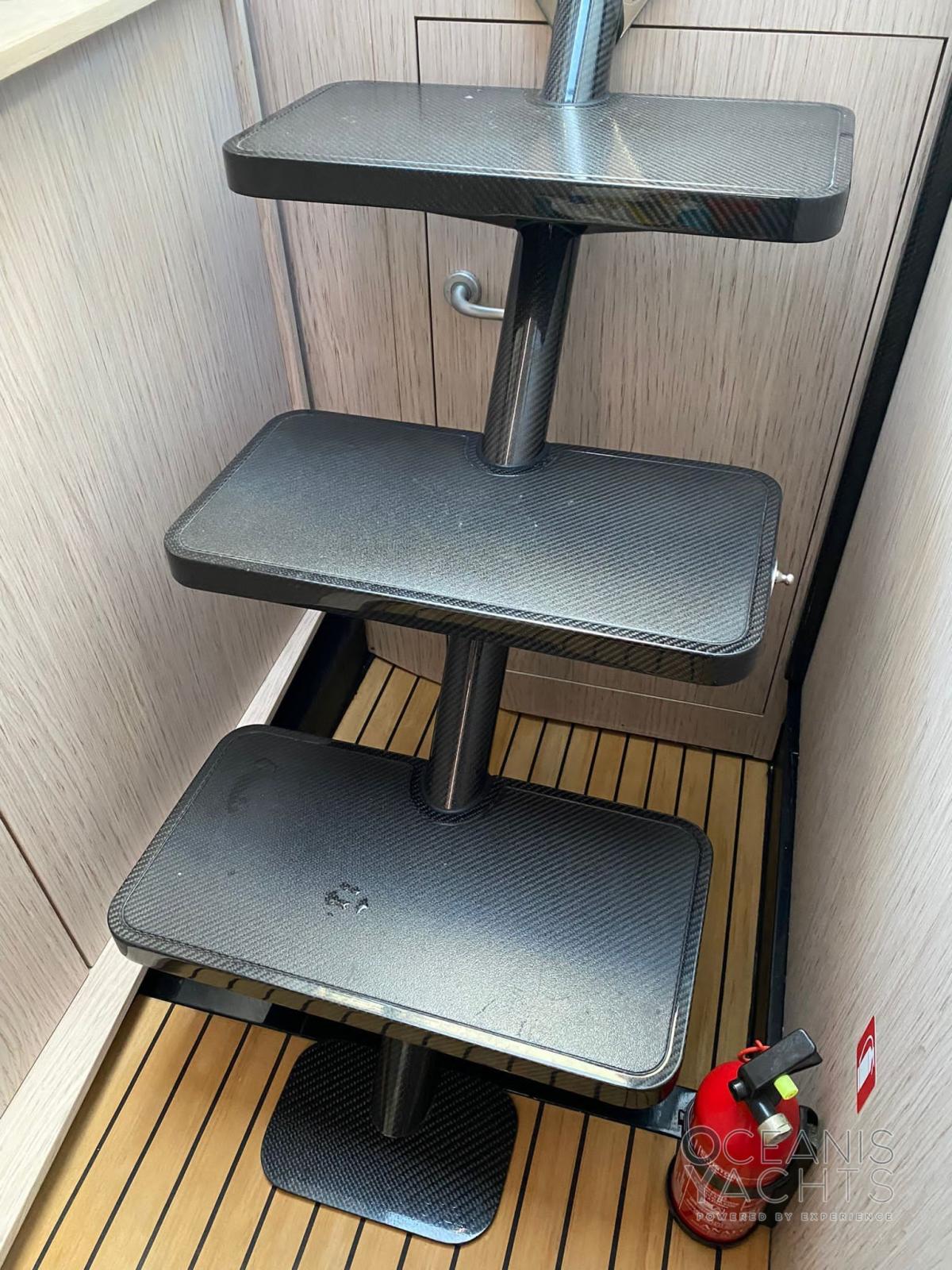 Altri accessori: Catena zincata 6mm 75m, asta per doccetta con miscelatore in carbonio, flaps, verricello a scomparsa a poppa, verricello a prua,