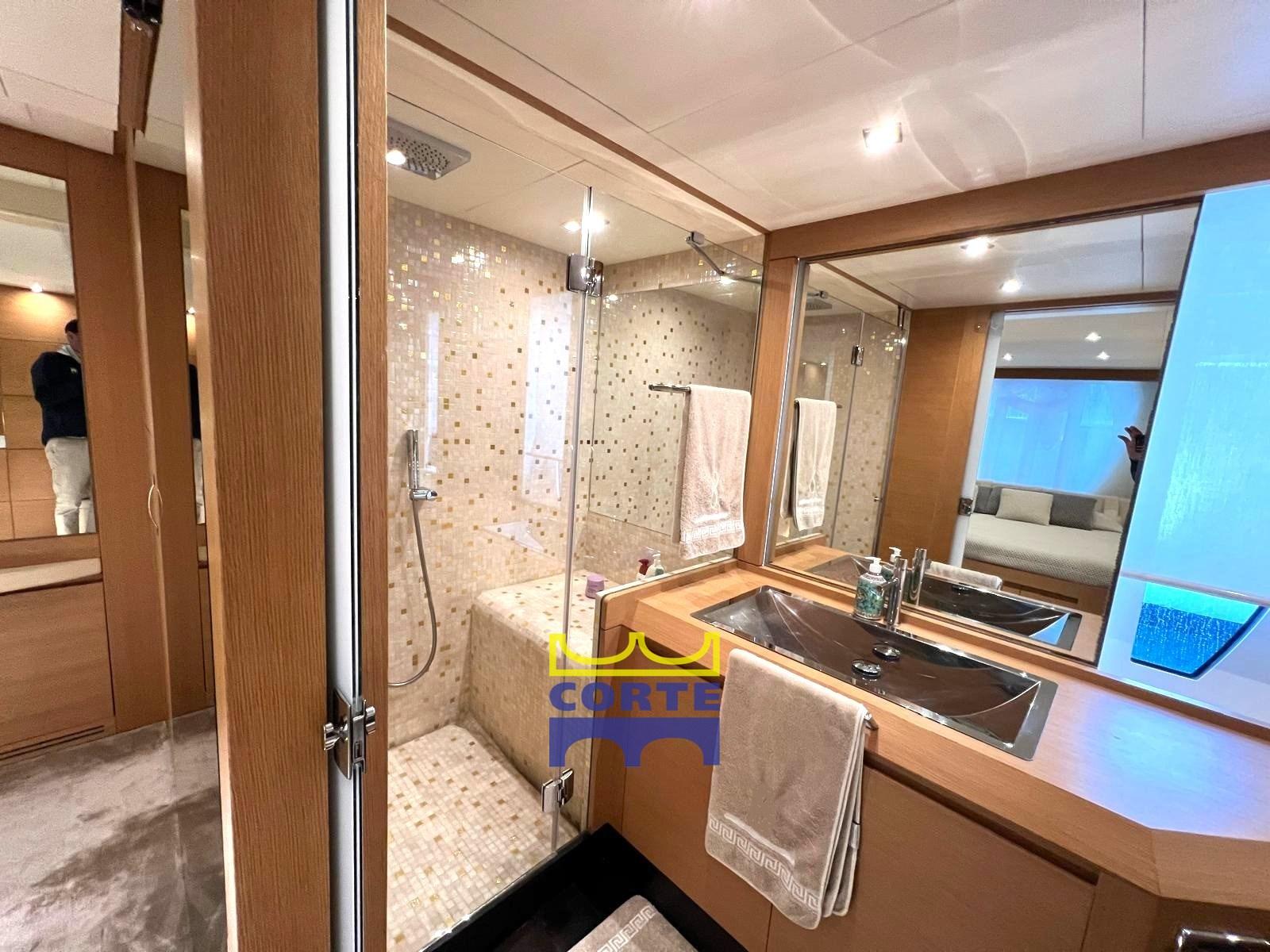 Allarme fumo/gas, Allarme motore, Allarme sentina, 2 Autoclave (230/24), 2 Caricabatterie (24/75 Mastervolt), Doccia esterna, Elica di poppa - stern thruster (idraulica), Elica di prua - bow thruster (idraulica), Garage per tender (idraulico), Lavandino nel Pozzetto, Luci subacquee, Passerella (idraulica a scomparsa), Piattaforma (in teak), Pompa di sentina automatica, Pompa di sentina manuale, Porta ingresso, Porta laterale (elettro idrauliche), Pozzetto Teak, Presa 220V banchina, Salpa Ancore Elettrico, Scaletta da bagno (elettro idraulica), Tavolo pozzetto (trasformabile in prendisole), 2 Winch tonneggio di poppa.