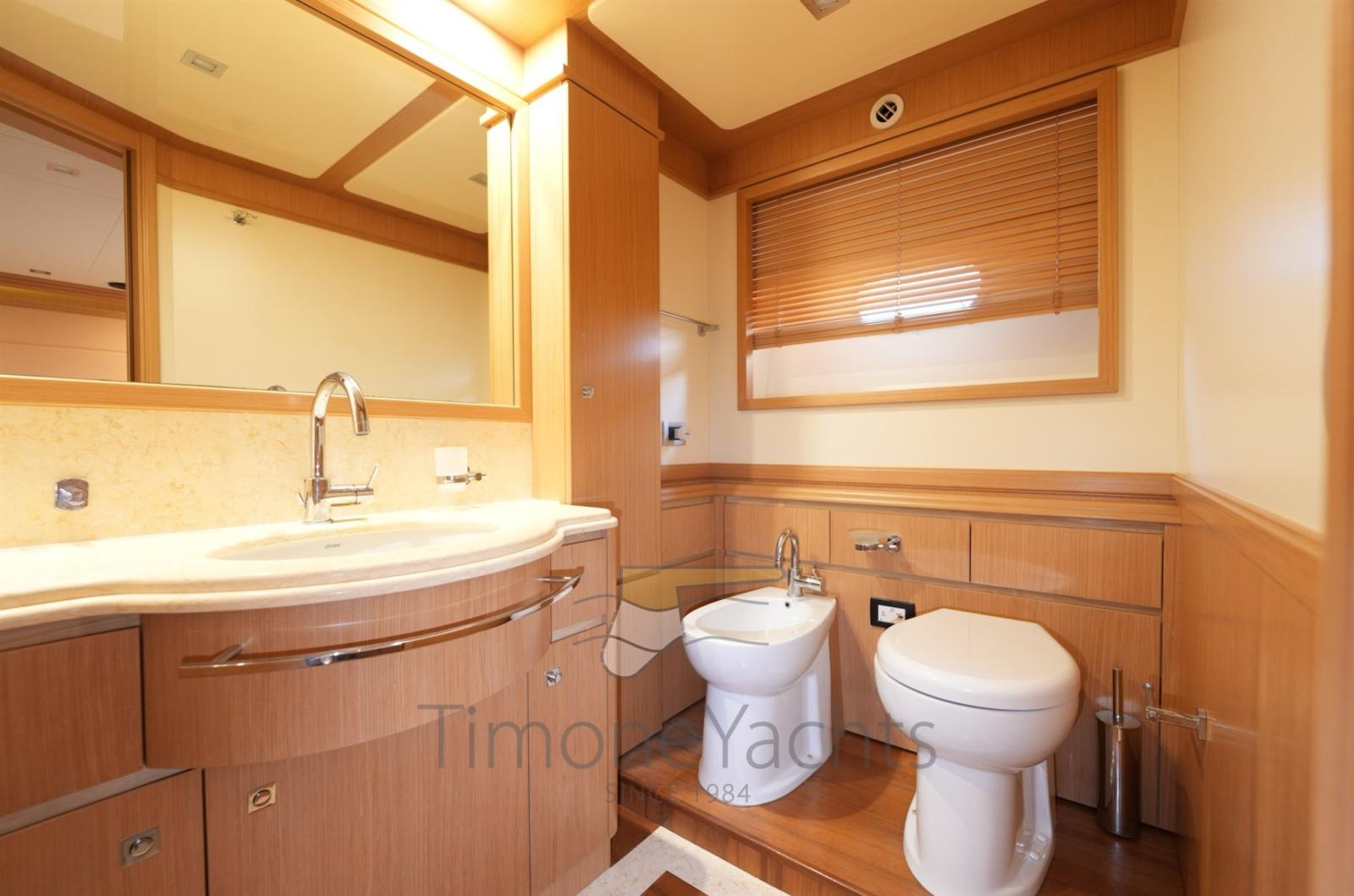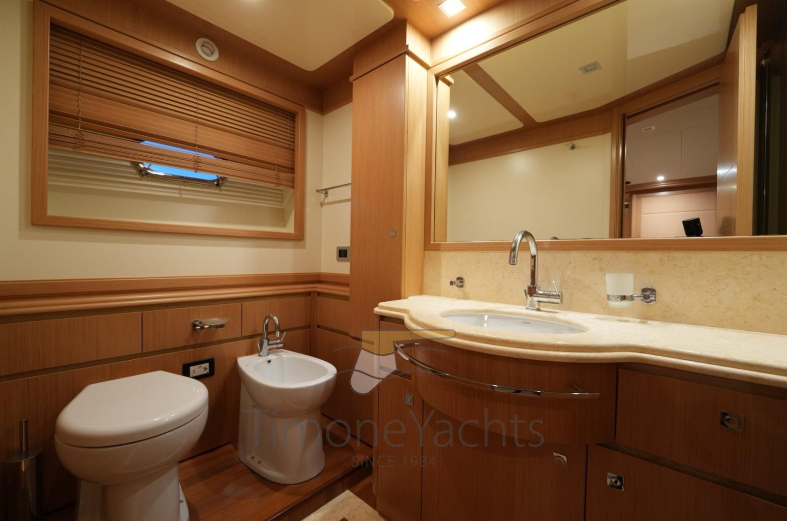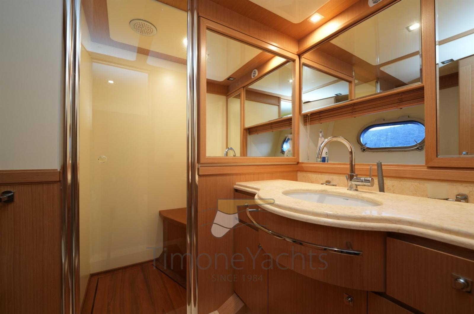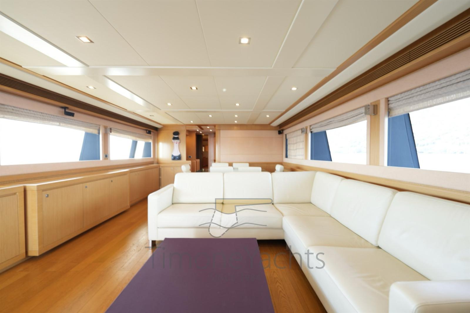Bow thruster -Stern thurster - Tender Zodiac 490/Zodiac 320 - 2 x Outboard Evinrude 70HP/Jojnson - Windlass - Gallery 5 fire - Cockpit covering - Bimini top - Bow sun cushion - Cushions - Fridge - Freezer - Icemaker - Oven - Washing machine - Dish washer - DVD - Stereo sound system - Decoder SKY - Sat tv system - TV n° 8 - Water pump - Shore water plug - Chain counter - Garage - Stern mooring winch - Gangway - CD player - Leather sofa - Waste holding tank - Battery charger Mastevolt - Frige on fly - Grill on fly - Searchlight - Water heater - Teak platform - Teak cockpit - Teak sideways - Teak FLY - Glendening recovery system - Hamann waste treatment system - Teak cockpit + fly table - Salon wood floor - Nr. 2 additional mooring stations with tiller - Nr. 2 Gyro zero speed stabilizers.