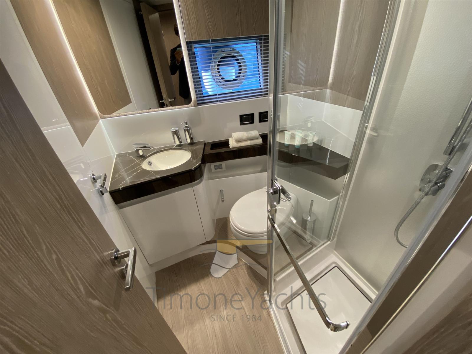 Stabilizzato, completamente attrezzato. Circa 600 ore. Eleganti personalizzazioni come la scaletta da bagno estesa in fibra di carbonio (stile piscina) e un soffione in fibra di carbonio rimovibile sullo specchio di poppa.