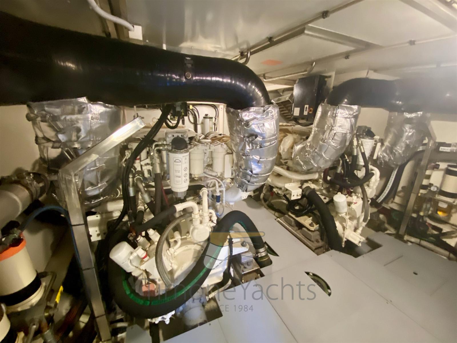 Camminamenti laterali in teak, Doccia esterna, Faro orientabile, Flap idraulici, Gruette per tender su fly, Impianto antincendio, Indicatori Flaps, Lavaggio catena, Luci subacquee, Passerella, Porta laterale, Pozzetto Teak, Presa 220V banchina, Presa acqua banchina, Stabilizzatori (Seakeeper), Tavolo pozzetto, Tender, Tromba, 2 Winch tonneggio di poppa, Winch tonneggio di prua.