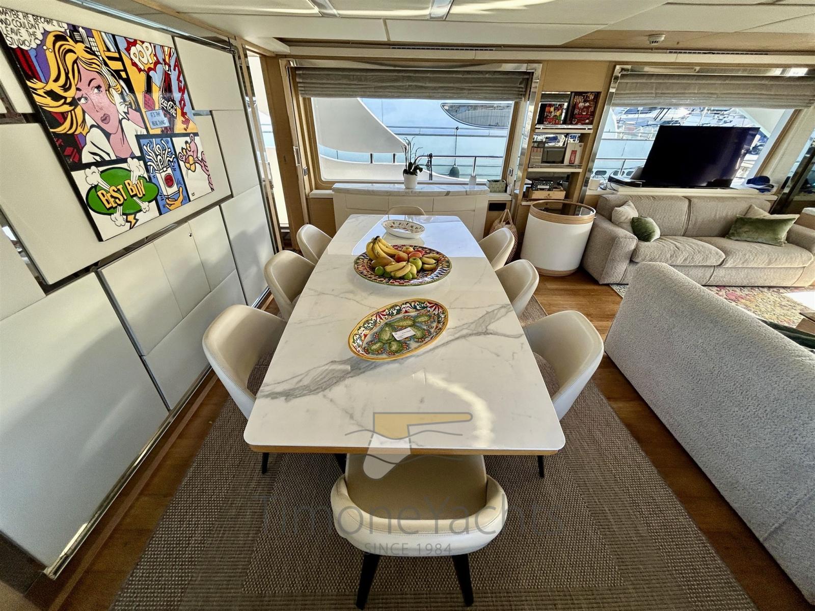 Allarme fumo/gas, Allarme motore, Allarme sentina, 2 Ancora, Autoclave, 2 Autogonfiabile, Bocche di Lupa, Camminamenti laterali in teak, Cavo corrente di banchina, Doccia esterna, Doppia timoneria, Garage per tender, Hard top, Impianto antincendio, Impianto Aria Compressa, 2 Lavaggio catena, Luci di cortesia, Luci subacquee, Monitor batteria, Passerella, Pompa di sentina automatica, Pompa di sentina manuale, Pompa Lavaggio Ponte, Ponte in teak, Porta ingresso, 2 Porta laterale, Pozzetto Teak, Presa 220V banchina, Salpa Ancore Elettrico, Scala reale, Stabilizzatori (Fins, electric (underway + zero speed)), Tavolo pozzetto, Tientibene con cancelletti, Tromba, Winch tonneggio di poppa, 2 Winch tonneggio di prua.