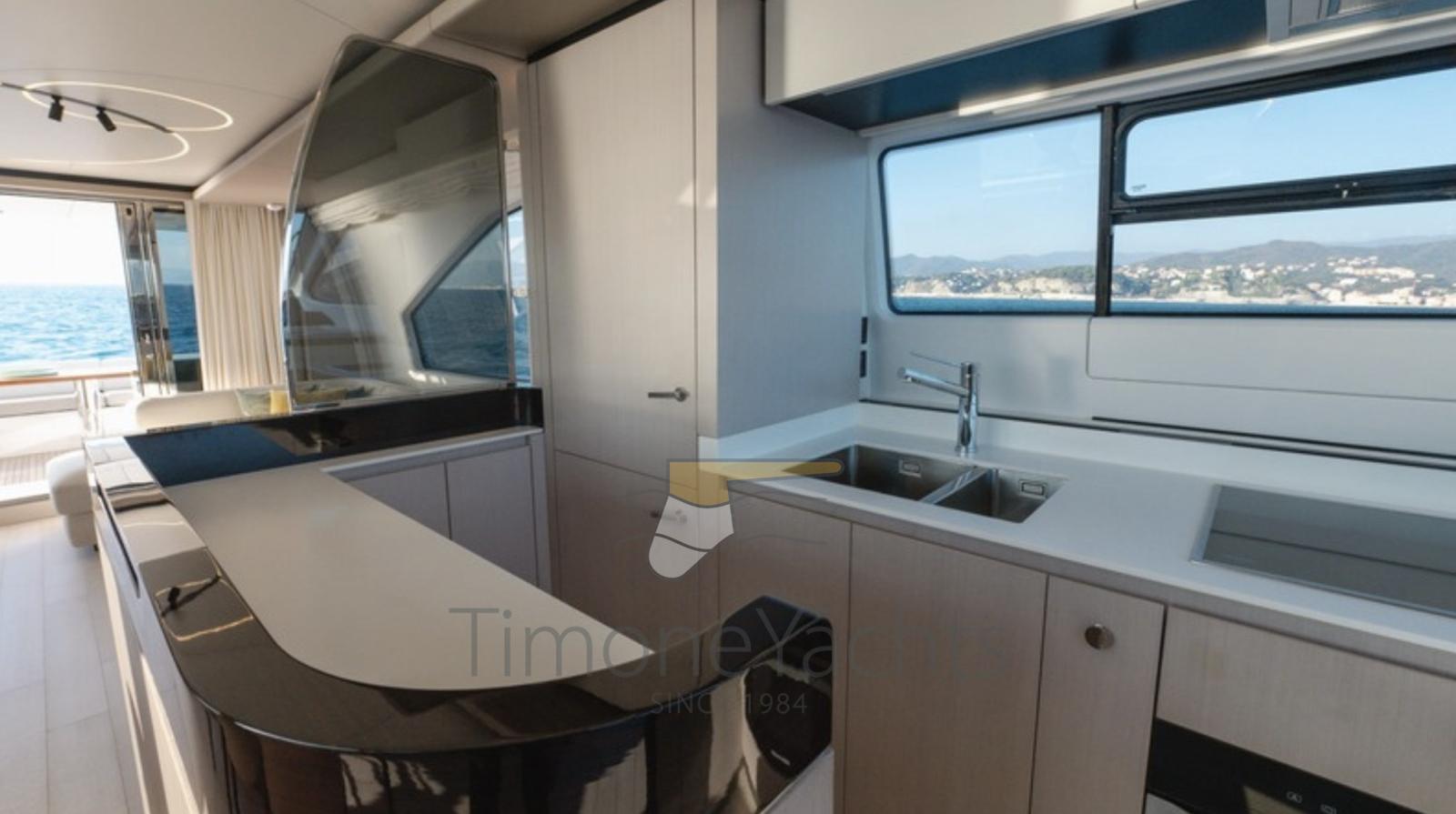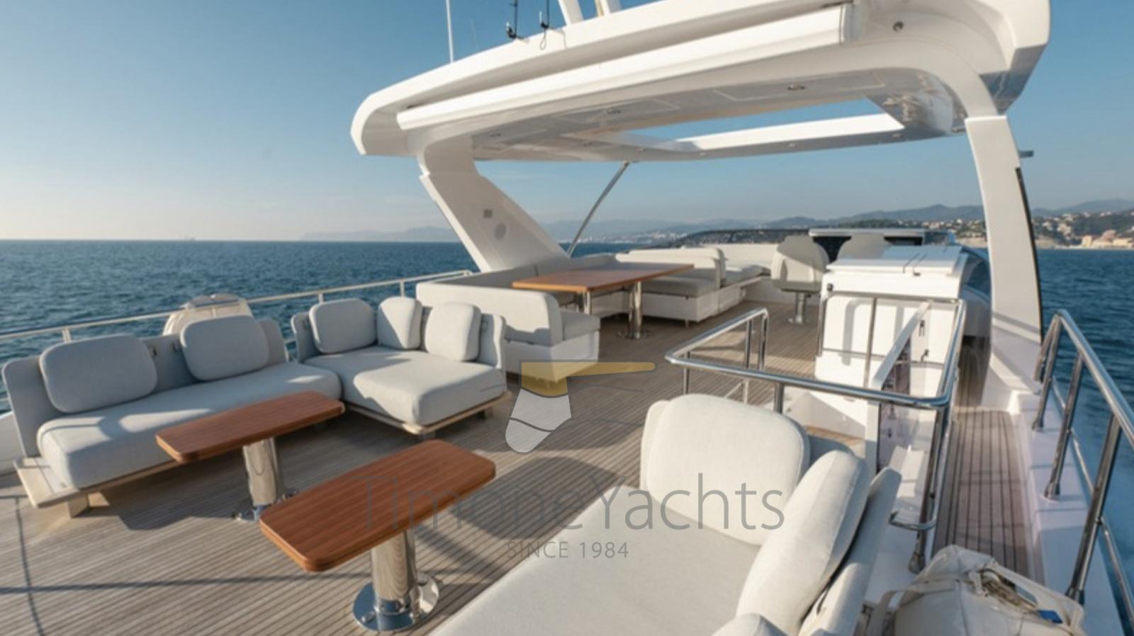 Allarme fumo/gas, Allarme motore, Allarme sentina, Alternatore, Auto Dynamic Trim Interceptor, Autoclave, Camminamenti laterali in teak, Cavo corrente di banchina, Doccia esterna, Doppia timoneria, Flap elettrici, Hard top, Indicatori Flaps, Lavaggio catena, Lavandino nel Pozzetto, Luci di cortesia, Luci subacquee, Parabordi, Passerella, Piattaforma, Pompa di sentina automatica, Ponte in teak, Porta ingresso, Porta laterale, Pozzetto Teak, Presa 220V banchina, Presa acqua banchina, Salpa Ancore Elettrico, Scaletta da bagno, Stabilizzatori (Seakeeper 18), Tavolo pozzetto, Tender (Tender 3.9m, 5 seater Technorib PIRELLI J39), Tientibene con cancelletti, Tromba, Winch tonneggio di poppa, Winch tonneggio di prua.