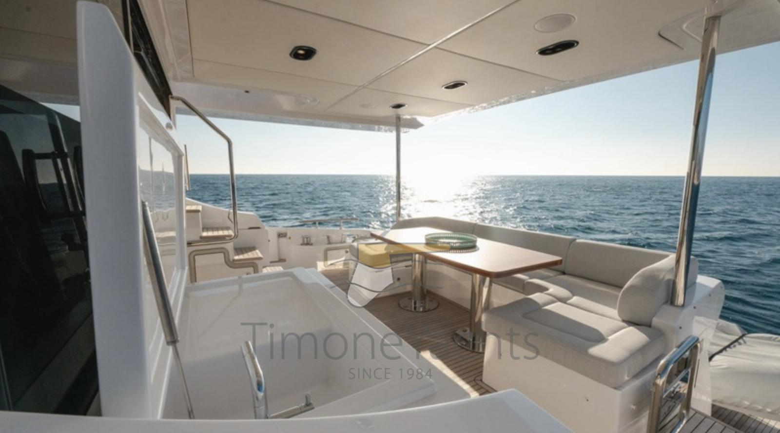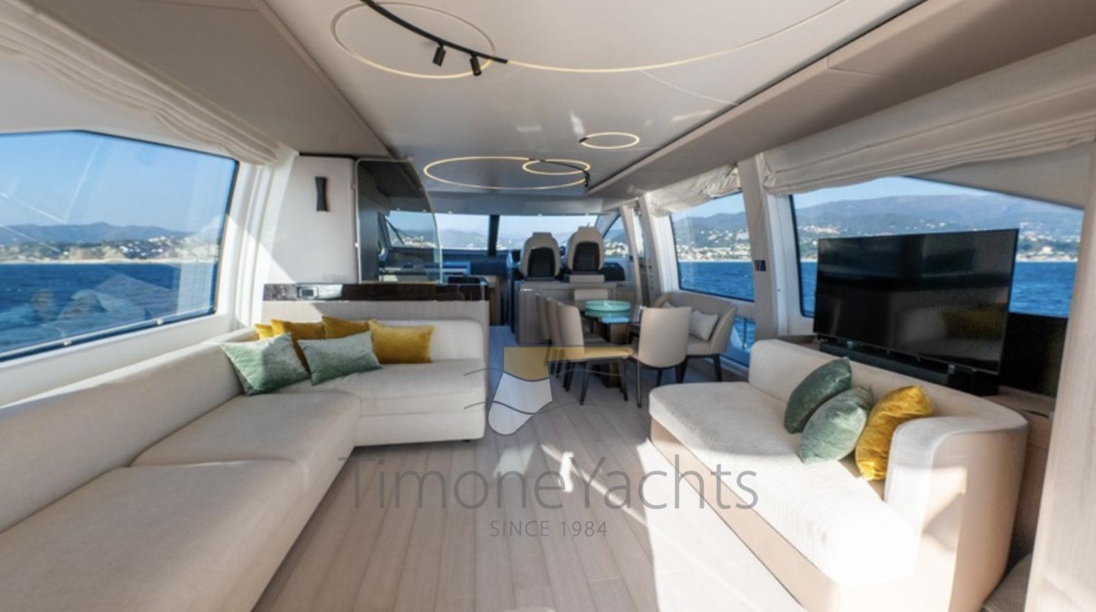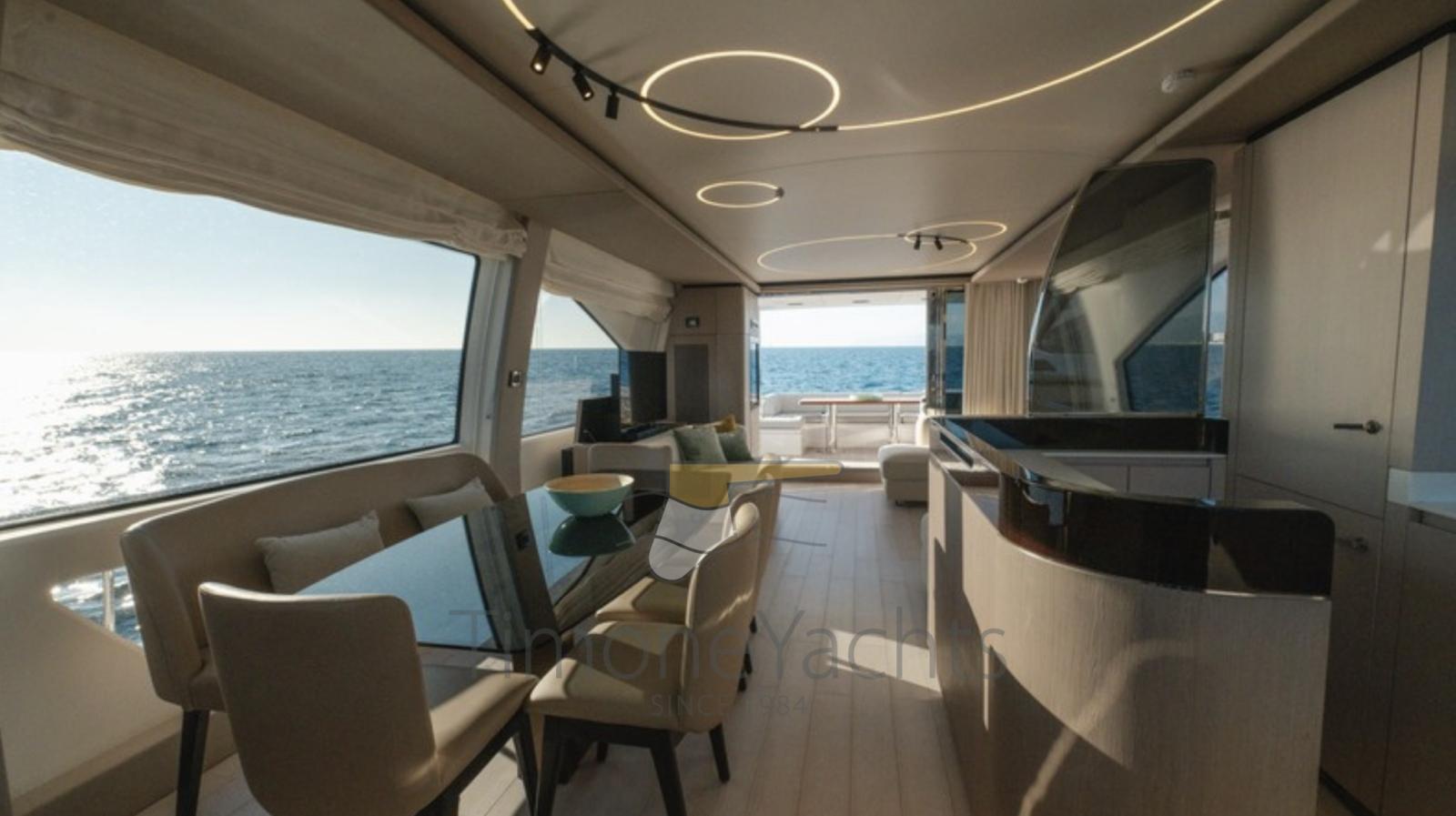 Acqua Calda, BBQ/ Grill, Boiler, Cassaforte, Clima reversibile, Dimmer per Luci, Dissalatore, Indicatore del Serbatoio dell’Acqua, Pavimento interno in legno, Prese interne 12v, Prese interne 220v, Serbatoio Acque Nere, 4 WC marino elettrico.