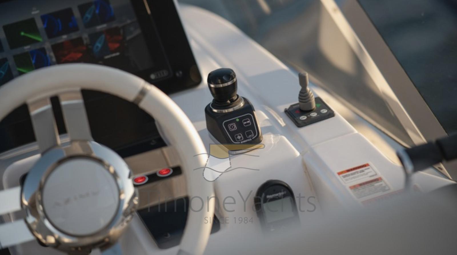 AIS, Angolo barra, Antenna radar, Comando motori elettronico, Computer di bordo, Contametri catena, Display, DSC vhf, Joystick, Monitor dei consumi, Plotter con antenna GPS.