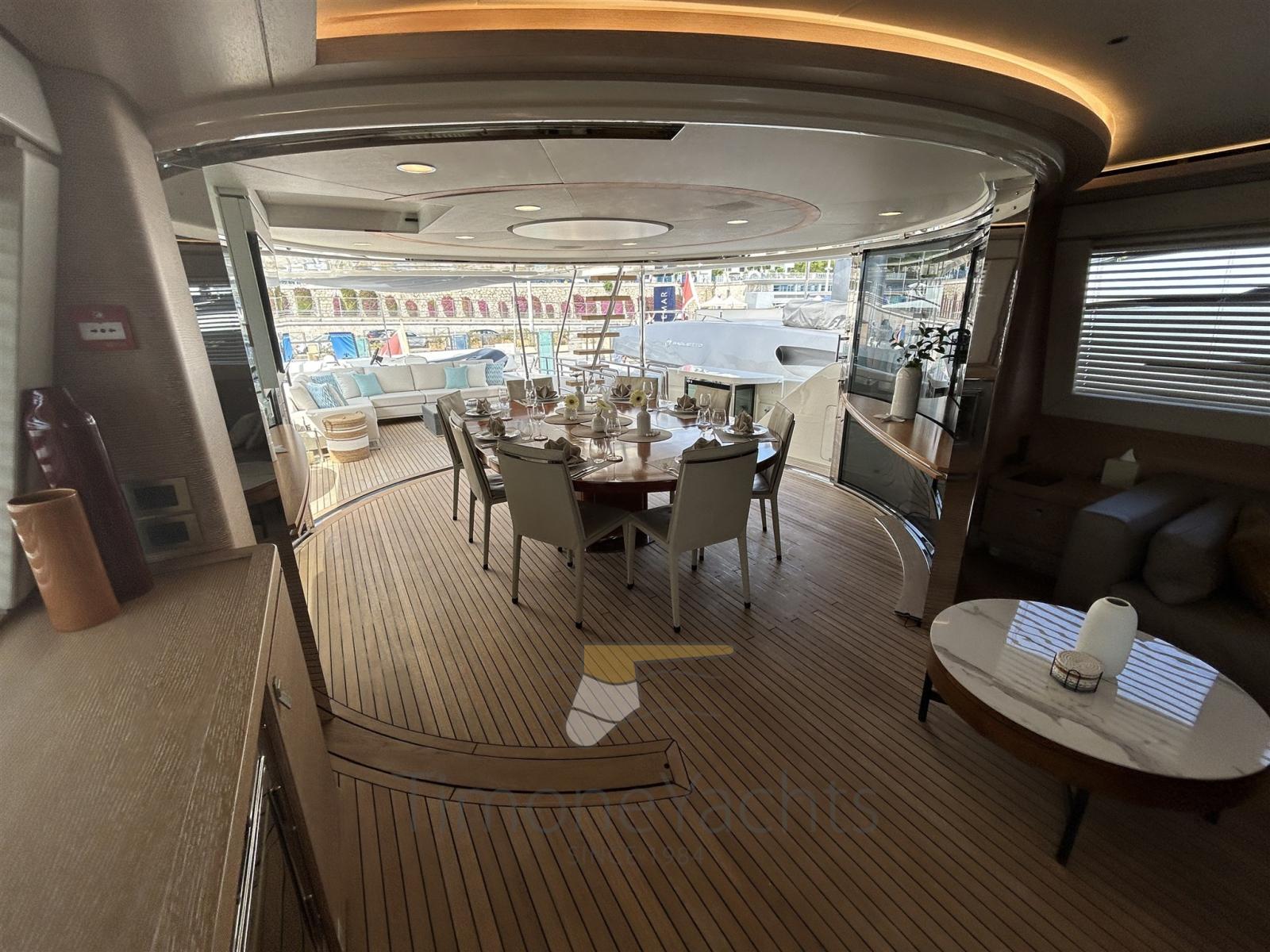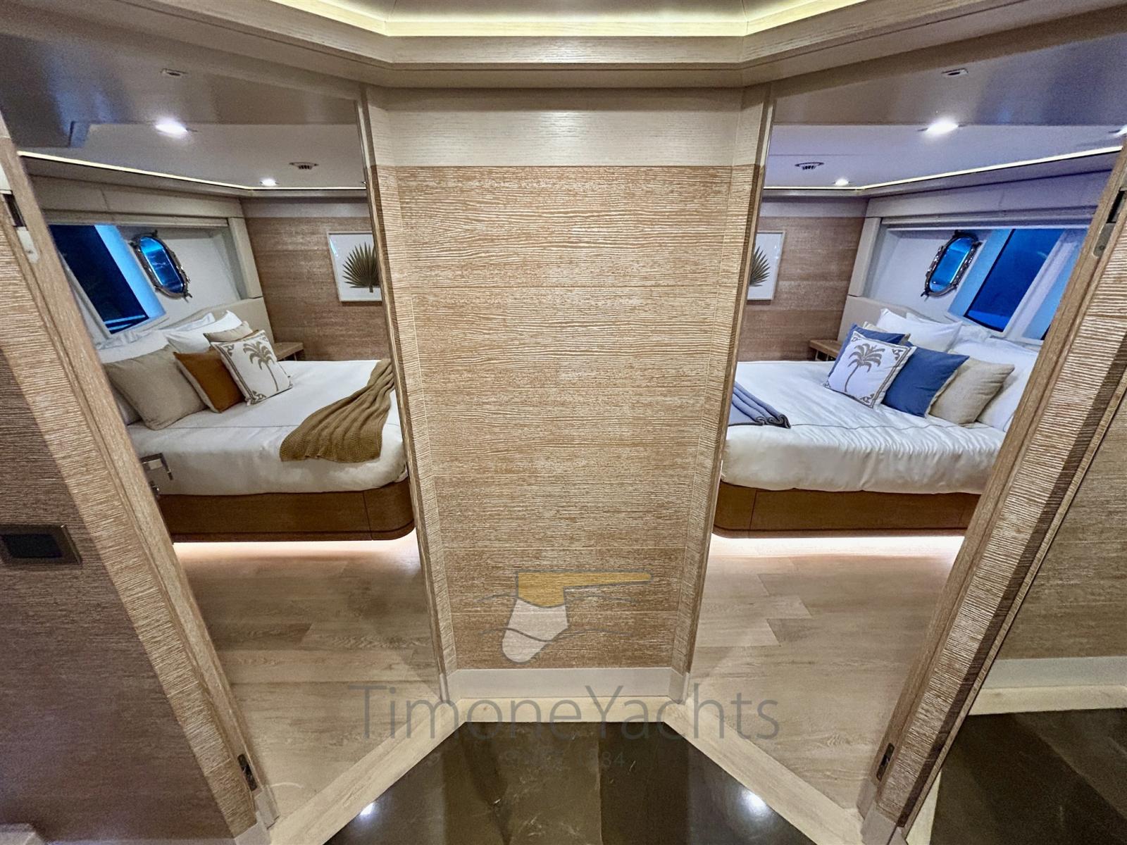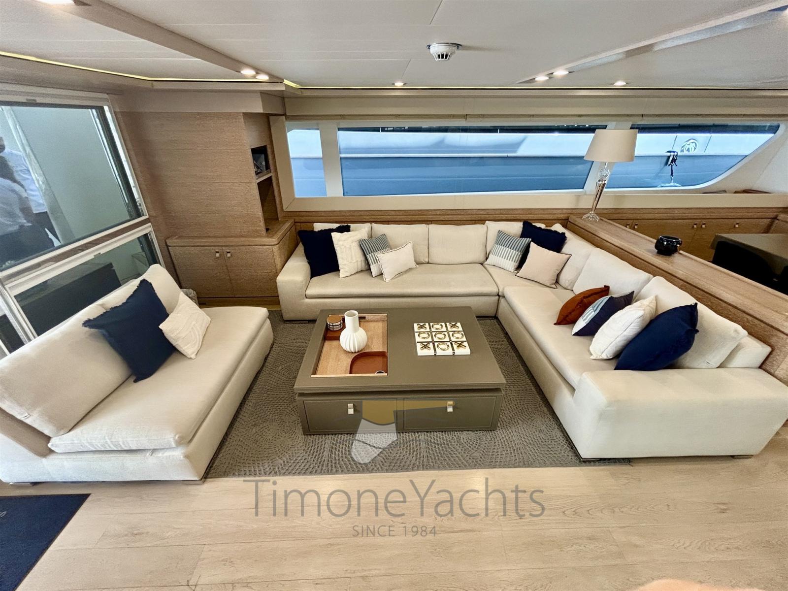 Questo yacht include una vasca idromassaggio, un elegante beach club e diverse aree pranzo e relax, sia interne che esterne. Il layout dello yacht è perfetto per ospitare eventi sociali o godersi un tranquillo rifugio in mare. Gli interni della Navetta 33 sono caratterizzati da materiali di alta qualità e da un design moderno. Le tonalità neutre si abbinano a finiture di lusso, creando un'atmosfera calda e accogliente che coniuga raffinatezza e comfort.