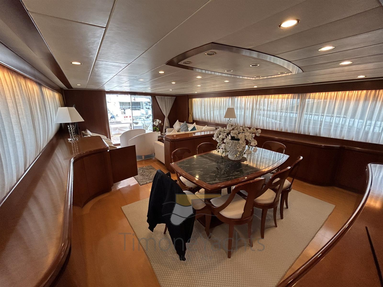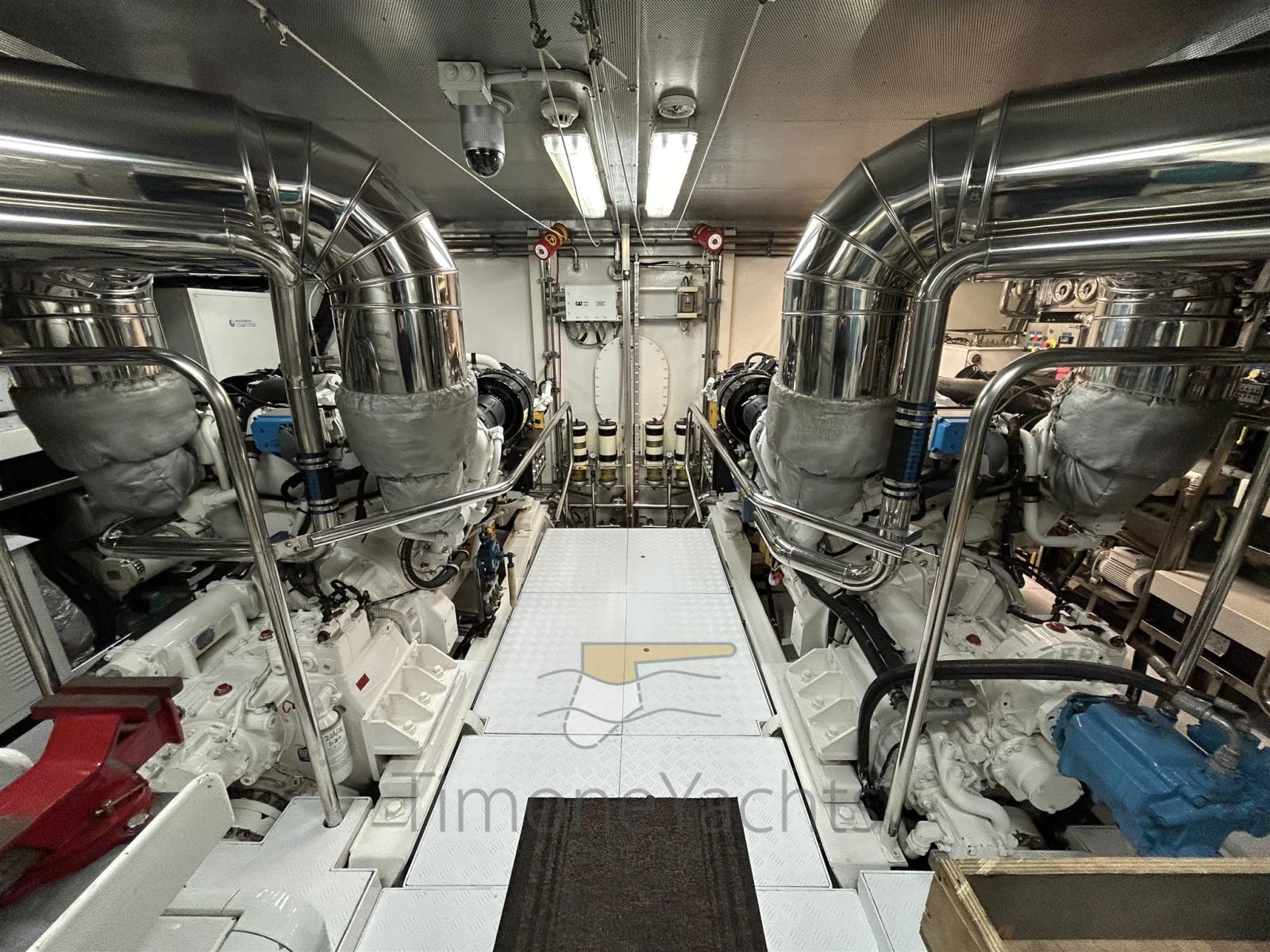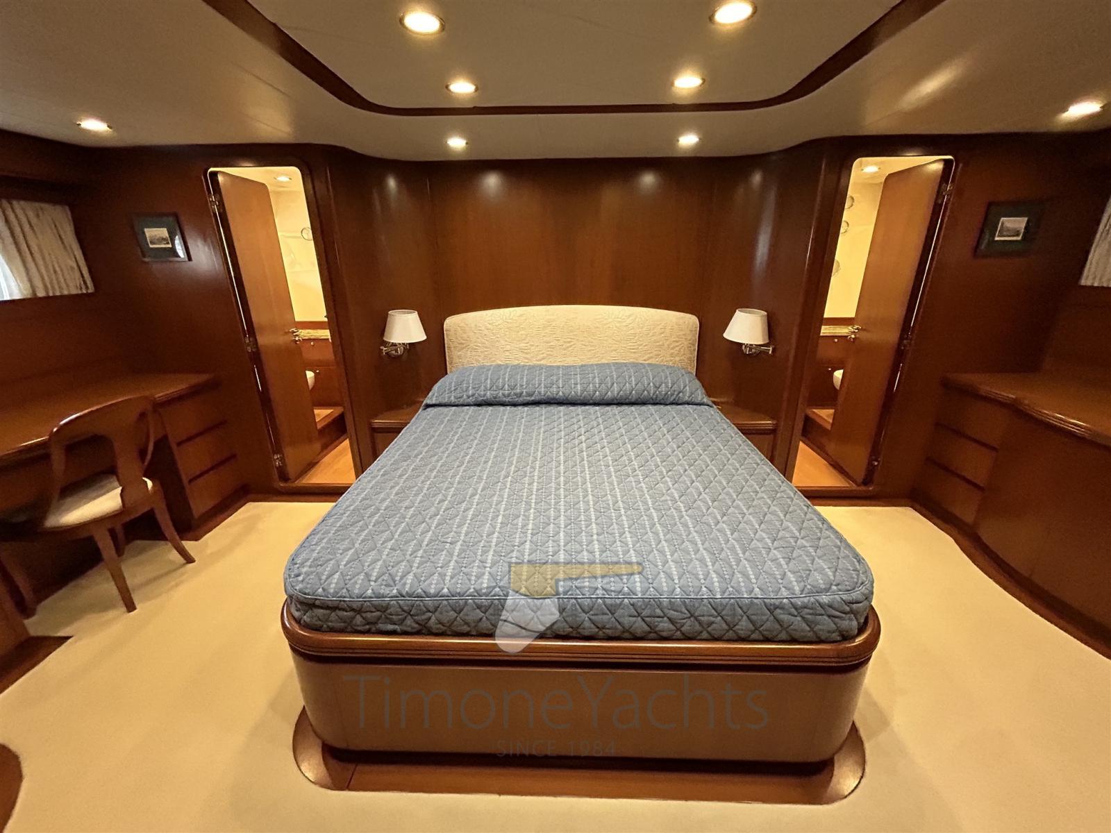 Alternatore, Camminamenti laterali in teak, Faro orientabile, Flap idraulici, Gruette per tender su fly, Impianto antincendio, Indicatori Flaps, Luci di cortesia, Luci subacquee, Passerella, Ponte in teak, 2 Porta laterale, Pozzetto Teak, Presa 220V banchina, Selle per Tender, Tavolo pozzetto, Tender, Tromba, Winch tonneggio di poppa, Winch tonneggio di prua.