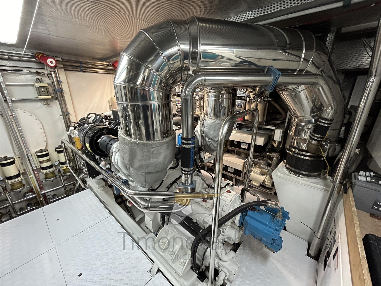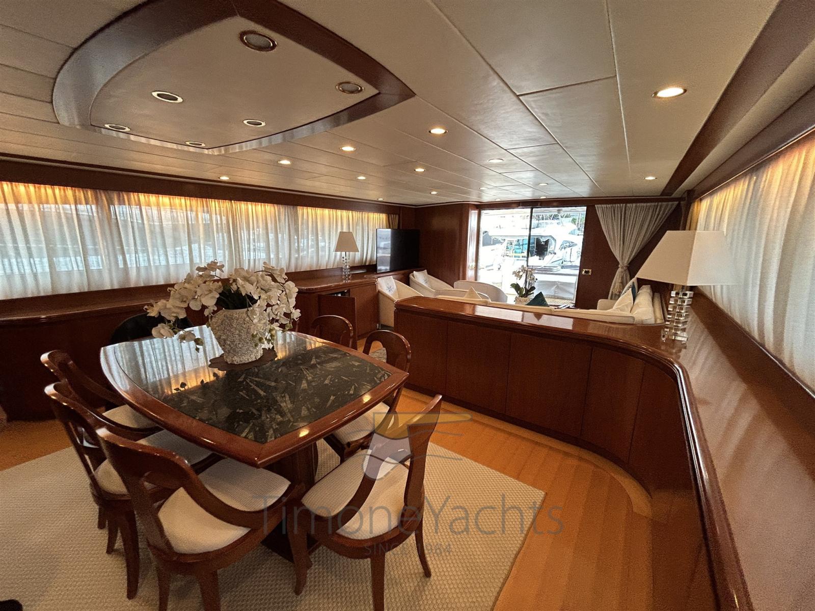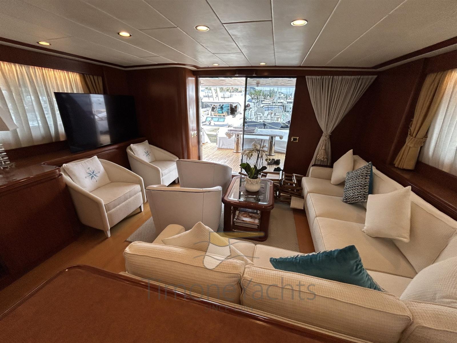 Alternatore, Camminamenti laterali in teak, Faro orientabile, Flap idraulici, Gruette per tender su fly, Impianto antincendio, Indicatori Flaps, Luci di cortesia, Luci subacquee, Passerella, Ponte in teak, 2 Porta laterale, Pozzetto Teak, Presa 220V banchina, Selle per Tender, Tavolo pozzetto, Tender, Tromba, Winch tonneggio di poppa, Winch tonneggio di prua.