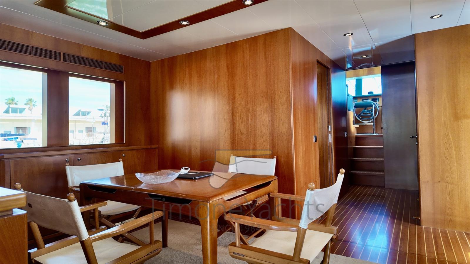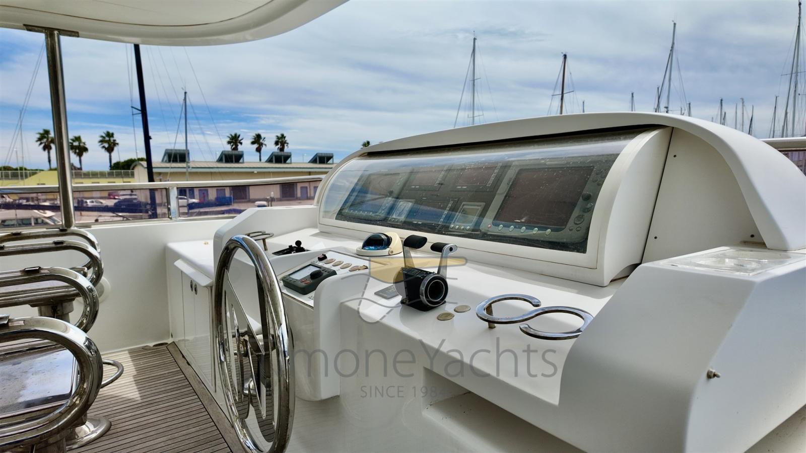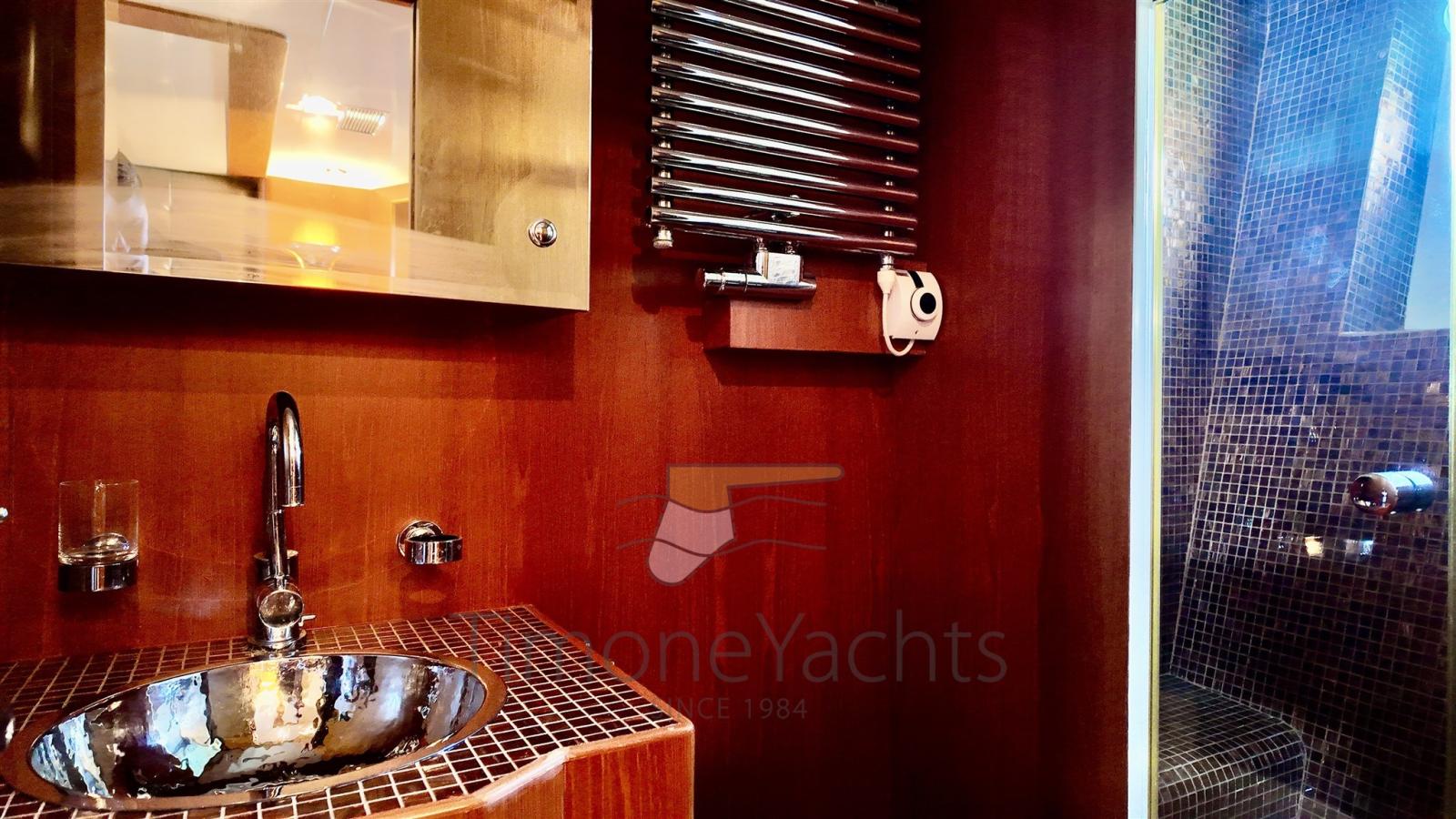 Questa unità offre un layout a 4 cabine, tra cui una spaziosa suite armatoriale a tutto baglio a centro barca, una cabina VIP a prua, una seconda cabina VIP con letto matrimoniale a sinistra, e due letti singoli pullman per gli ospiti a dritta. Il bagno di servizio sul ponte principale, ancora una volta immenso. Completamente ristrutturata nel 2017, vanta numerosi aggiornamenti, tra cui stabilizzatori Wesmar a pinne, propulsori idraulici a prua e a poppa e una postazione di comando in pozzetto per una manovrabilità impeccabile.