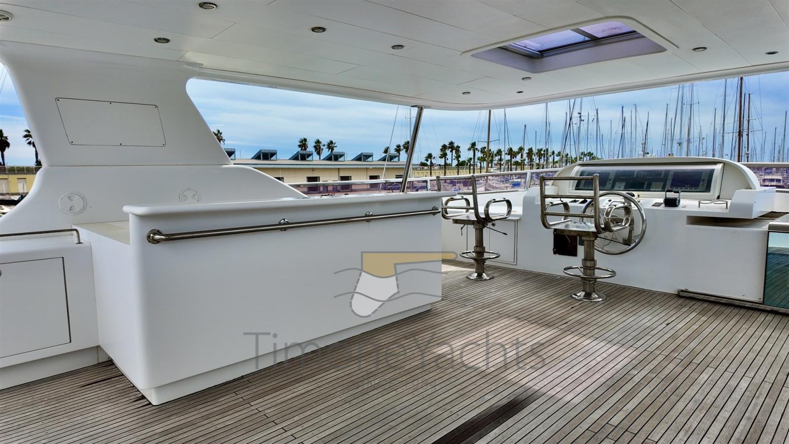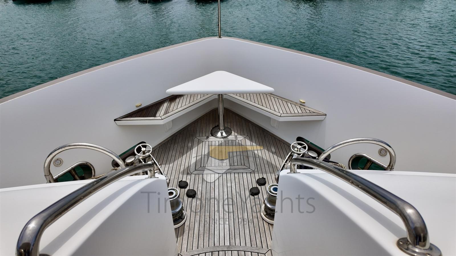 Autoclave, Camminamenti laterali in teak, Colorazione speciale, Doppia timoneria, Faro orientabile, Flap idraulici, Garage per tender, Hard top, Impianto antincendio, Impianto Aria Compressa, Luci subacquee, Passerella, Piattaforma, Porta ingresso, Porta laterale, Pozzetto Teak, Presa 220V banchina, Presa acqua banchina, Scaletta da bagno, Stabilizzatori (WESMAR), Tavolo pozzetto, Tromba, Winch tonneggio di poppa, Winch tonneggio di prua.