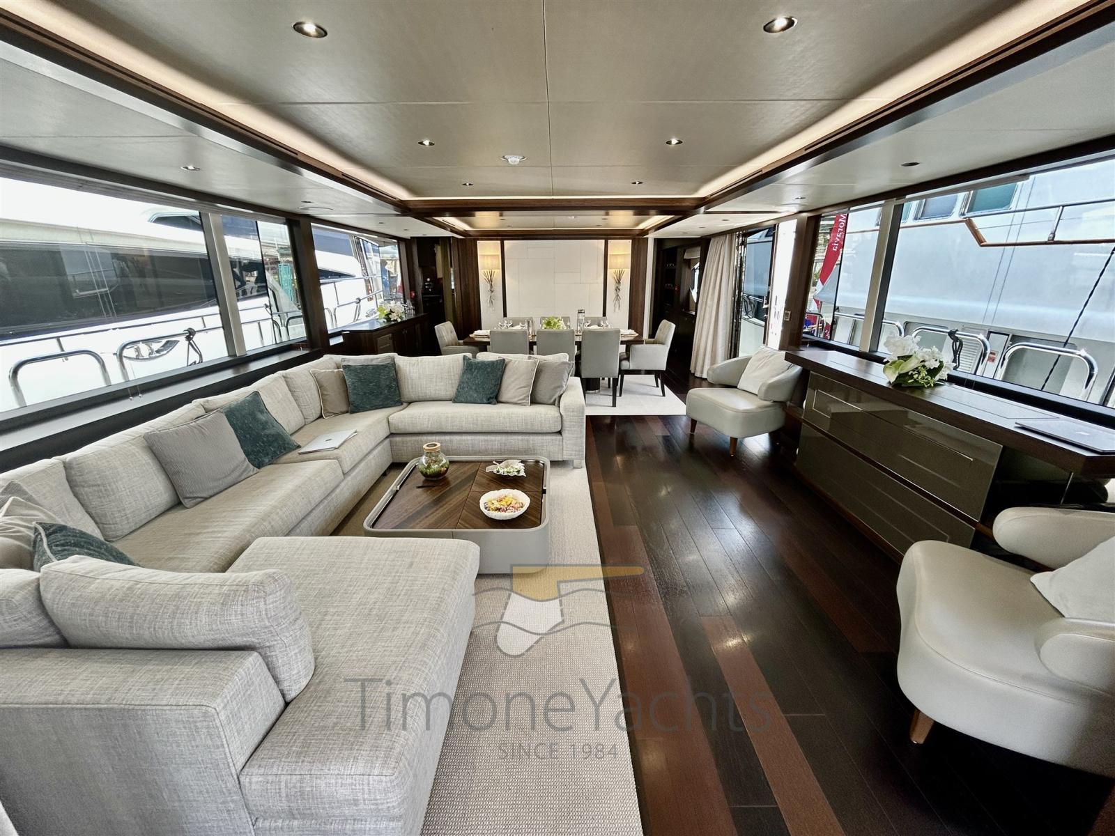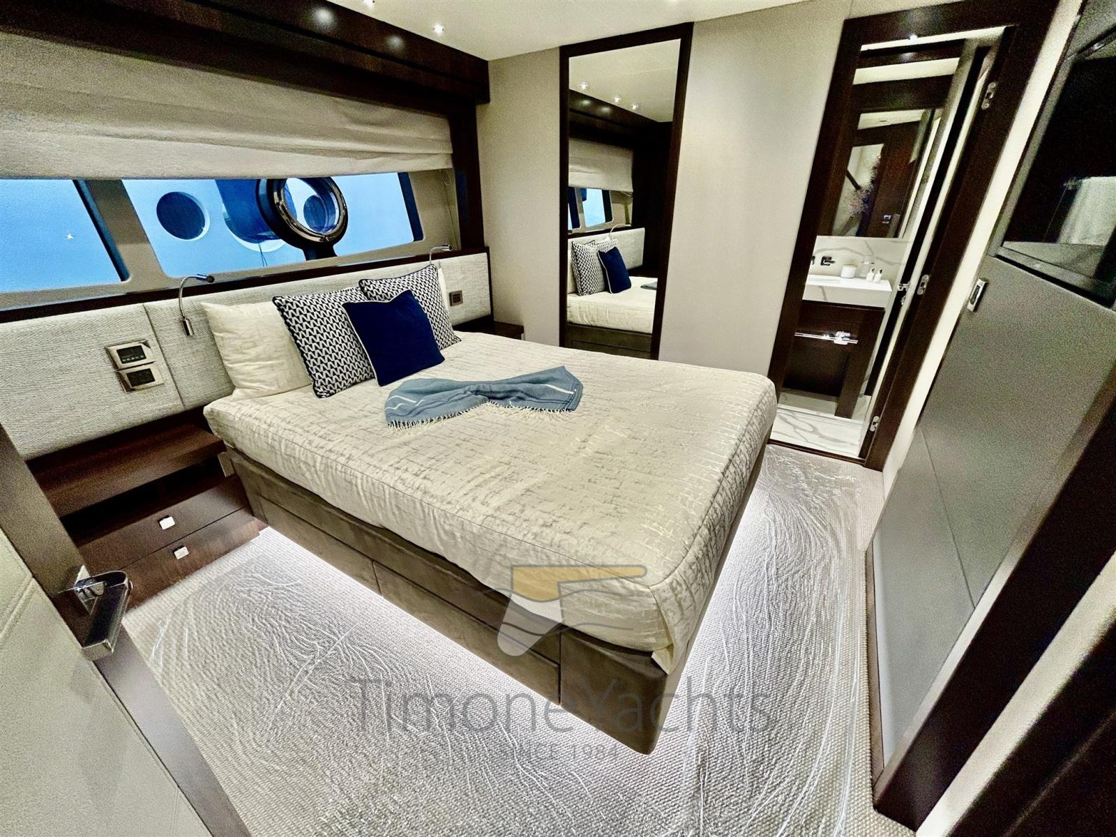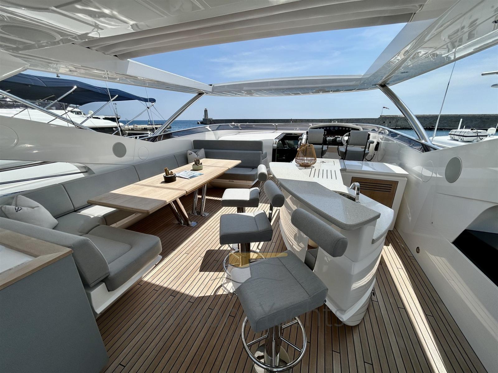 :il flybridge vanta una piscina che invita a rilassarsi al sole, mentre ampie zone lounge e pranzo sono perfette per godersi il panorama. Il ponte di prua offre un’area prendisole esclusiva, mentre il pozzetto di poppa regala uno spazio intimo per cene all’aperto.
