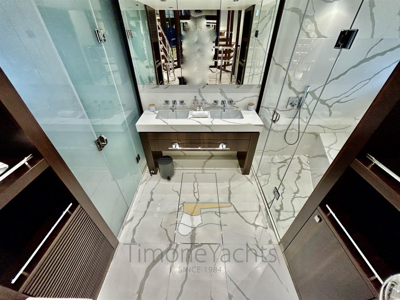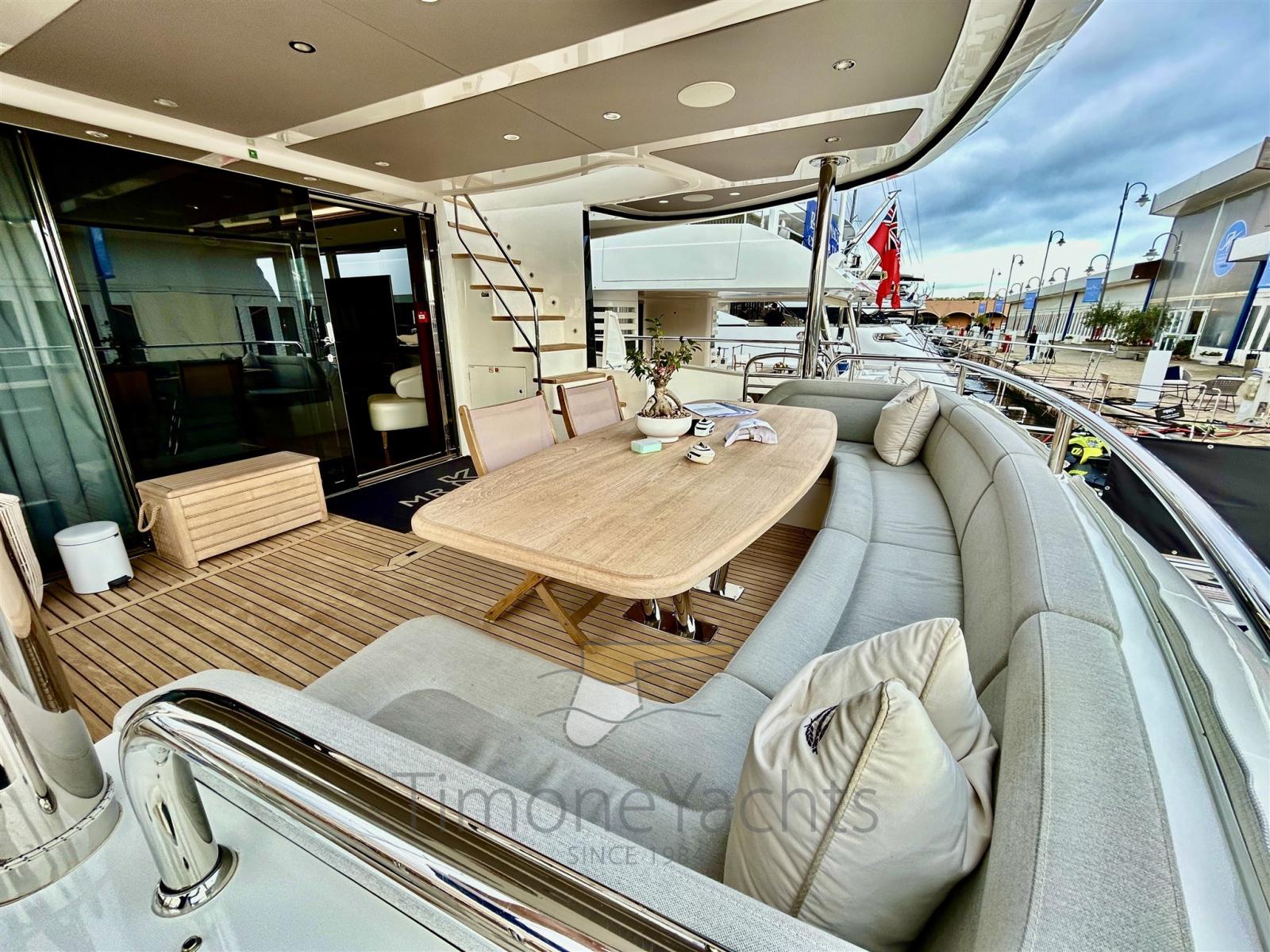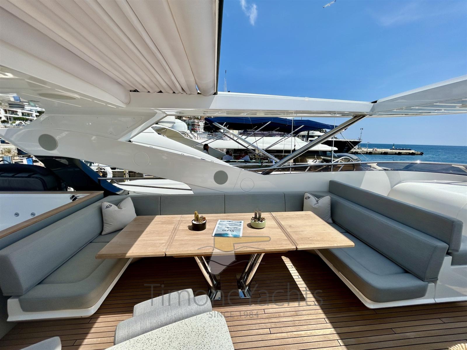 :il flybridge vanta una piscina che invita a rilassarsi al sole, mentre ampie zone lounge e pranzo sono perfette per godersi il panorama. Il ponte di prua offre un’area prendisole esclusiva, mentre il pozzetto di poppa regala uno spazio intimo per cene all’aperto.