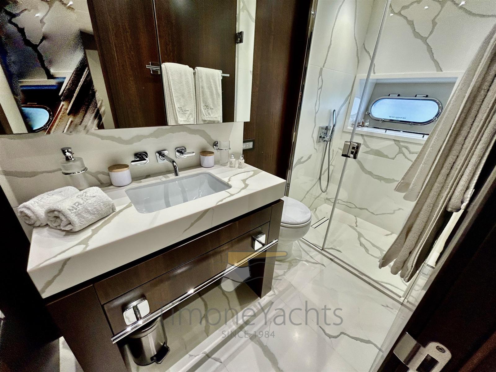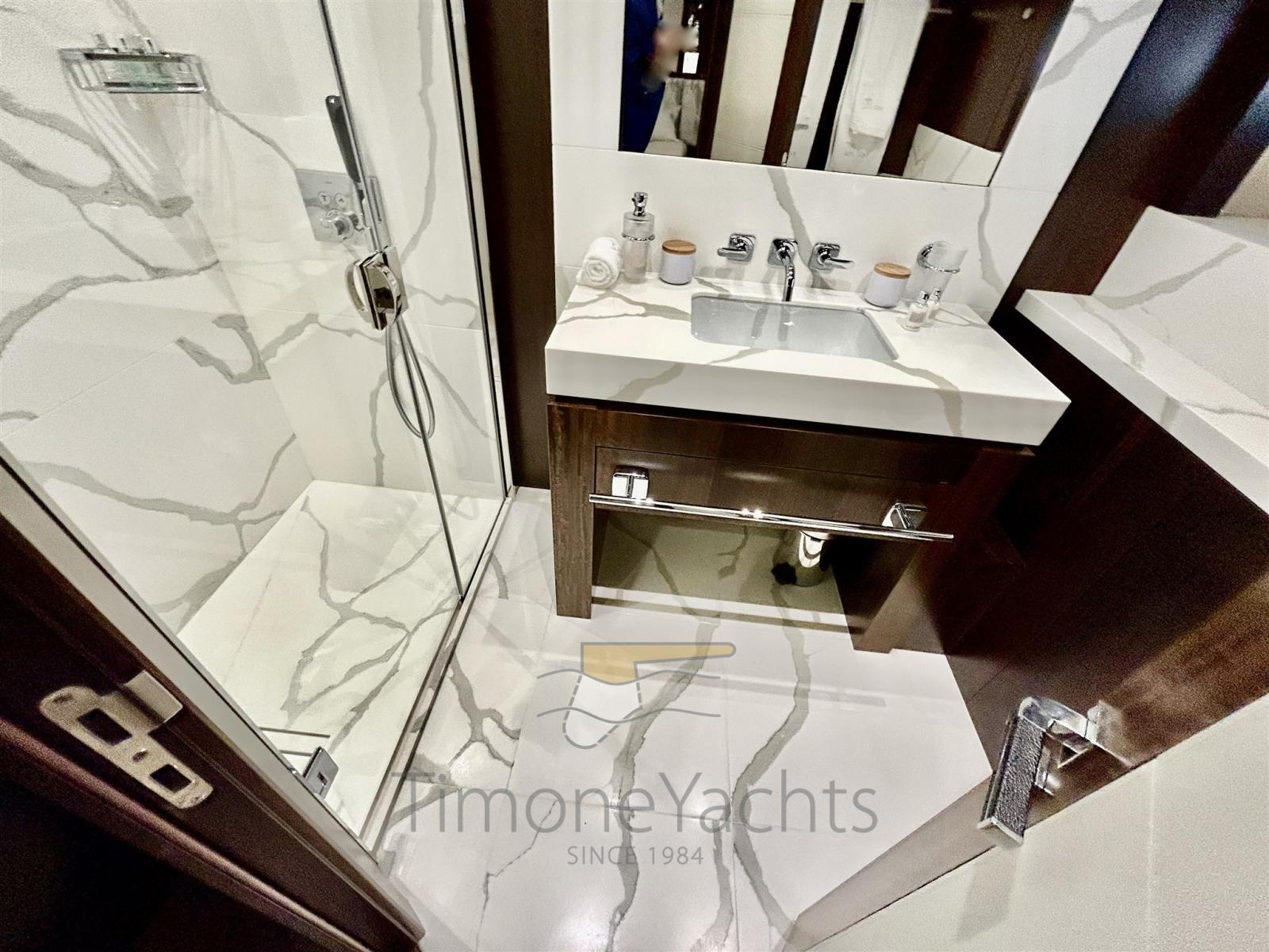 Gli spazi interni sono progettati con grande attenzione ai dettagli. La barca dispone di 5 cabine lussuose, tra cui una splendida cabina armatoriale a tutto baglio, due cabine VIP e due cabine doppie, tutte dotate di bagno privato per garantire il massimo comfort e privacy. In totale, sono presenti 5 bagni per gli ospiti, oltre a spazi dedicati per l’equipaggio.