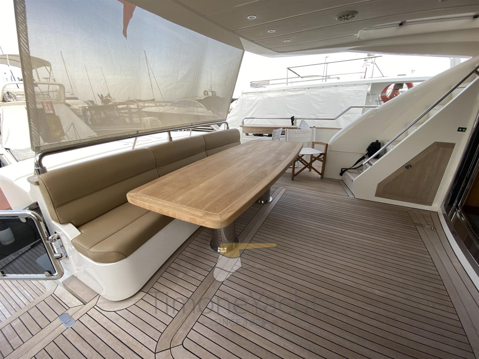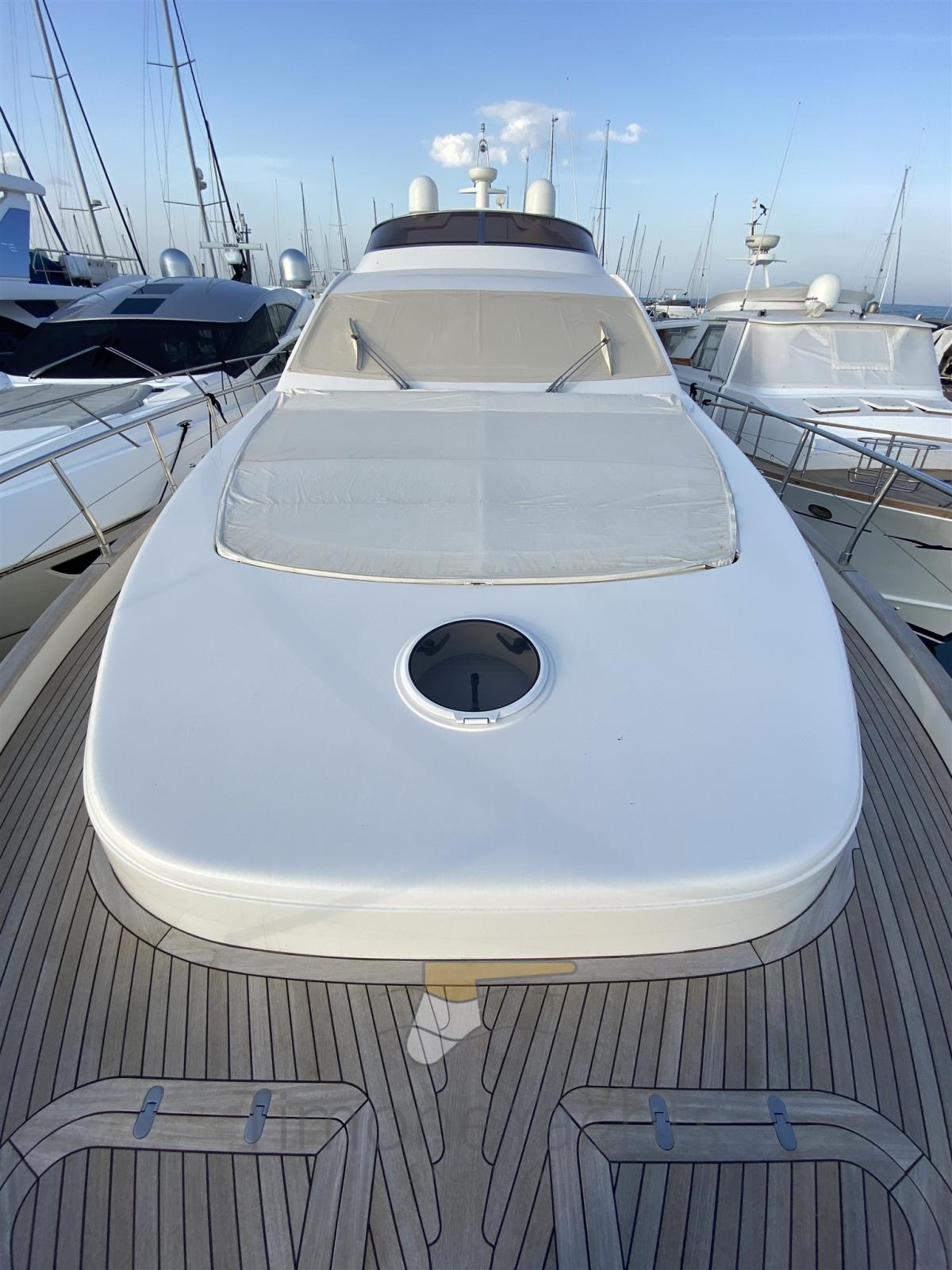 Camminamenti laterali in teak, Doccia esterna, Faro orientabile, Flap idraulici, Impianto antincendio, Indicatori Flaps, Lavaggio catena, Luci di cortesia, Luci subacquee, Passerella, Porta laterale, Pozzetto Teak, Presa 220V banchina, Presa acqua banchina, Tavolo pozzetto, 2 Winch tonneggio di poppa, Winch tonneggio di prua.