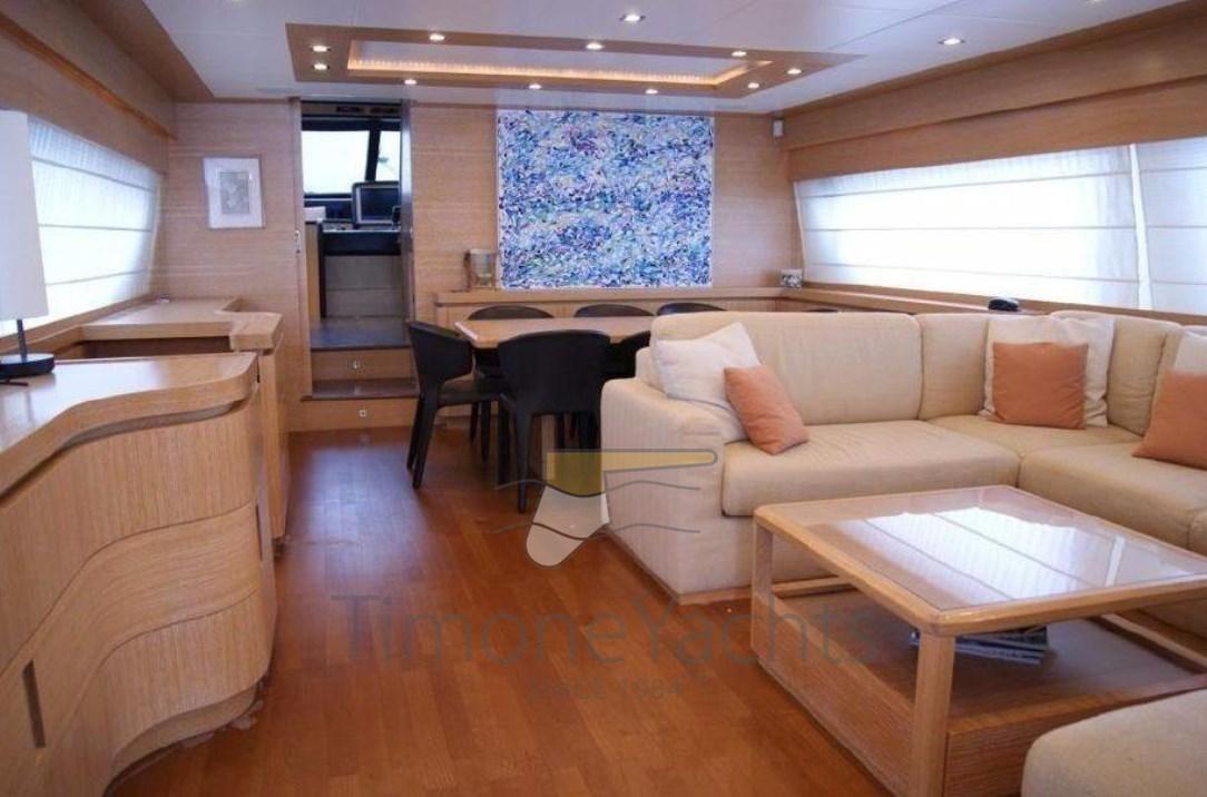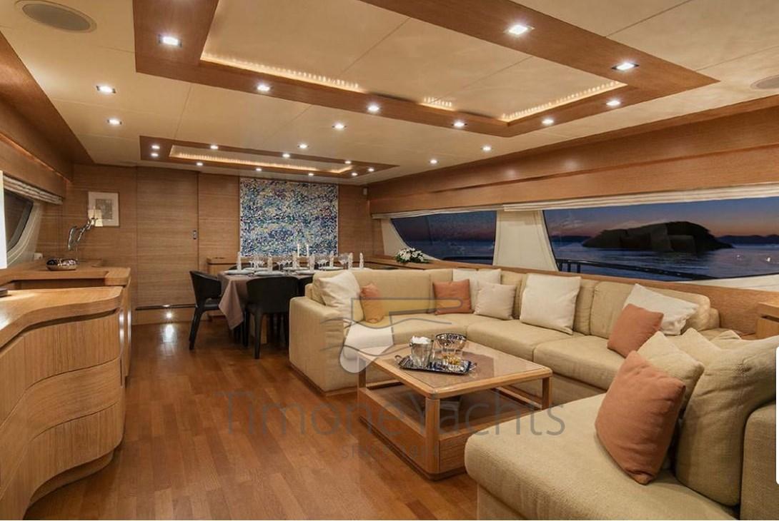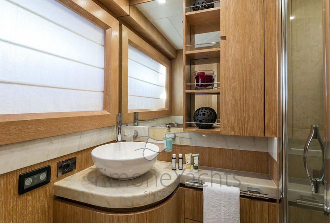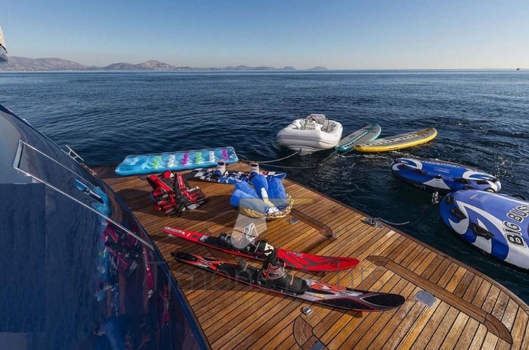Autoclave, Doccia esterna, Doppia timoneria, Flap idraulici, Gruette per tender su fly, Impianto antincendio, Passerella, Piattaforma, Pompa di sentina automatica, Pompa di sentina manuale, Raddrizzatore, Salpa Ancore Elettrico, Scaletta da bagno, Tender (4.3 m Zar 60 hp).