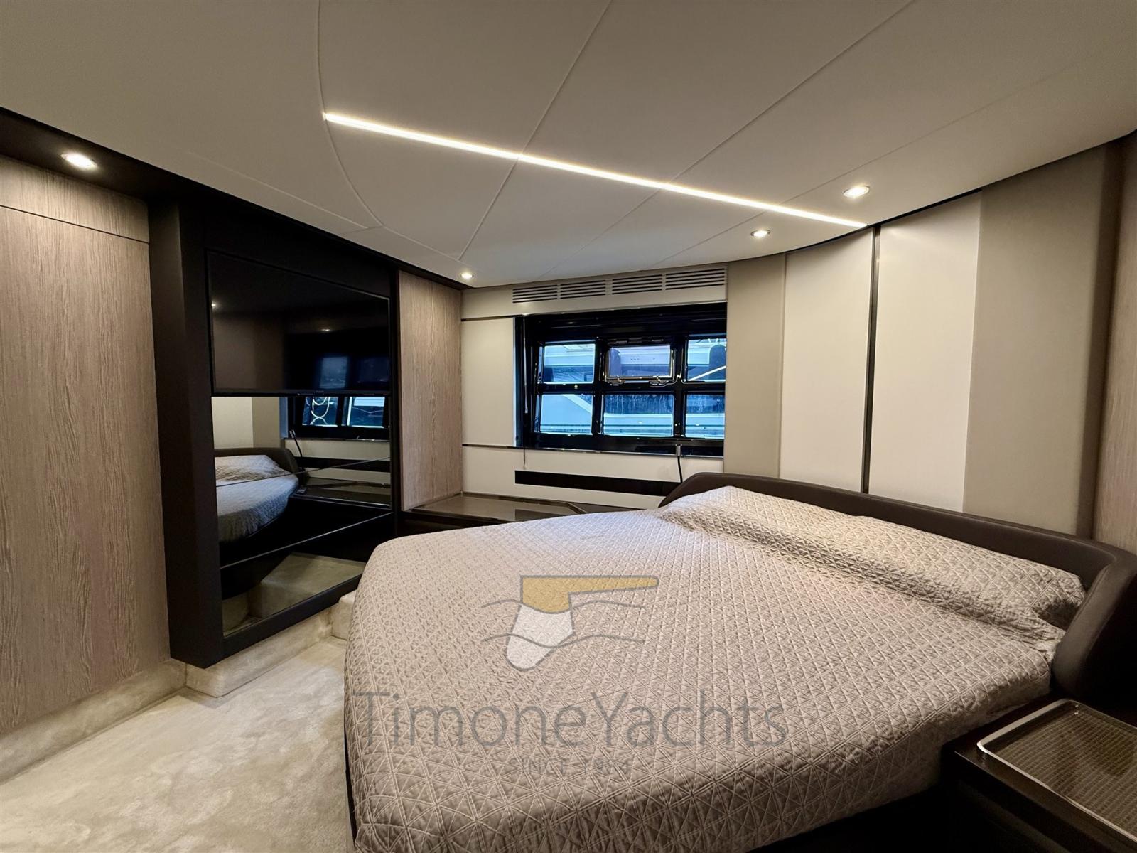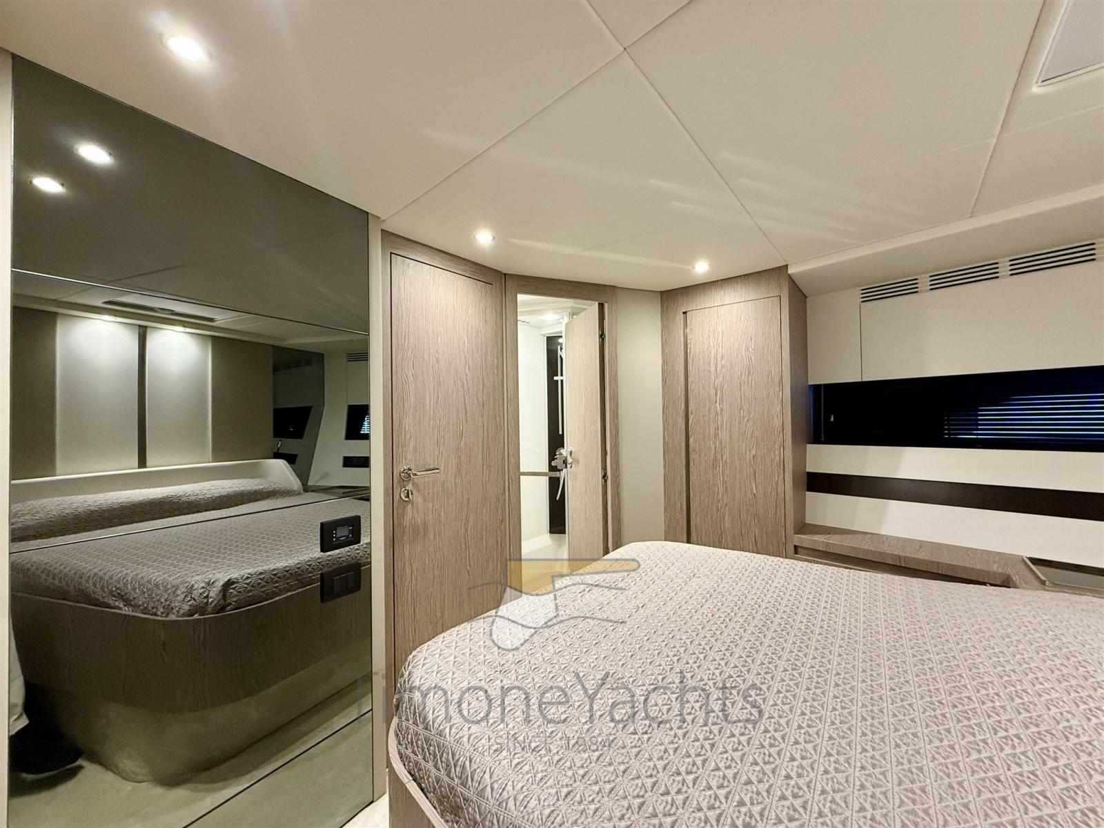 Allarme fumo/gas, Allarme motore, Allarme sentina, Auto Dynamic Trim Interceptor, Autoclave, Auto-Trim, Camminamenti laterali in teak, Doccia esterna, Faro orientabile, Flap elettrici, Garage per tender, Hard top, Indicatori Flaps, Lavaggio catena, Lavandino nel Pozzetto, Luci di cortesia, Luci subacquee, Passerella, Piattaforma, Porta ingresso, Pozzetto Teak, Presa 220V banchina, Stabilizzatori (Seakeeper 9), Tavolo pozzetto, Tavolo Salone Abbattibile, Tender (Pirellii 330 jet (year 2021) [43hrs on 14.01.26]), Tromba, Winch tonneggio di poppa, Winch tonneggio di prua.