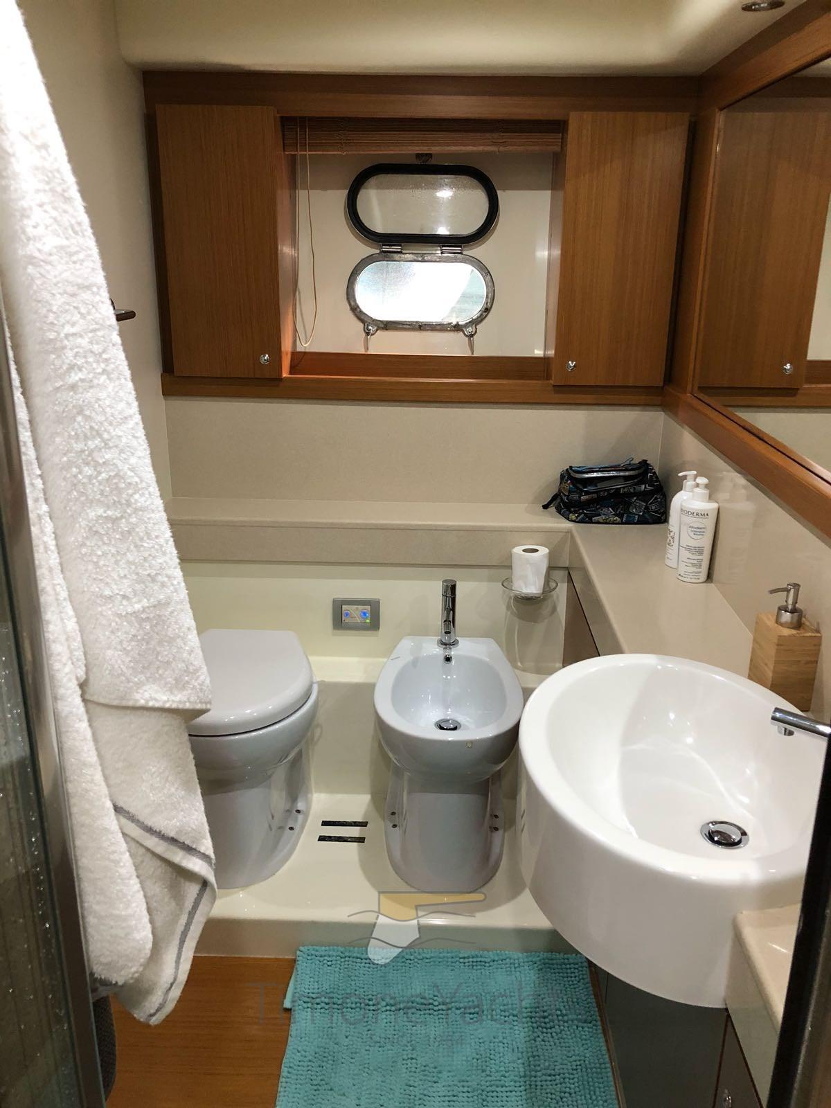 BBQ/ Grill (sul fly), Boiler, Cassaforte, Clima reversibile, Dissalatore, Impianto acque nere, Pavimento interno in legno, Prese interne 12v, Prese interne 220v, Serbatoio Acque Nere, 3 WC marino elettrico (+ crew).