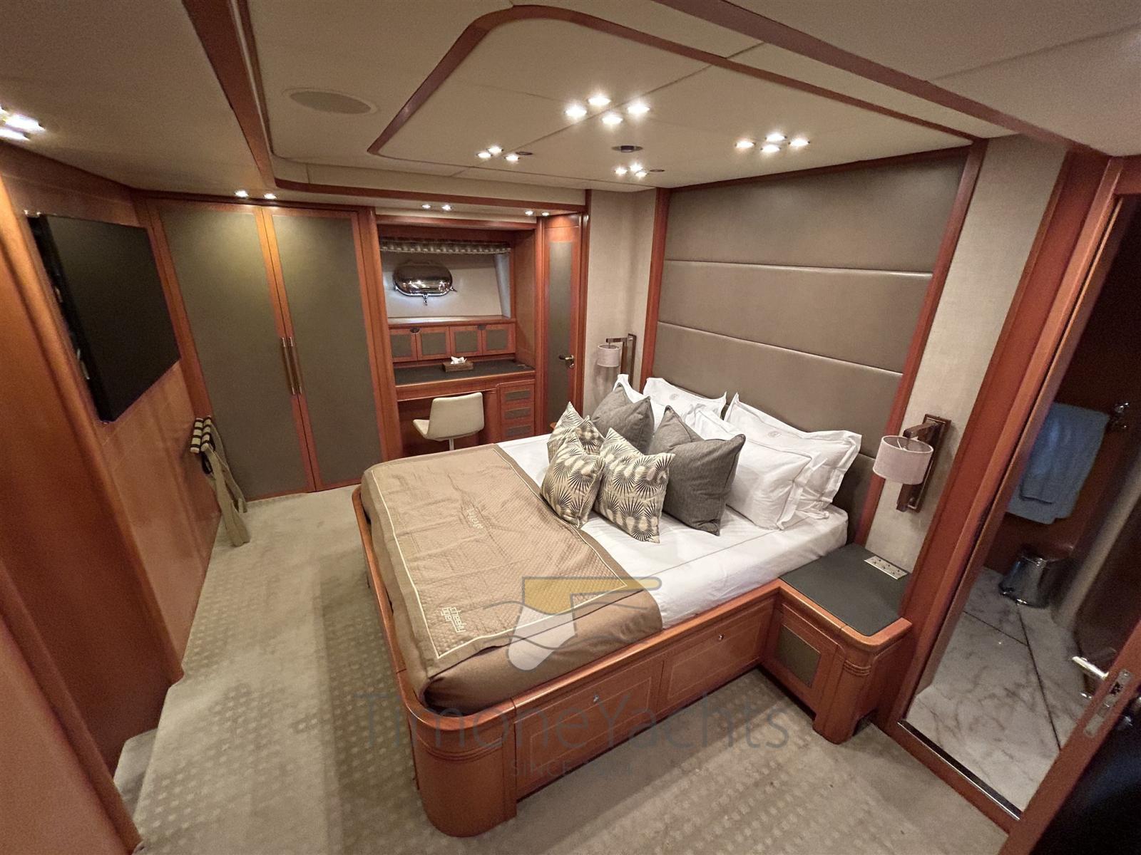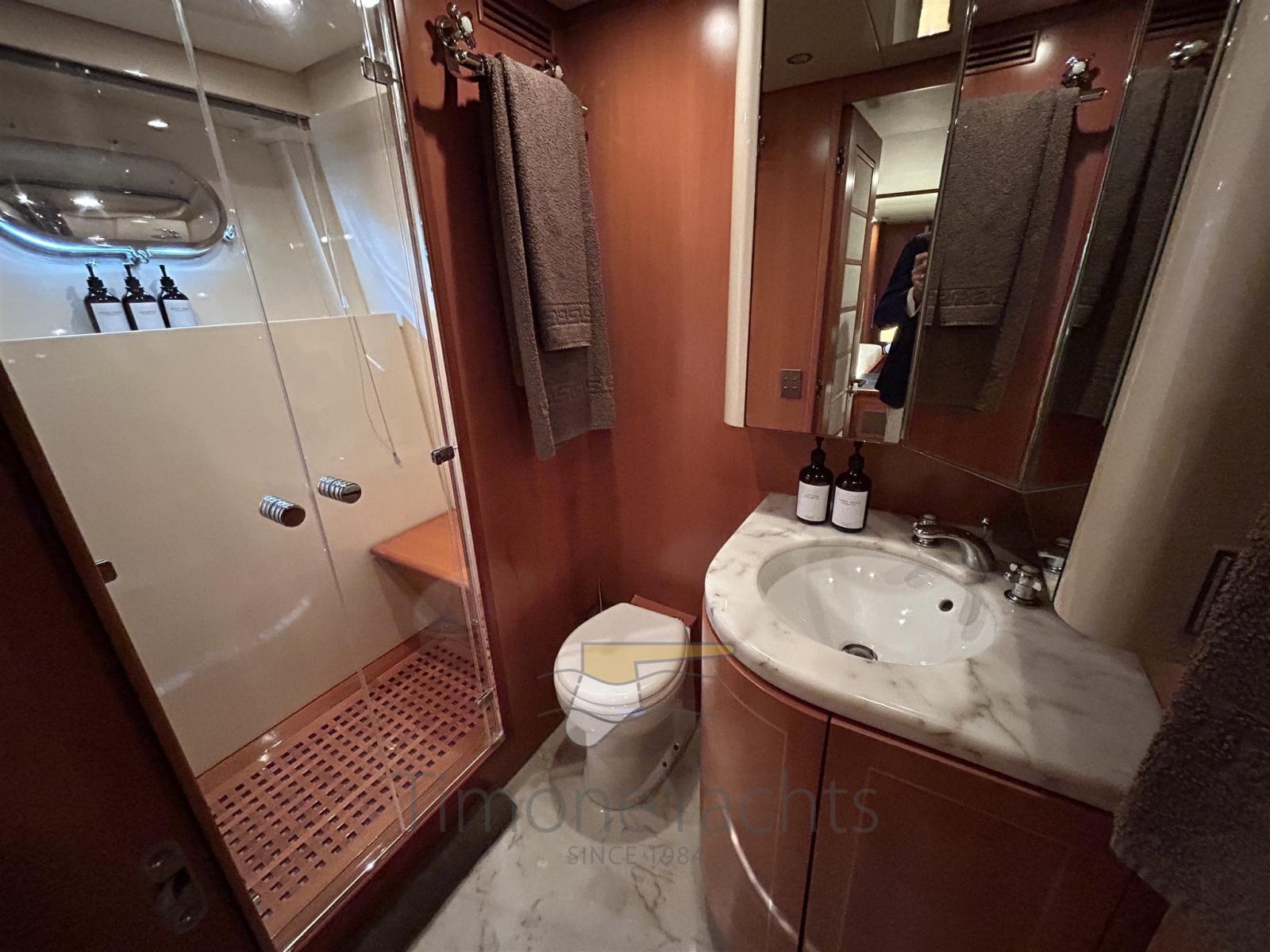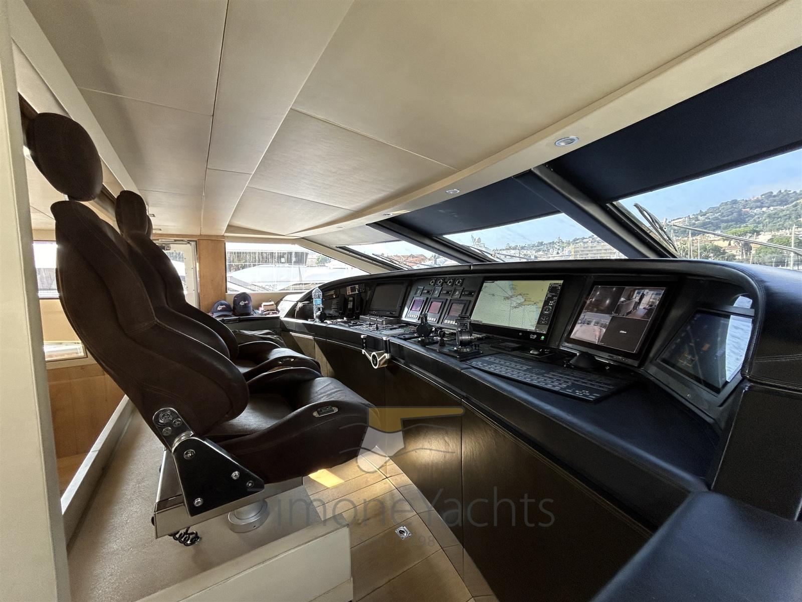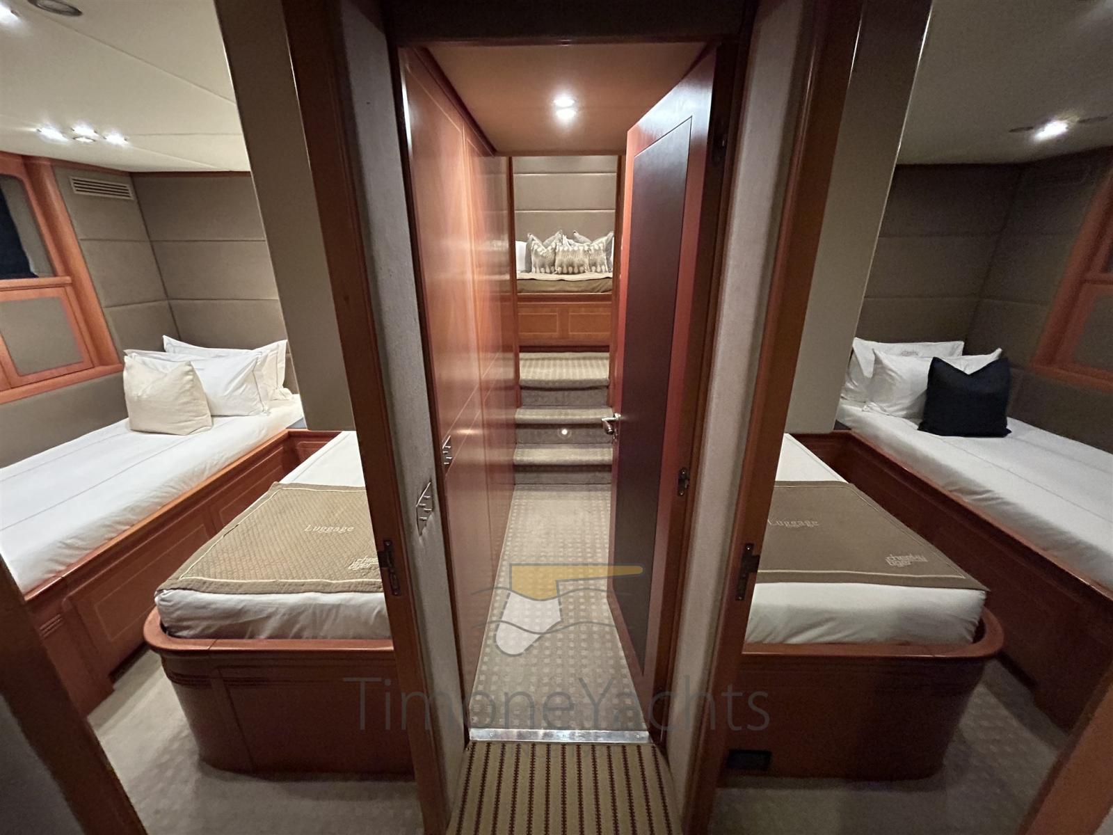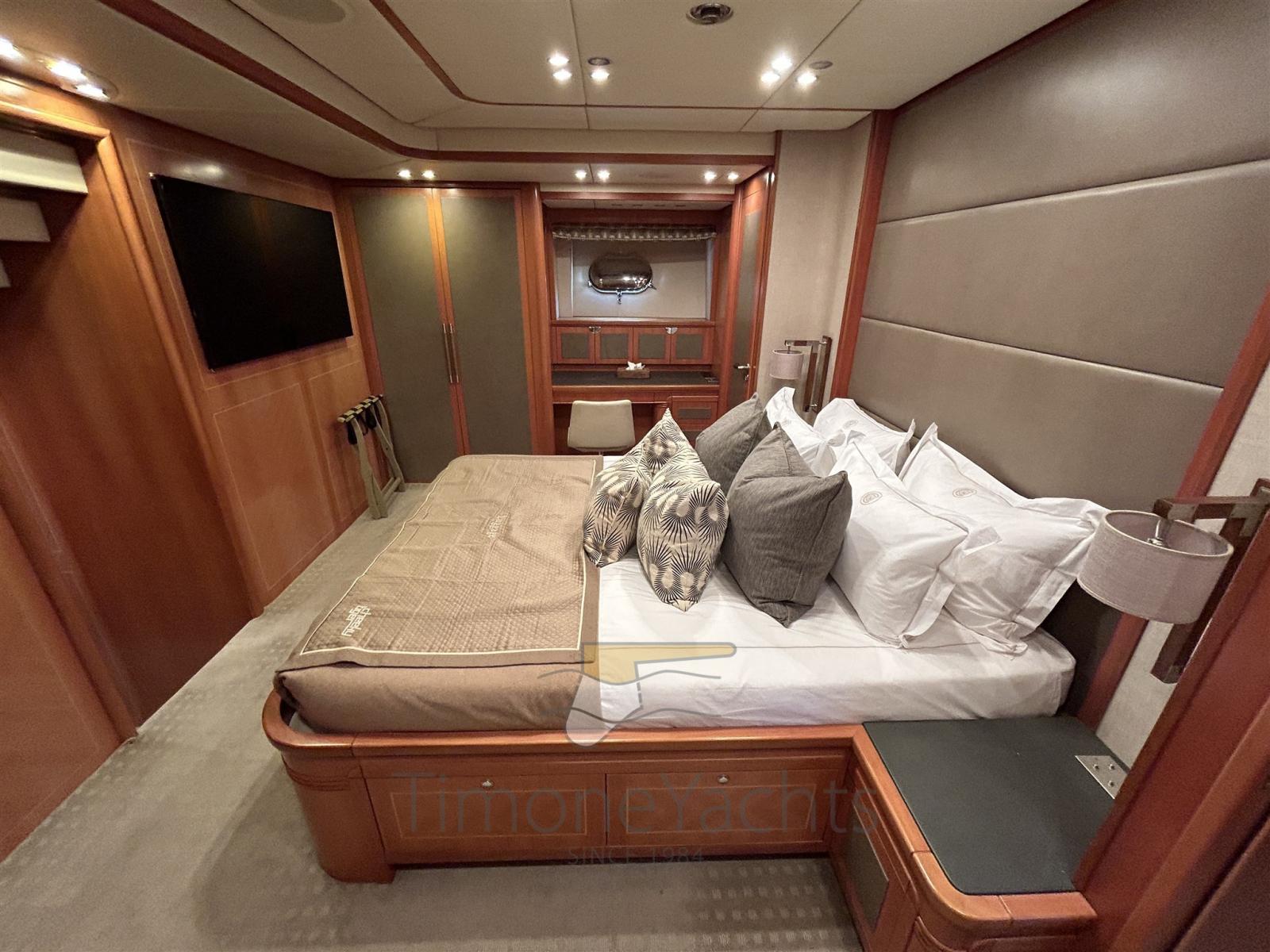 Auto-Trim, Camminamenti laterali in teak, Doccia esterna, Faro orientabile, Flap idraulici, Garage per tender, Hard top, Impianto antincendio, Indicatori Flaps, Luci di cortesia, Luci subacquee, Moto d'acqua, Passerella, Porta ingresso, Porta laterale, Pozzetto Teak, Presa 220V banchina, Scaletta da bagno, Tavolo pozzetto, Tromba, Winch tonneggio di poppa.