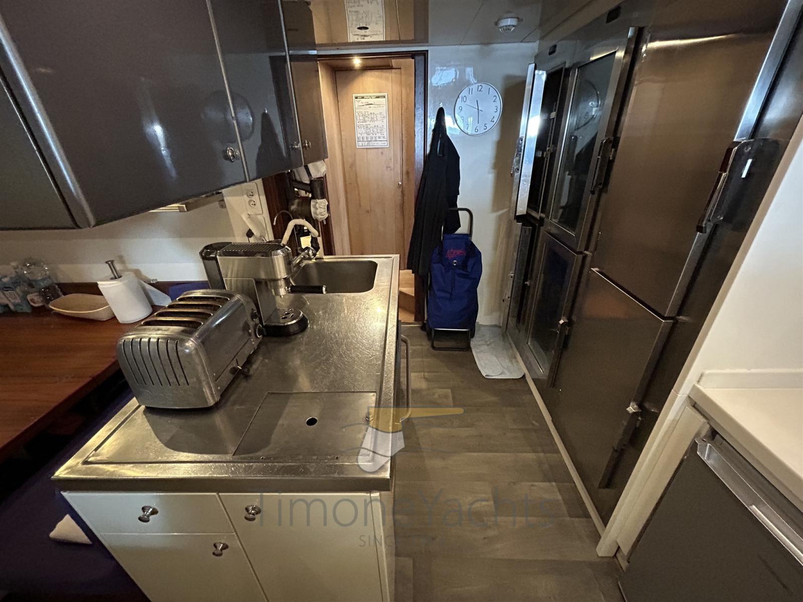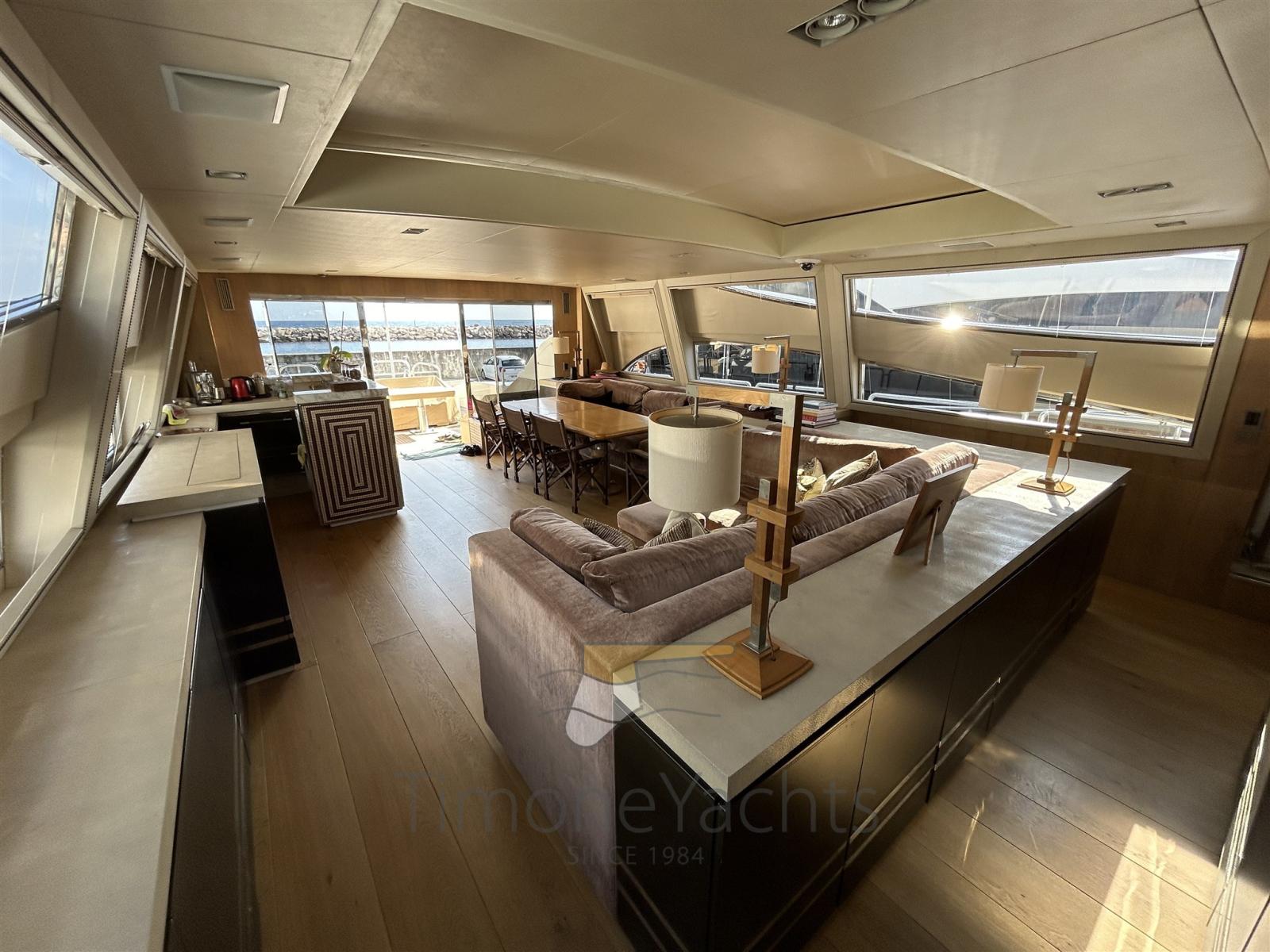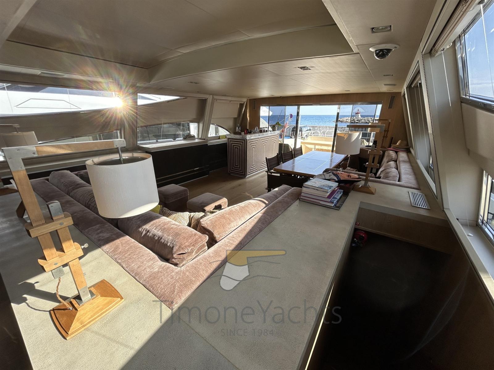 Boiler, Collegamento internet, Dimmer per Luci, Dissalatore, Impianto acque nere, Pavimento interno in legno, Prese interne 12v, Prese interne 220v, Pressarifiuti, Serbatoio Acque Nere, 5 WC marino elettrico (+ crew).