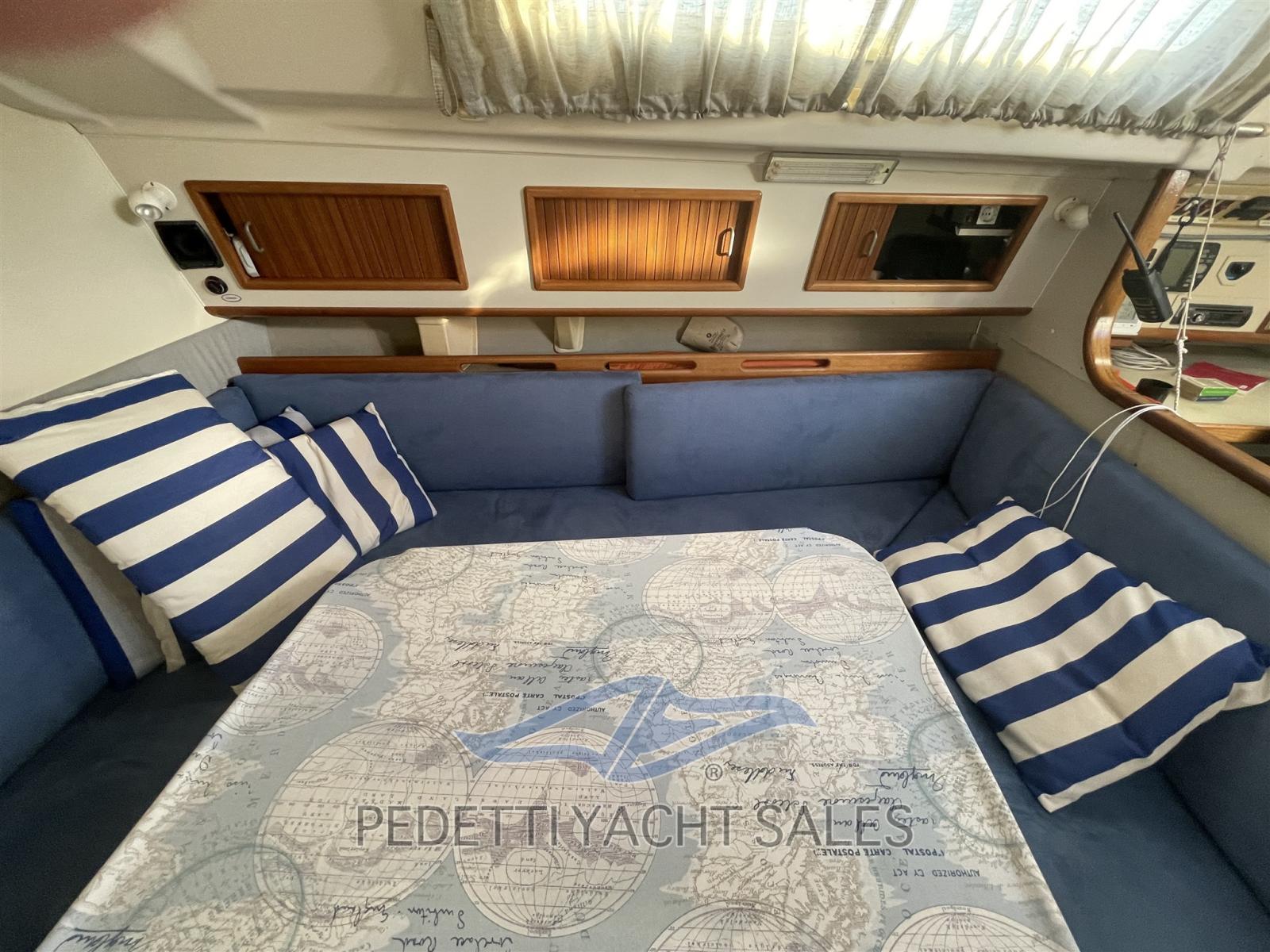 imbarcazione con central winch service e fiocco autovirante per facilitarne l'utilizzo anche in solitario, tagliando motore annuale, cucina con forno e wc elettrico sostituiti nuovi, foderine dinette e coprifoderine nuove, sartiame del 2010, randa e fiocco del 2018, ecoscandaglio multifunzione del 2023