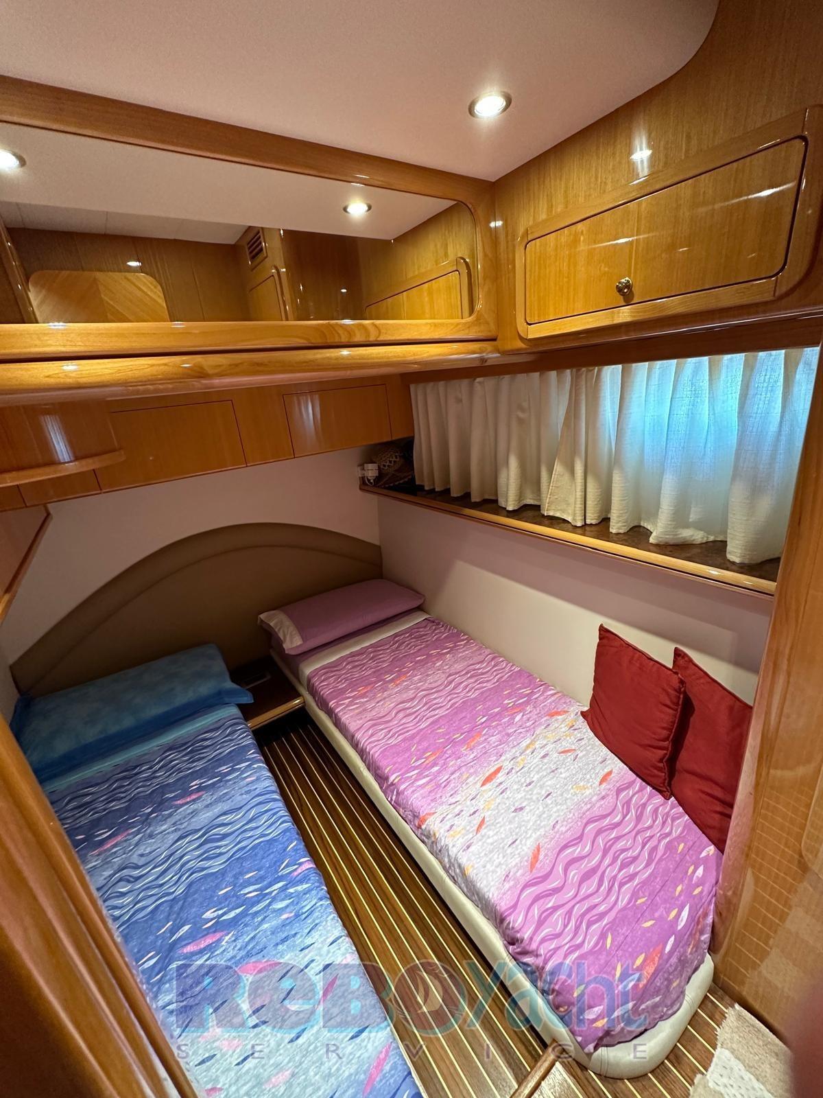 Sala macchine verniciata e rifatto insonorizzazione, sbarco motori con revisione scambiatori, rifatto invertitori e V.drive 2023 .. sostituito gruppo aria condizionata con 1 nuovo .. batterie motori e servizi 2025 . Doppia pompa per acqua potabile… Doppio caricabatterie… Messo valvole in caso di allagamento sentina che scaricano con i motori… Messo marmitta Generatore e scarico Generatore sott’acqua per eliminare rumore esterno… Rifatto tutte le guarnizioni dei vetri 2023, sempre tenuta lucidata… Messo frigo cantinetta all’entrata… Messo Frigo nel fly con struttura e e griglia sopra… Rifatto cuscini 2024 .. fatto tagliandi motori, sempre ufficiali Caterpillar