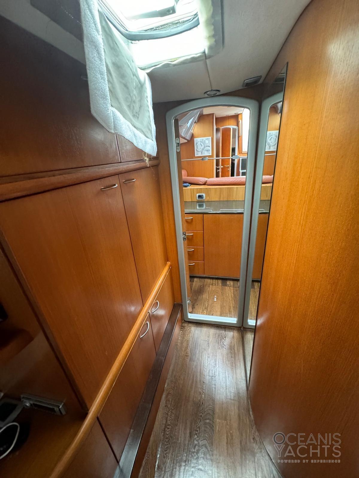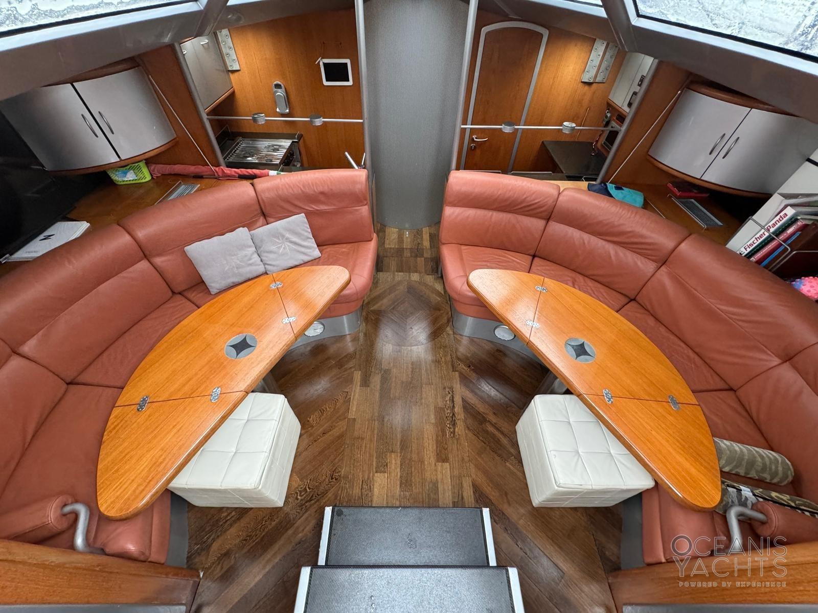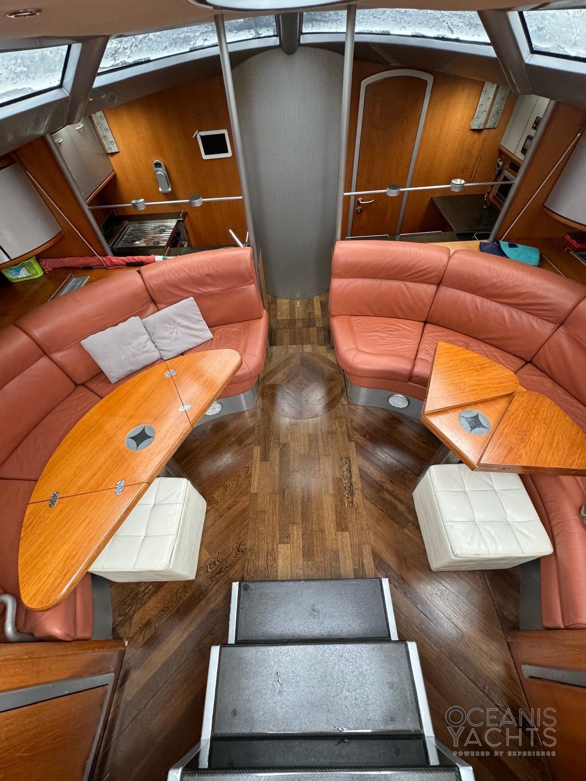 INTERNI CON 3 CABINE DOPPIE ( DUE MATRIMONIALI E UNA LETTI SEPARATI) E DUE BAGNI ( UNO CON DOCCIA SEPARATA) . CUCINA SEPARATA. CALA VELE TRASFORMABILE IN CABINA MARINAIO .