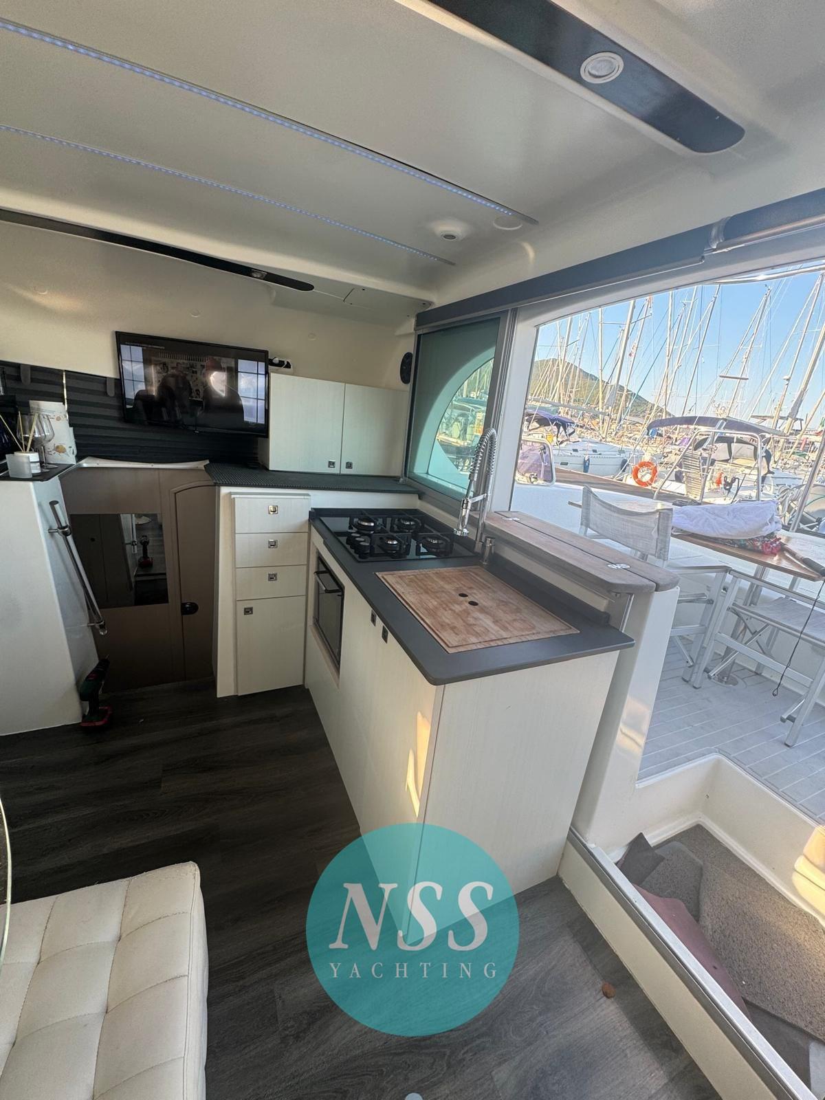 Ancora (catena 50 mt), Autoclave, Batterie (tutte 2025), Caricabatterie (2022), Doccia esterna, Luci di cortesia, Motore ausiliario (fuoribordo tender , Yanama 15 hp), Parabordi, Passerella (pieghevole), Pompa di sentina automatica, Pozzetto Teak (flexiteak), Presa 220V banchina, Salpa Ancore Elettrico, Scaletta da bagno, Tavolo pozzetto, Tender (quicksilver), Windex.