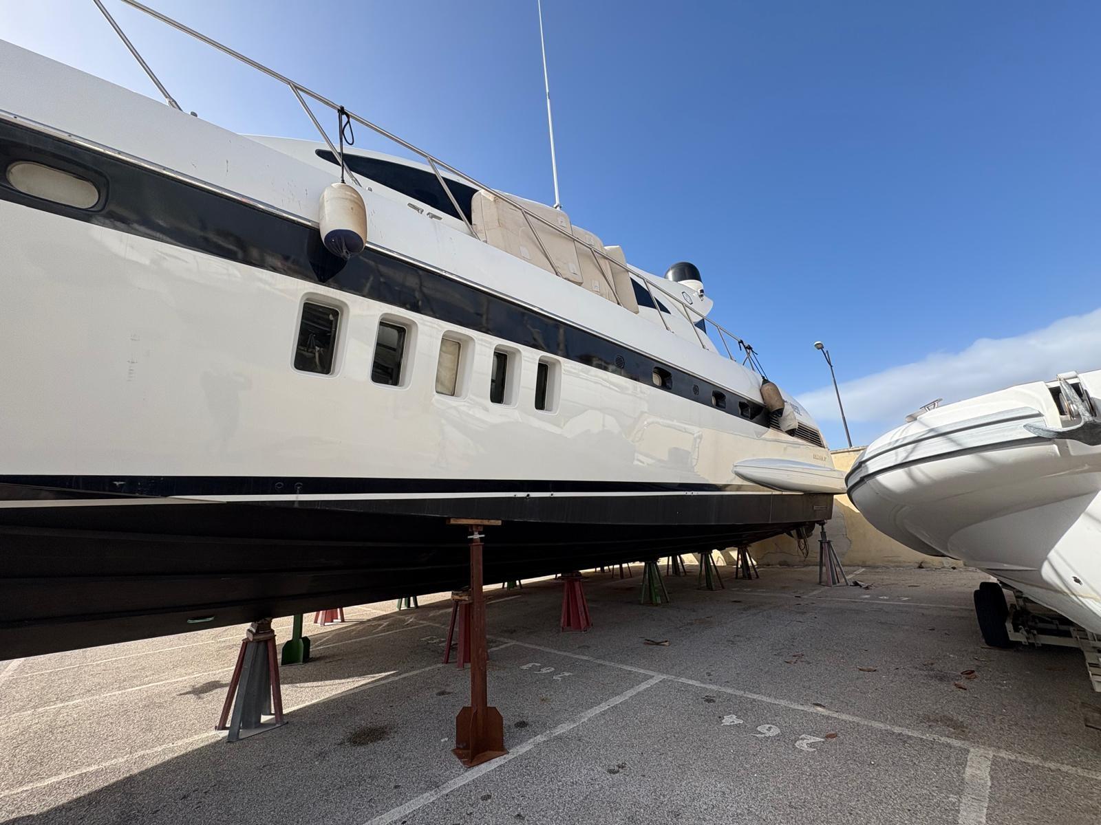 Allarme motore, Allarme sentina, Alternatore, Autoclave (agosto 2024), Batterie (Litio agosto 2024), Doccia esterna, Faro orientabile, Flap idraulici, Garage per tender, Gruette per tender, Hard top, Impianto antincendio, Indicatori Flaps, Lavaggio catena, Lavandino nel Pozzetto, Luci di cortesia, Luci subacquee, Passerella, Piattaforma, Pompa di sentina automatica, Pompa di sentina manuale, Porta ingresso, Pozzetto Teak, Presa 220V banchina, Presa acqua banchina, Raddrizzatore, Salpa Ancore Elettrico, Scaletta da bagno, Tavolo pozzetto, Tromba, Winch tonneggio di poppa, Winch tonneggio di prua.