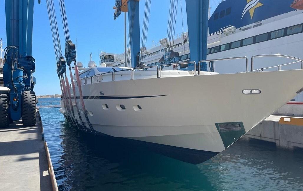 Allarme fumo/gas, Allarme motore, Allarme sentina, Autoclave, Auto-Trim, Camminamenti laterali in teak, Doccia esterna, Faro orientabile, Flap idraulici, Garage per tender, Gruette per moto d'acqua, Gruette per tender, Hard top, Impianto antincendio, Indicatori Flaps, Lavandino nel Pozzetto, Luci di cortesia, Moto d'acqua (Seadoo 155 Hp), Passerella (idraulica), Piattaforma, Pompa di sentina automatica, Ponte in teak, Porta ingresso, 2 Porta laterale, Pozzetto Teak, Presa 220V banchina, Presa acqua banchina, Salpa Ancore Elettrico, Scaletta da bagno, Tavolo pozzetto, Tavolo Salone Abbattibile, Tender, Tromba, 2 Winch tonneggio di poppa.