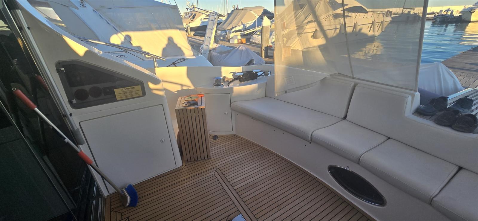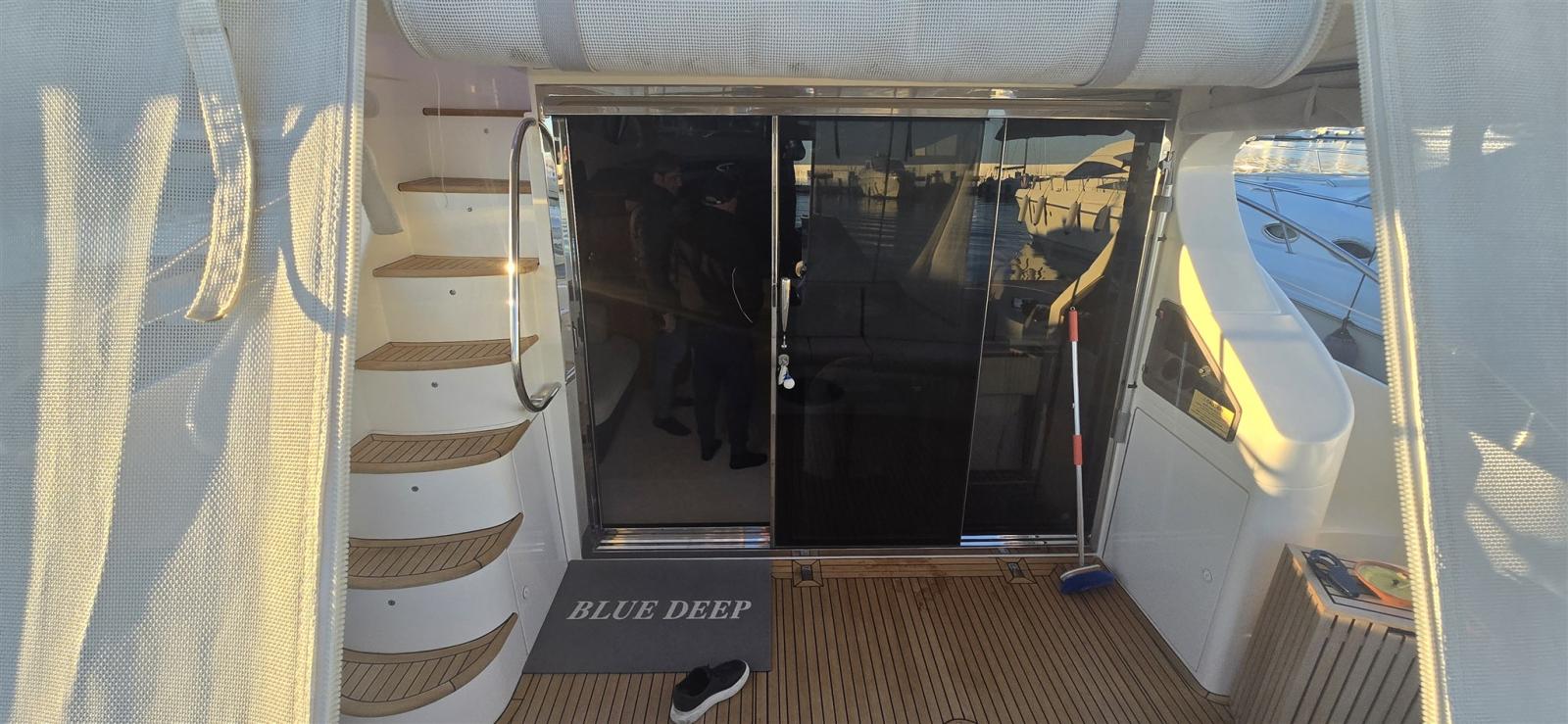 Allarme motore, Allarme sentina, Autoclave, Doccia esterna, Doppia timoneria, Flap idraulici (N°2), Impianto antincendio, Indicatori Flaps, Passerella, Piattaforma, Pompa di sentina automatica, Pozzetto Teak, Presa 220V banchina, Presa acqua banchina, Raddrizzatore, Rollbar, Salpa Ancore Elettrico, Scaletta da bagno, Selle per Tender, Tender, Tromba, Winch tonneggio di poppa.