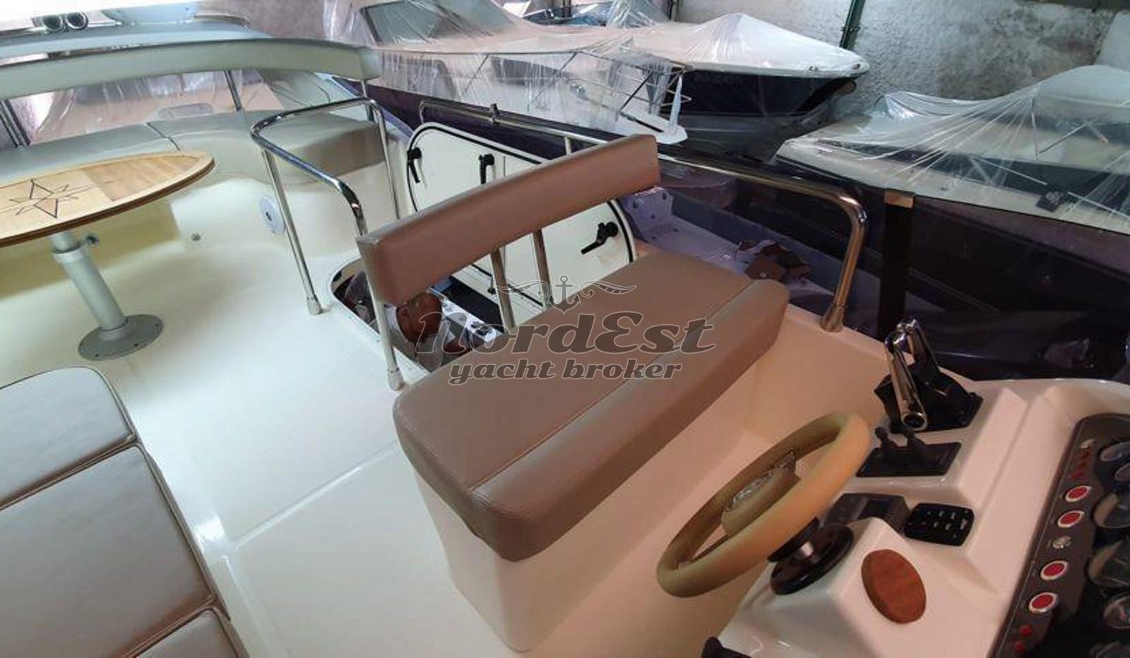 Plancia comando in carbonio con tasti aggiornati a pressione, passerella in acciaio Besenzoni.