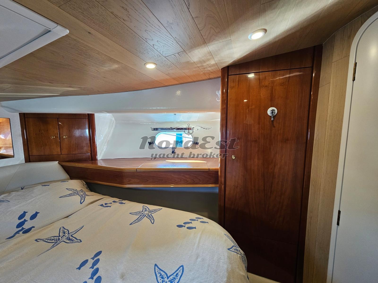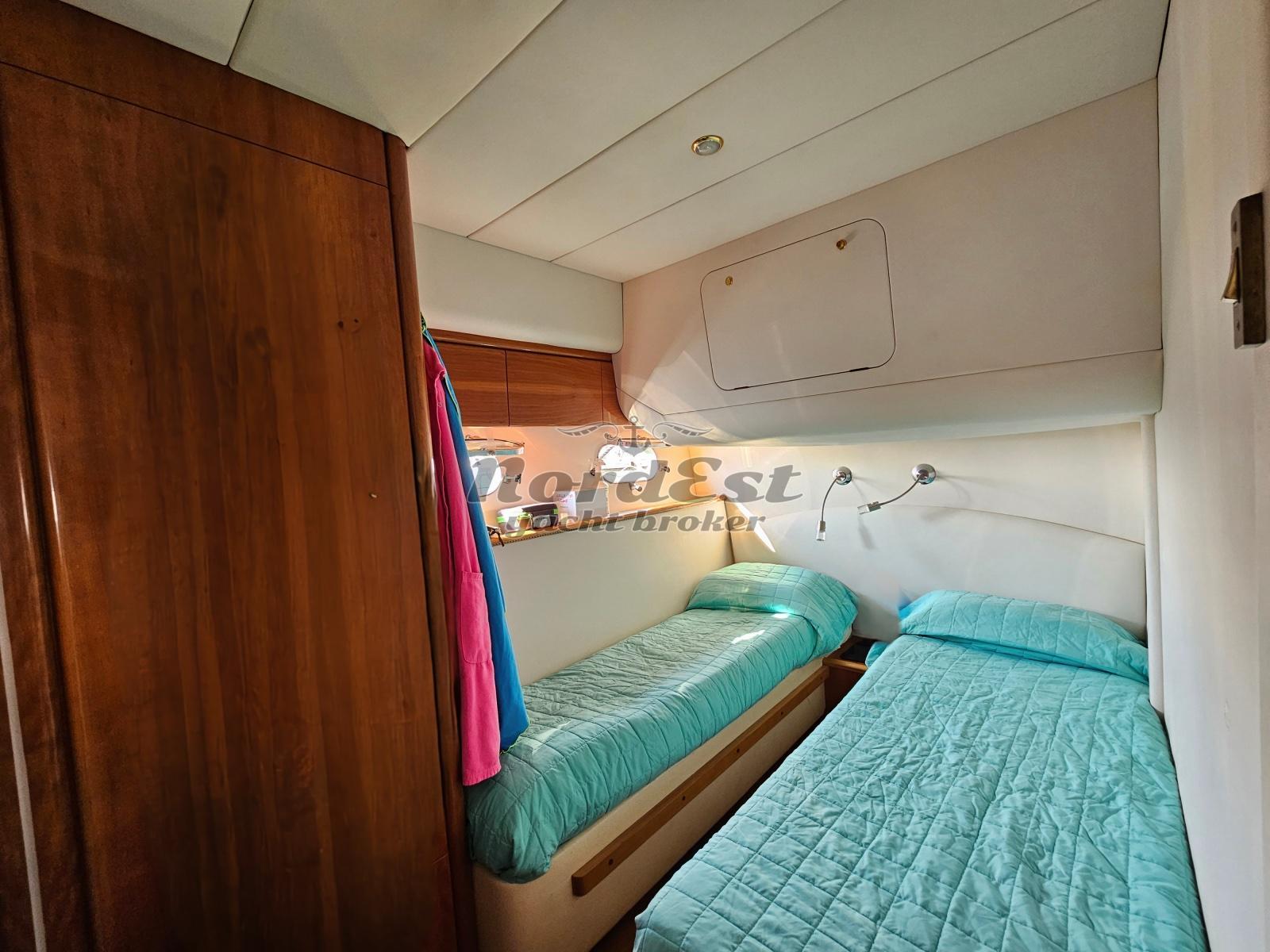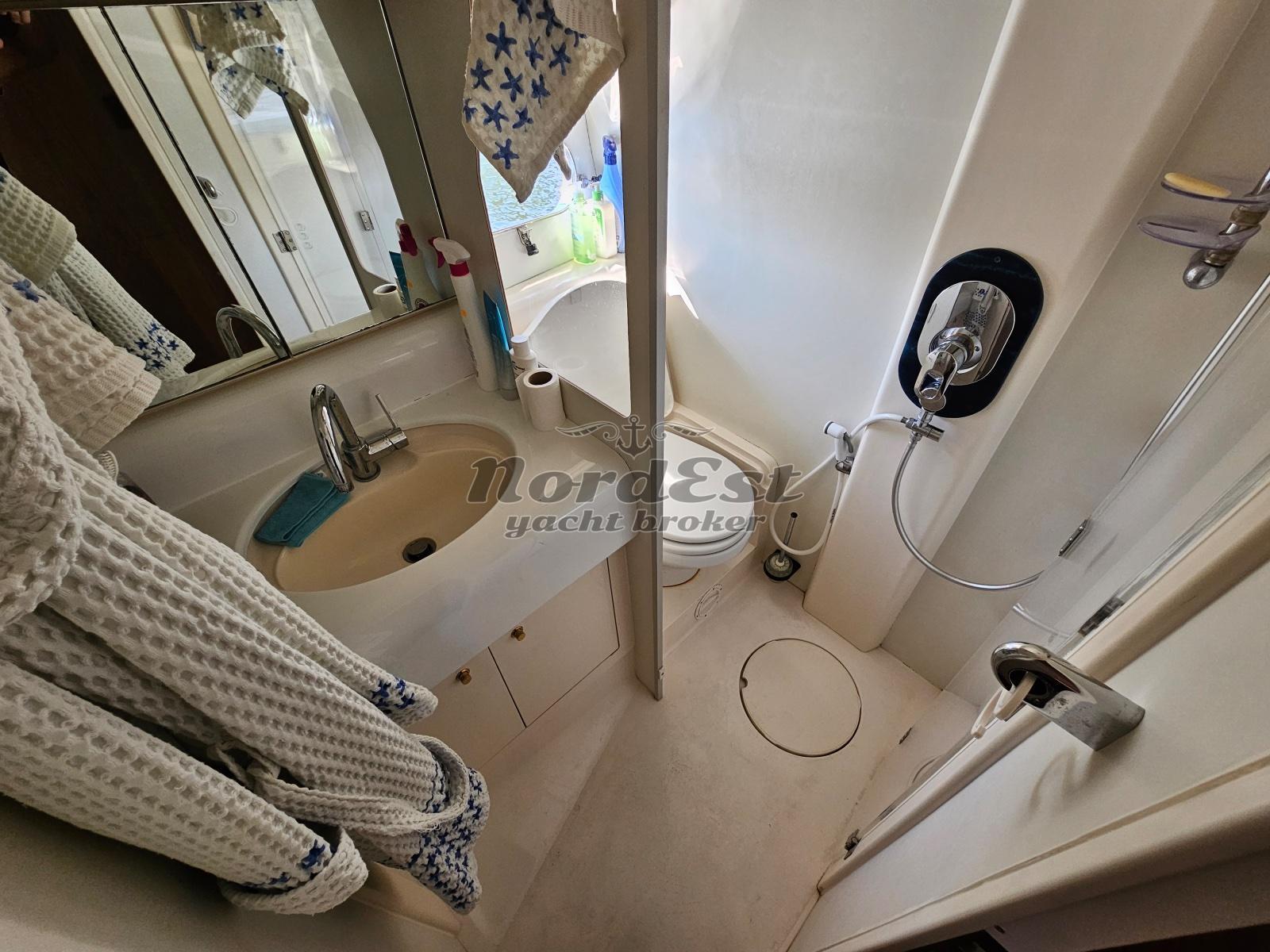 Imbarcazione molto accessoriata, perfetta per navigazione d'altura e per vita in porto, completa di lava asciuga, lavastoviglie, aria condizionata calda e fredda, piano ad induzione, microonde e frigorifero a colonna. Motori sempre ben gestiti, con pochissime ore di moto, in quanto è sempre stata utilizzata come appartamento in mare.