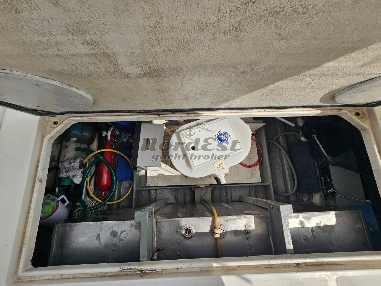 Tensione di bordo: 12 / 220 V - Caricabatterie - Autoclave - Boiler - Impianto antincendio - Elica di prua - Doccia esterna - Flaps - Passerella: manuale - Plancetta - Frigorifero - Piano cottura: gas - Bimini top: si in acciao - Cuscineria prendisole - Coprifinestrature esterne - Norvegese