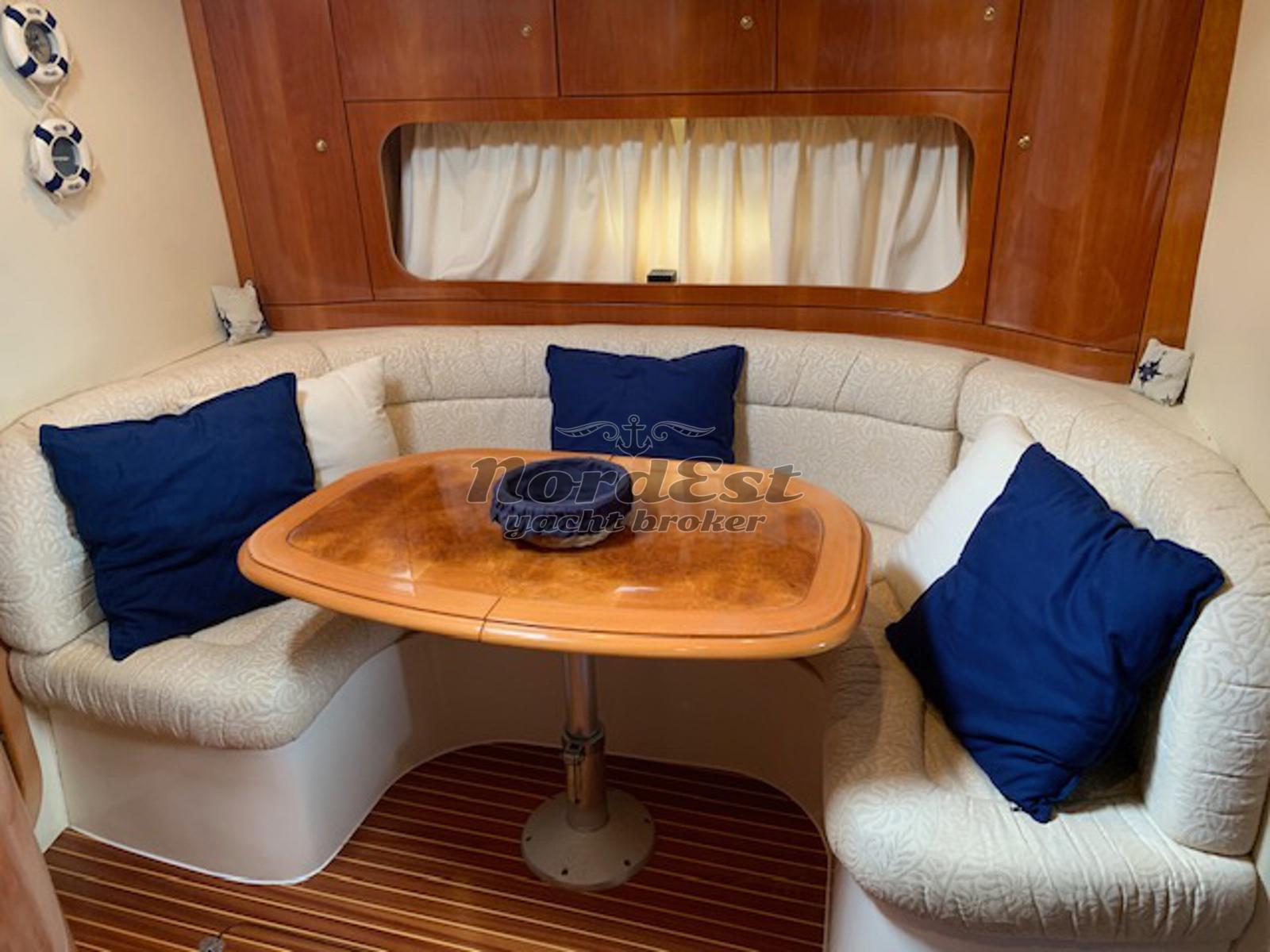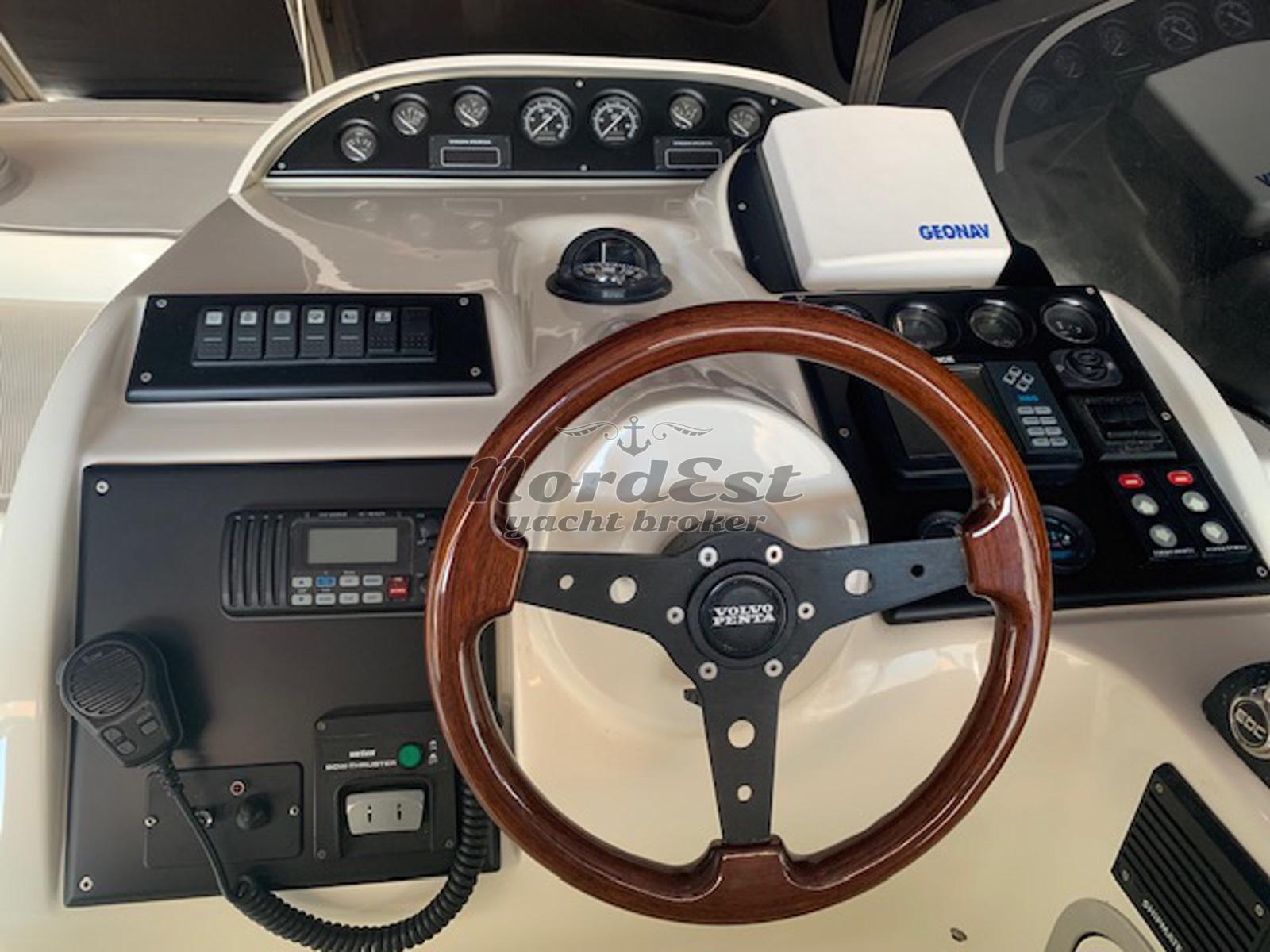 I motori, con sole 500 ore di utilizzo, sono stati sempre tagliandati da un’officina autorizzata Volvo Penta e recentemente i piedi sono stati completamente rifatti, inclusa la sostituzione di campane e pistoni trim. Questa imbarcazione è stata mantenuta in condizioni eccellenti, con cuscinerie perfette e doppi prendisole a prua, sia originali che rifatti. Sono incluse tre tipologie di copertura: cagnaro, cappottina con finestre e cappottina integrale. La barca è sempre stata rimessata da ottobre a maggio in un capannone, garantendo una protezione ottimale durante i mesi invernali.