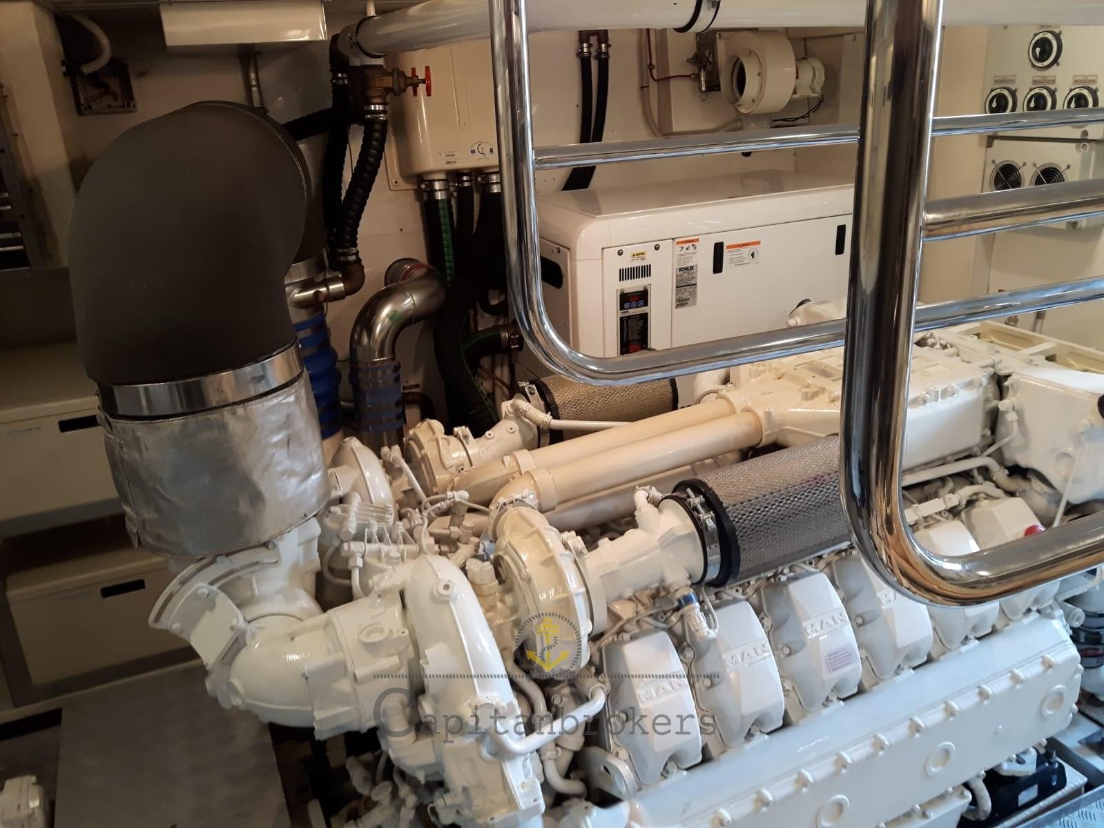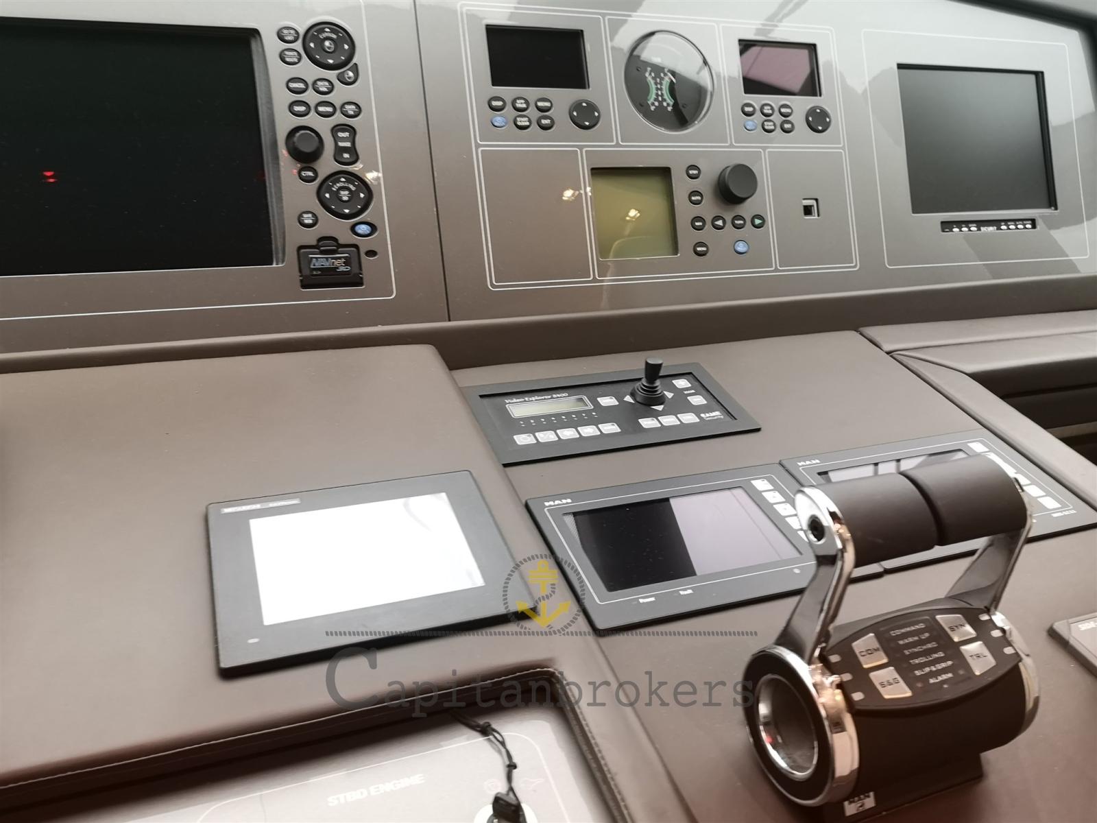 Allarme motore, Allarme sentina, Autoclave, Doccia esterna, Doppia timoneria, Faro orientabile, Flap elettrici, Gruette, Gruette per tender su fly, Impianto antincendio, Passerella, Piattaforma, Pompa di sentina automatica, Porta laterale, Pozzetto Teak, Presa 220V banchina, Presa acqua banchina, Salpa Ancore Elettrico, Scaletta da bagno, Stabilizzatori (Pinne stabilizzatrici), Tavolo pozzetto, Tender, Winch tonneggio di poppa, Winch tonneggio di prua.