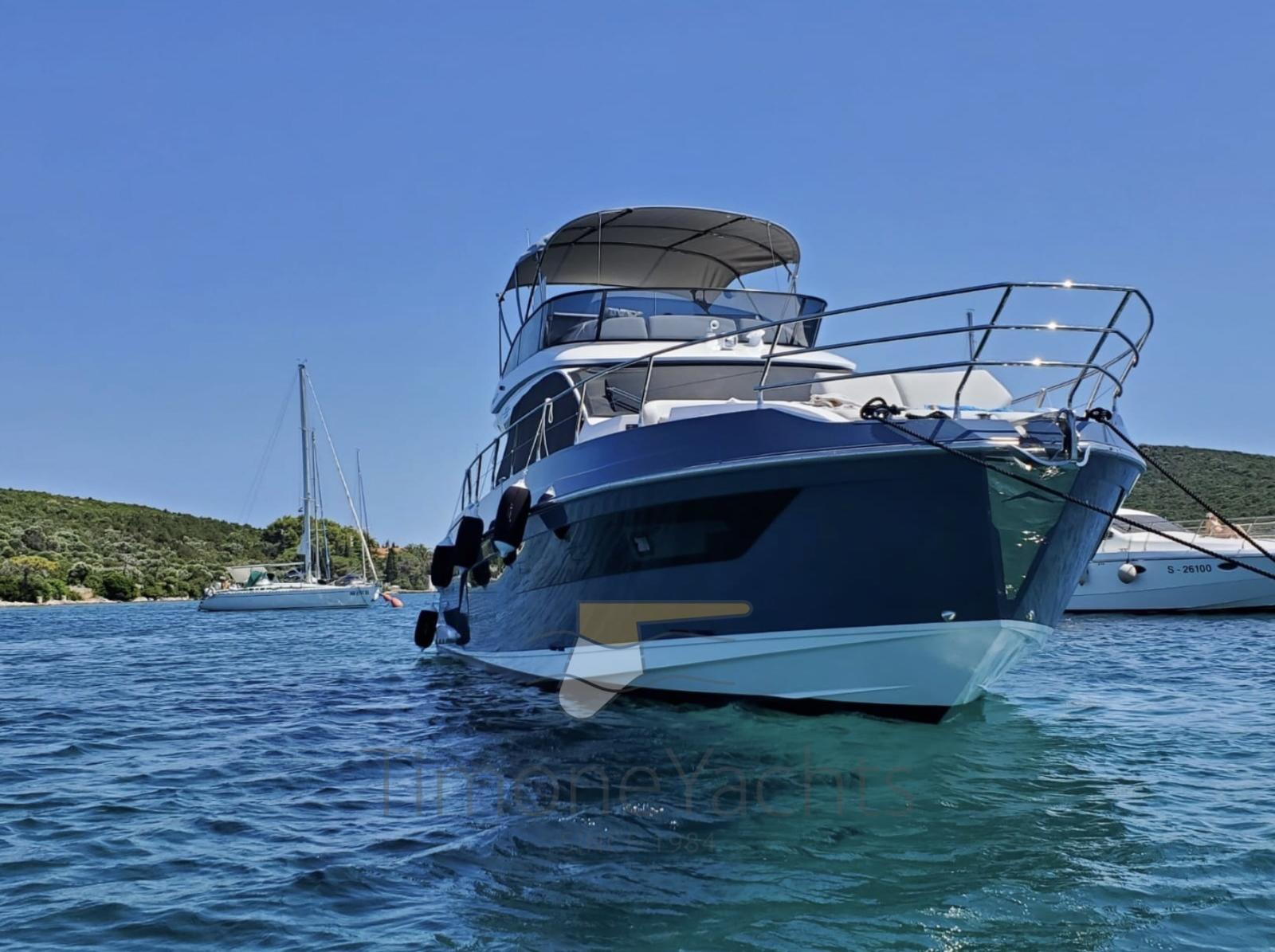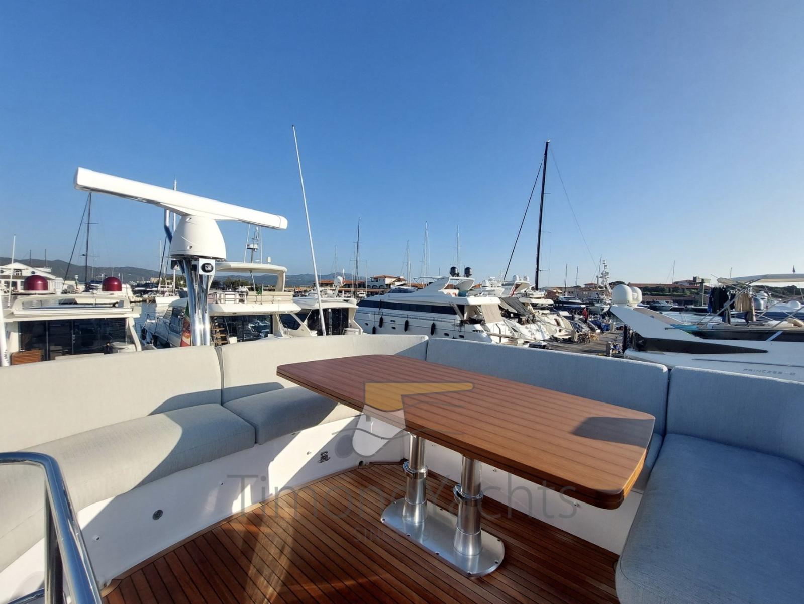 Allarme fumo/gas, Allarme motore, 4 Allarme sentina, Alternatore, 2 Autoclave, Auto-Trim, Camminamenti laterali in teak, Cavo corrente di banchina, Colorazione speciale (Deep Blue), Corrimano, Doccia esterna, Doppia timoneria, Fari fissi a poppa, Flap elettrici, Indicatori Flaps, Lavaggio catena, Luci di cortesia, Luci subacquee, Motore fuoribordo per tender, Parabordi, Passerella, Piattaforma, Pompa di sentina automatica, Pompa di sentina manuale, Ponte in teak, Porta ingresso, Pozzetto Teak, Presa 220V banchina, Presa acqua banchina, Salpa Ancore Elettrico, Scaletta da bagno, Selle per Tender, Tavolo pozzetto, Tavolo Salone Abbattibile, Tender (Submarine + Yamaha 20hp), Tientibene con cancelletti, Tromba, Winch tonneggio di poppa, Winch tonneggio di prua.